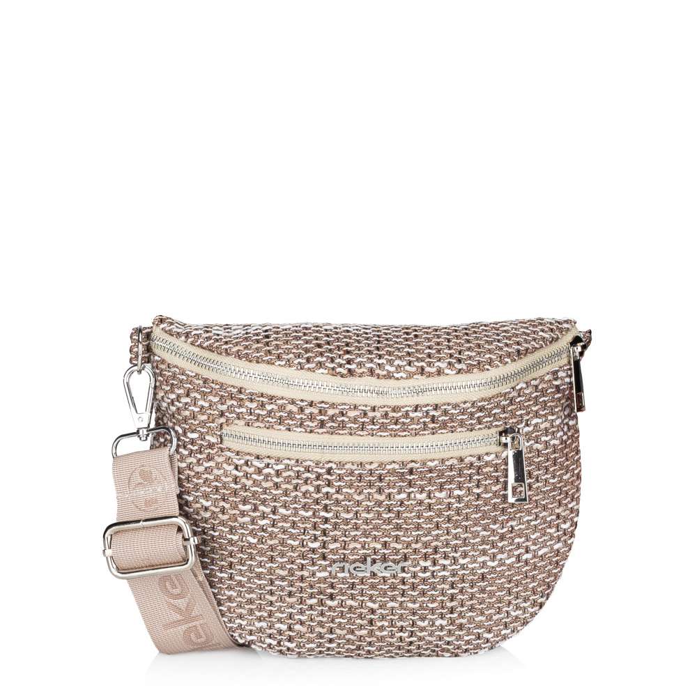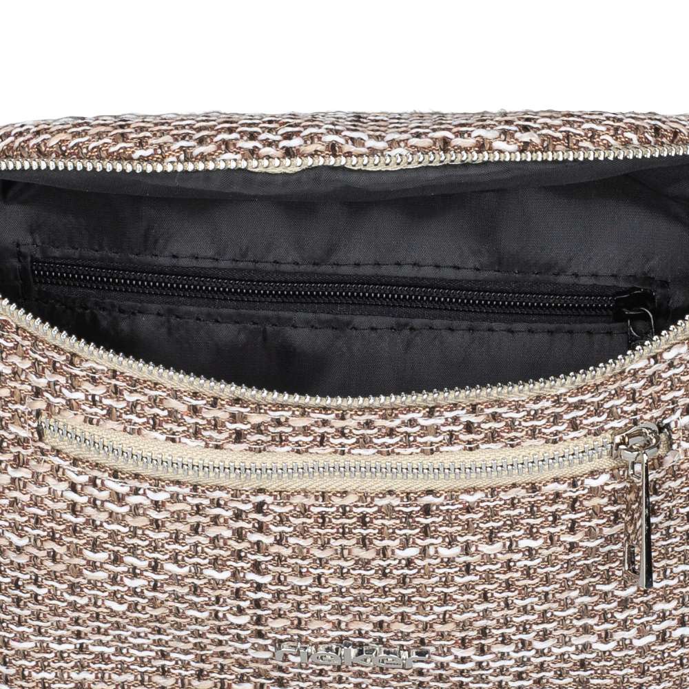 Objevte výjimečnou kabelku RIEKER, která zaujme na první pohled svým originálním textilním svrškem se strukturou v jemné kombinaci barev, zatímco stříbrné logo značky působí jako sofistikovaný akcent originality. Praktické uspořádání je další silnou stránkou tohoto modelu. Přední kapsička se zipem je ideální pro uložení drobností, ke kterým potřebujete mít rychlý přístup. Hlavní prostor ledvinky je bezpečně uzavírán zipem a uvnitř se nachází menší kapsička se zipem, která umožní uložení drobností. Další výhodou je nastavitelný popruh, který lze snadno přizpůsobit podle vašich preferencí. Umožňuje nošení ledvinky přes rameno nebo přes tělo, čímž nabízí variabilitu dle situace i vašeho stylu. Tato ledvinka je výborným společníkem pro dny, kdy potřebujete volné ruce a perfektní organizaci, ale nechcete se vzdát módního stylu. RIEKER spojuje moderní vzhled s praktickými řešeními, abyste mohli kráčet sebevědomě a stylově kamkoli se vyberete.