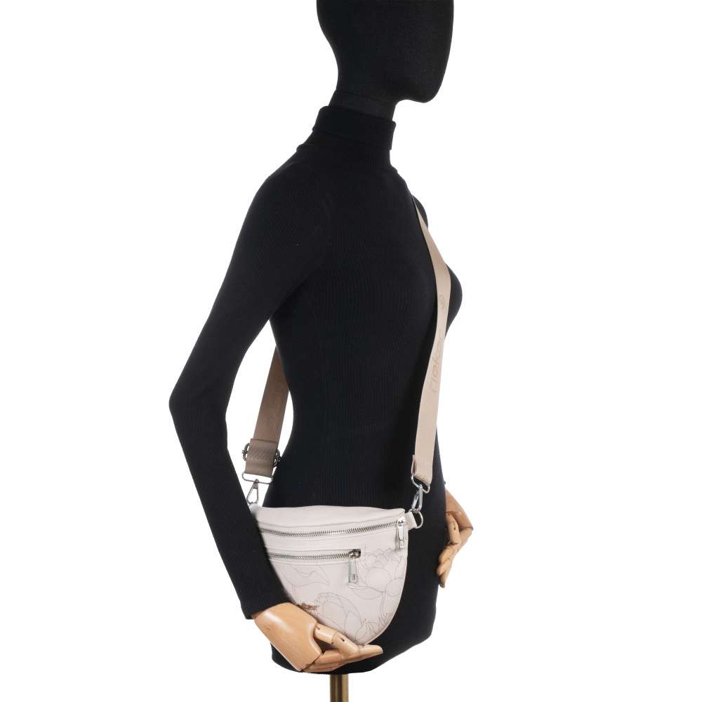 Tato ledvinka RIEKER je ideální volbou pro ženy, které chtějí mít vše potřebné po ruce a zároveň si zachovat stylový vzhled. Béžový svršek zdobí unikátní vzor květin, který jí dodává osobitý charakter a stříbrné logo značky působí jako elegantní šperk, který dodává kabelce punc originality. Praktické uspořádání je další silnou stránkou tohoto modelu. Přední kapsička se zipem je ideální pro uložení drobností, ke kterým potřebujete mít rychlý přístup. Hlavní prostor ledvinky je bezpečně uzavírán zipem a uvnitř se nachází menší kapsička se zipem. Další výhodou je odepínatelný popruh, který lze jednoduše přizpůsobit podle vašich preferencí. Umožňuje nošení ledvinky přes rameno nebo přes tělo, čímž nabízí variabilitu dle situace i vašeho stylu. Tato ledvinka RIEKER je výbornou volbou pro ženy, které hledají praktický, ale zároveň stylový doplněk.