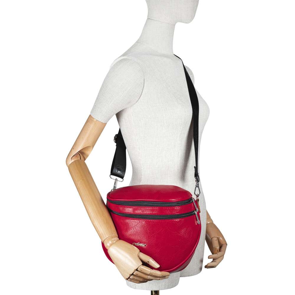 Tato ledvinka od značky RIEKER je stylová volba pro každodenní nošení. Výraznou červenou barvu svršku zdobí na přední straně stříbrné logo značky RIEKER, které symbolizuje kvalitu a prestiž. Na přední i zadní straně jsou umístěny malé kapsičky, které umožní snadný přístup k drobným věcem, jako jsou klíče nebo mobilní telefon. Hlavní prostor kabelky se uzavírá zipem a naleznete zde menší kapsičku ideální pro uložení drobností. Kromě toho má kabelka nastavitelný popruh, který umožní nosit ji tak, jak je pro Vám nejpohodlnější. Tato kabelka je kombinací elegantního designu a funkčnosti a bude skvělým doplňkem pro váš vzhled. Rozměry: cca V 23 cm x Š 26 cm x H 10 cm Vnitřní uspořádání: kabelka není dělená. Kabelka má délkově nastavitelný popruh, který lze odepnout. Maximální délka nastavitelného popruhu je cca 100 cm.
