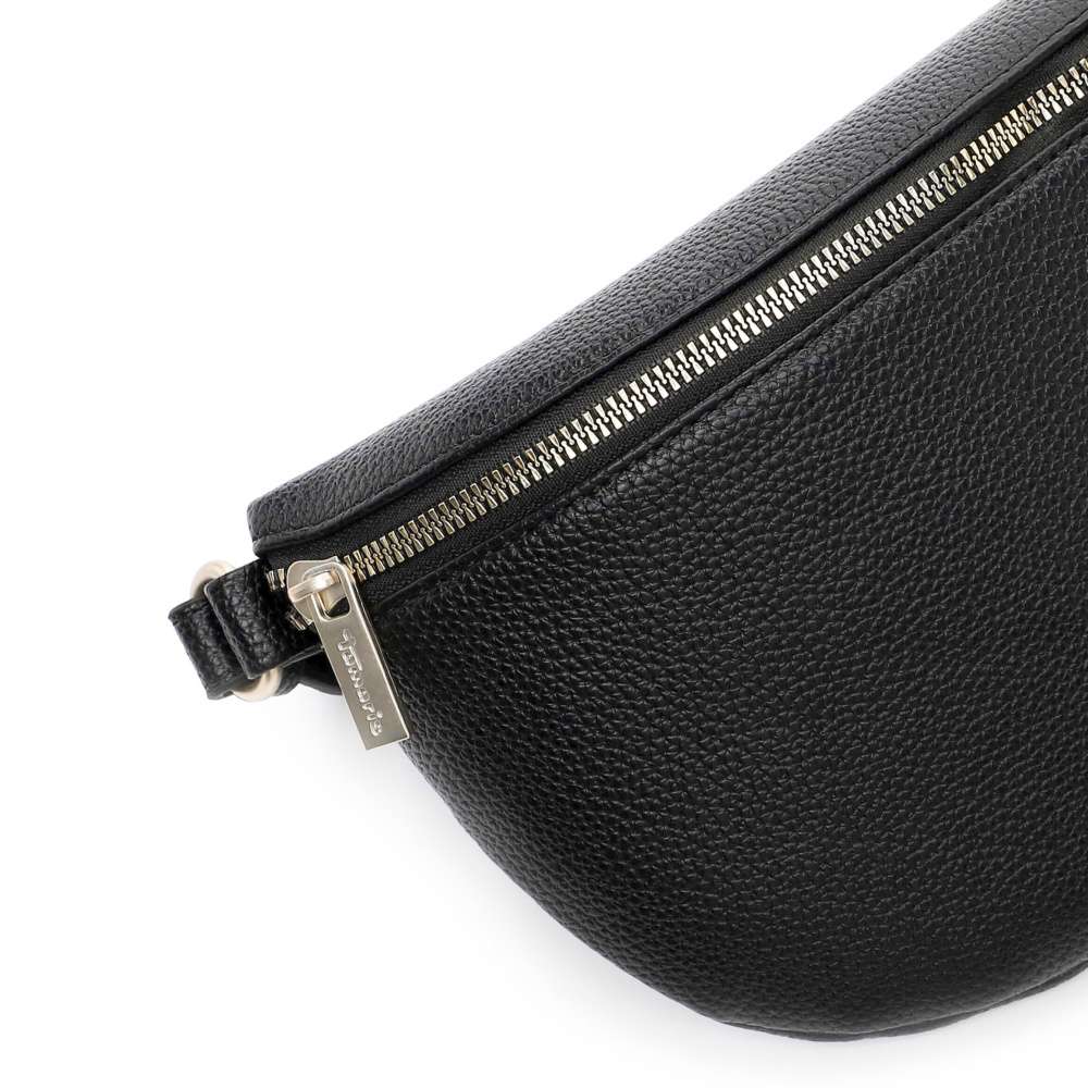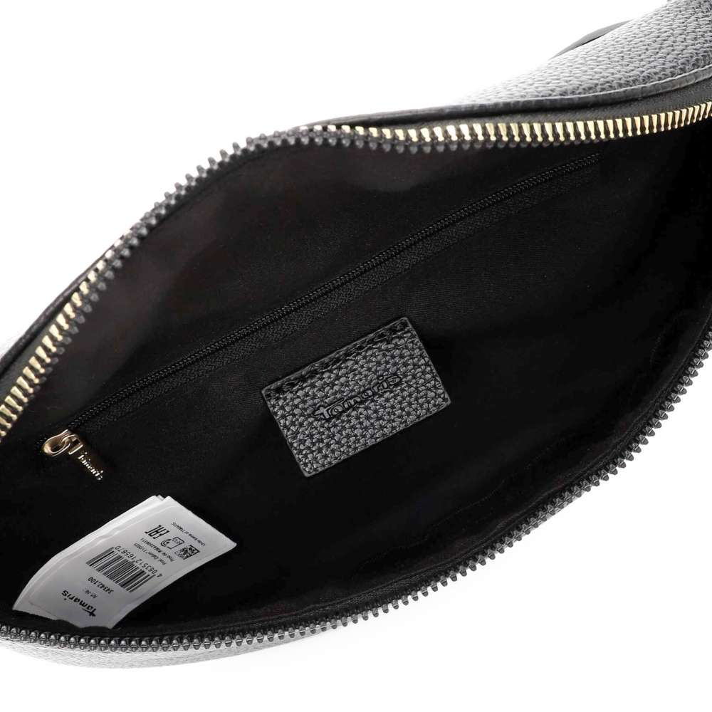 Černá ledvinka Tamaris je dokonalým spojením moderního designu, praktičnosti a sofistikovaného stylu. Její hladký svršek působí minimalisticky a decentní logo značky na přední straně dodává doplňku nádech exkluzivity. Zip hlavního prostoru odhaluje interiér doplněn menší kapsičkou ideální k uložení drobností. Délkově nastavitelný popruh umožňuje flexibilní nošení – ledvinku můžete pohodlně nosit přes rameno nebo elegantně crossbody, podle stylu, nálady či příležitosti. Tento promyšlený design zajišťuje, že ledvinka nejen skvěle vypadá, ale je i maximálně funkční a komfortní pro každodenní použití. Díky kombinaci praktičnosti, komfortu a moderního vzhledu je tato ledvinka ideální společník pro každodenní aktivity, kdy chcete vypadat stylově a mít vše potřebné vždy po ruce.
