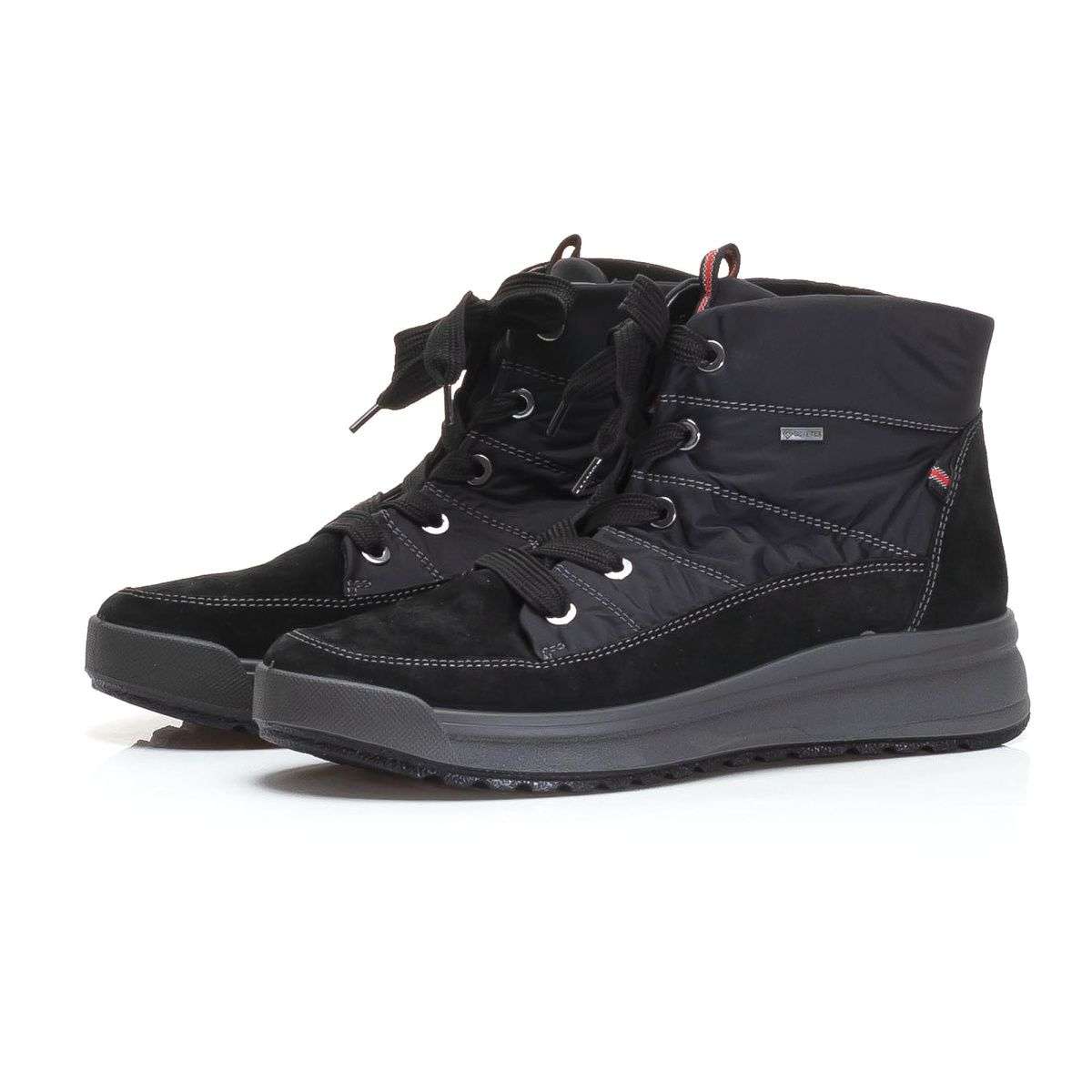 Dámská kotníková obuv s funkční vrstvou, značky ARA. Podešev Podešev je vyrobena z velmi kvalitního syntetického materiálu a v nejvyšším bodě pod patou je vysoká cca 3,5 cm. Svršek Dámské černé kotníky mají svršek v kombinaci semišového a textilního vzhledu. Doladěné jsou červenými detaily a kontrastním šitím. Funkční vrstvu Goretex oceníte v nepříznivém počasí. Tento pohodlný a elegantní model unosíte jak při volnočasových, tak při pracovních aktivitách. Stélka Měkkou stélku oceníte při každém kroku. Navíc je vyjímatelná tudíž ji můžete kdykoliv vyměnit a vyvětrat. Technologie: Goretex Vyjímatelná stélka: Ano