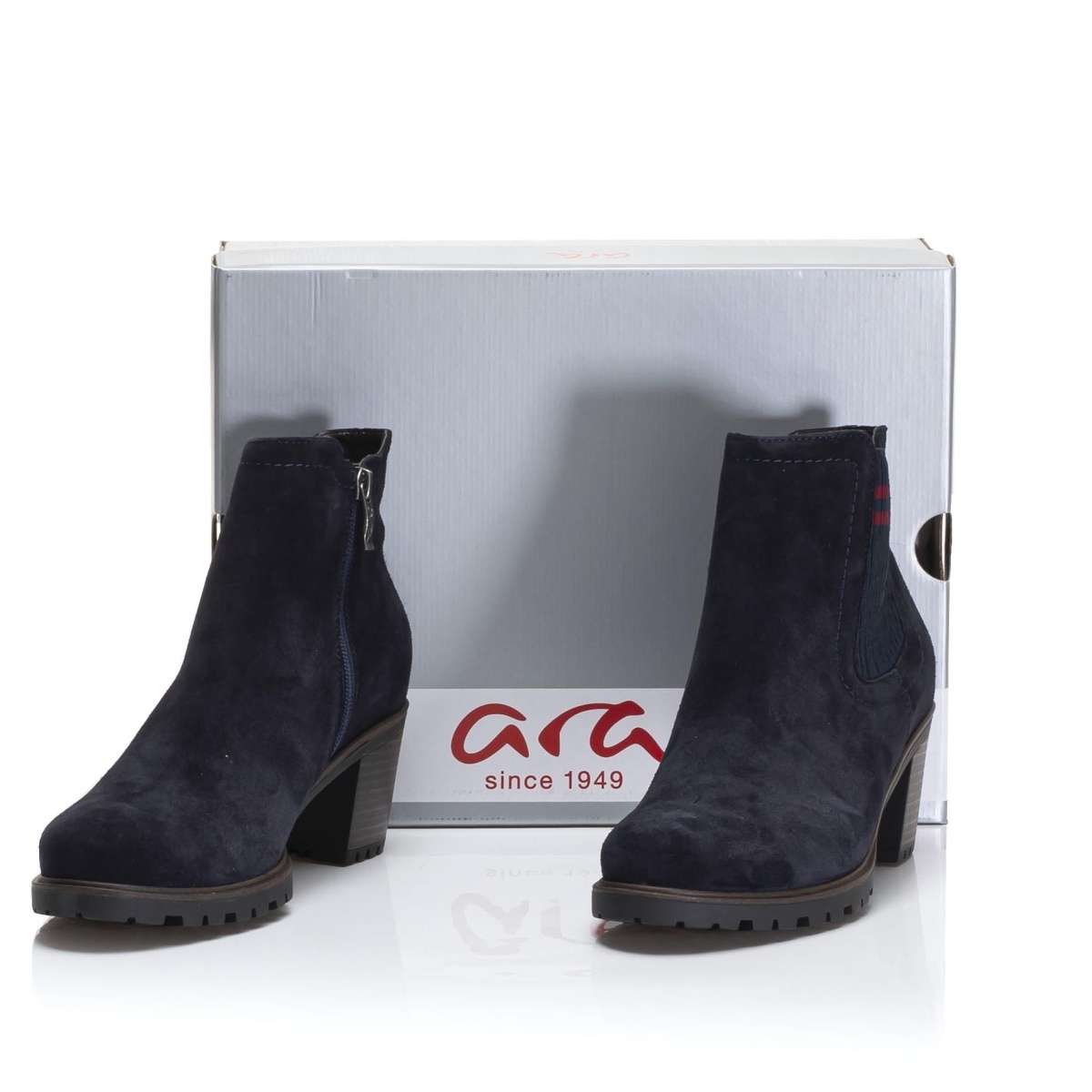 Krásná kožená obuv od značky ARA se vyznačuje vkusně přiléhavým svrškem. Podpatek ve výšce 6 cm a vzorovaná podešev z kvalitního syntetického materiálu Vám zaručí pohodlí. Vnitřek je lemován ekokůží kolem kotníku a kožíškem, který Vás bude hřát v chladných dnech. Ve vnitřní části je stélka, která Vás zahřeje díky skvělému hřejivému materiálu. Z vnitřní strany obuvi je zip pro lepší obutí a z vnější strany je všitá guma v barvě boty. Je to určitě zajímavý model, který skvěle doplní Váš outfit v chladných dnech.