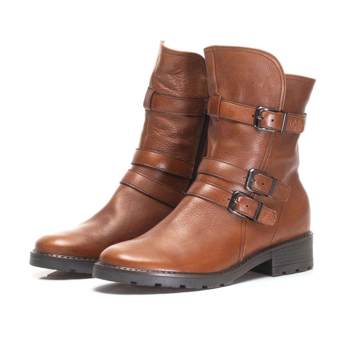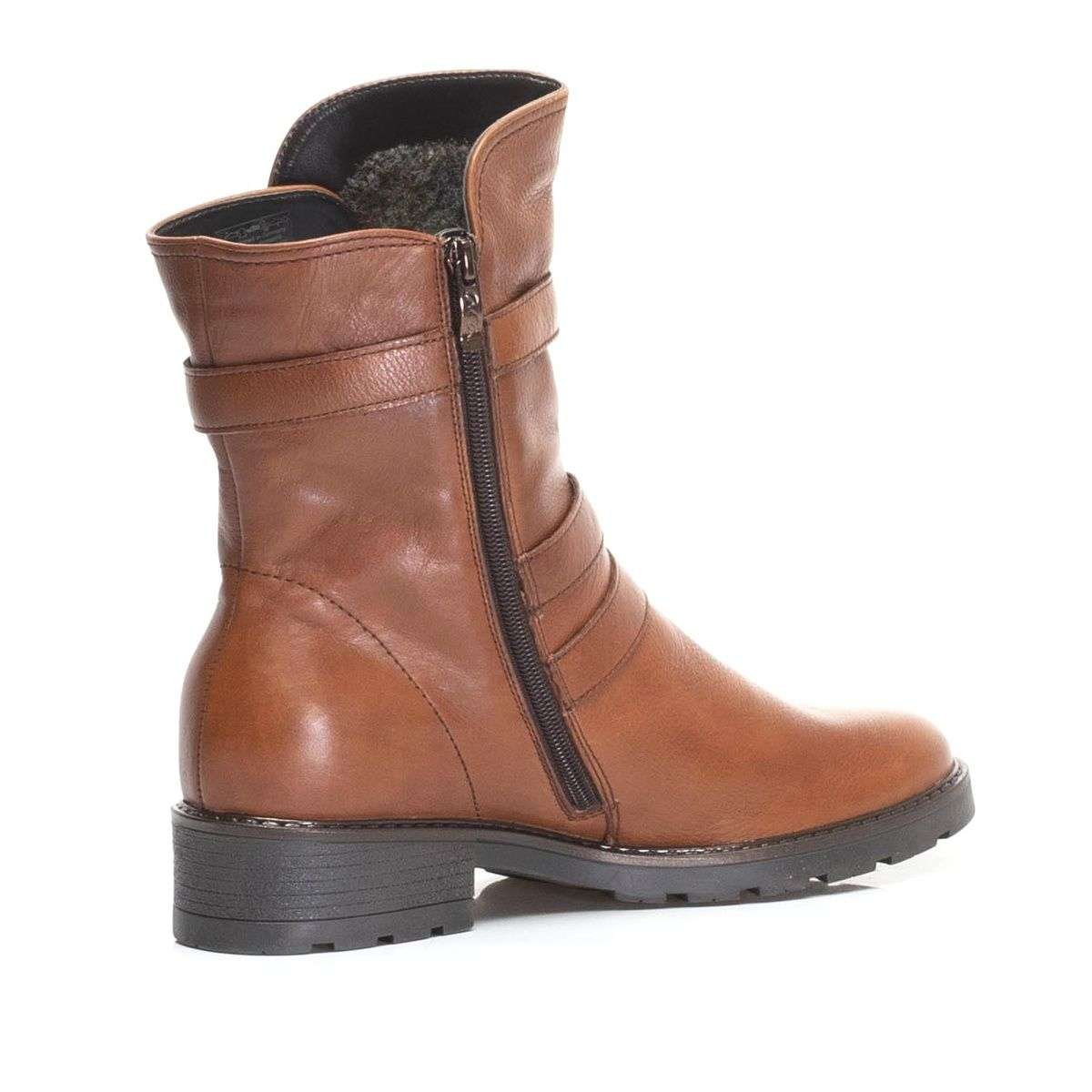 Dámské hnědé kotníky mají svršek šitý z pravé kůže v hnědé barvě. Doladěné jsou přezkami na vnější straně, které jsou posuvné pro zvětšení objemu v těchto místech. Na vnitřní straně je funkční zip pro snadné obutí. Tento pohodlný a elegantní model nabízený ve dvou barevných variantách unosíte jak při volnočasových, tak při pracovních aktivitách.