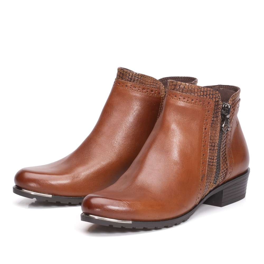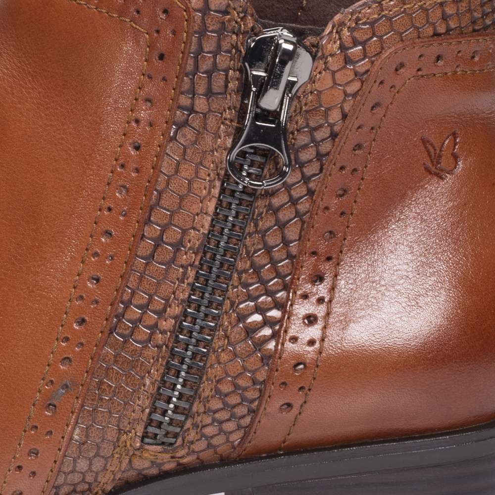 Dámská kožená obuv CAPRICE, Vás osloví zejména svou jednoduchostí. Svršek Svršek s ozdobným zipem a lemováním z hadího vzoru dělá tuto botu zajímavou a zároveň nadčasovou. Na vnitřní straně najdete funkční zip pro snadné obutí. Stélka Díky hřejivému zateplenému materiálu se nemusíte bát vyjít ven i v chladnějším počasí. Podešev Podešev s kovovou aplikací ve přední části má široký podpatek o výšce cca 3 cm pro lepší stabilitu. Můžete si je obout na pracovní schůzku nebo do města, ke kalhotám nebo jeansům, vždy budete vypadat skvěle a cítit se pohodlně.