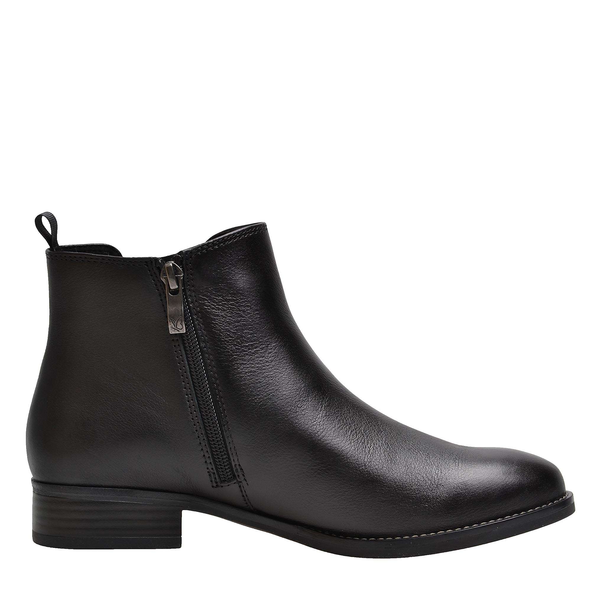Dámské kožené kotníkové boty jsou maximálně pohodlné a praktické vsazenou boční gumičkou i zipem z vnitřní části boty pro usnadnění nazouvání. Hladký svršek černé barvy využijete na pracovní i volnočasové aktivity.
