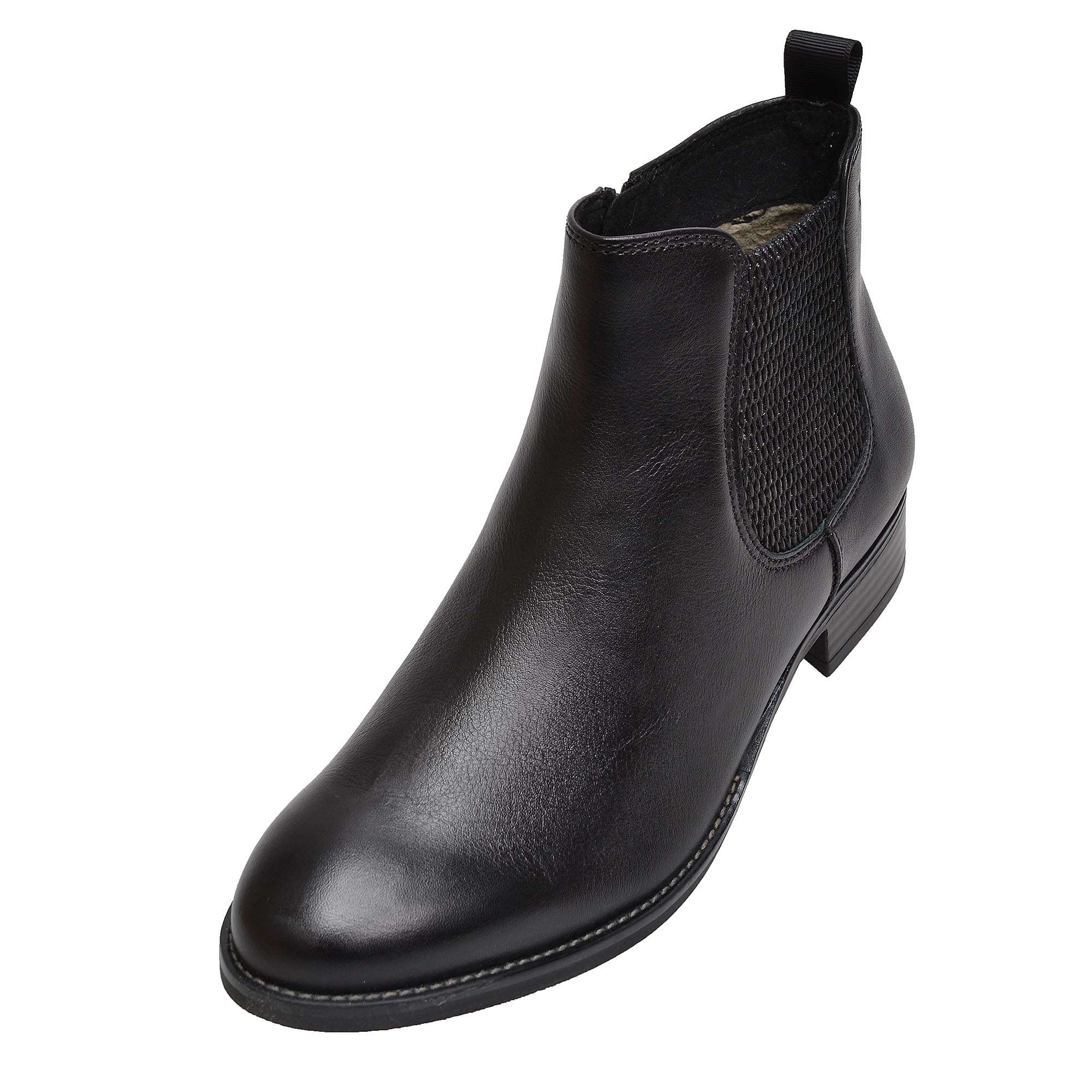 Dámská kožená kotníková obuv v univerzální černé barvě, značky CAPRICE. Podešev Podešev s jemným vzorkem a podpatkem vysokým cca 3 cm působí sportovně elegantním dojmem. Svršek Dámské kožené kotníkové boty jsou maximálně pohodlné a praktické vsazenou boční gumičkou i zipem z vnitřní části boty pro usnadnění nazouvání. Hladký svršek černé barvy využijete na pracovní i volnočasové aktivity. Stélka Textilní stélku vyrobenou technologií OnAir Insole si zamilujete na prví nášlap, dokonale tlumí nárazy při chůzi a zaručuje cirkulaci vzduchu v botě. Gelové bublinky v stélce budou jemně masírovat Vaši nohu při chůzi. Podešev: cca 1 cm Podpatek: cca 3 cm Šíře boty: G - střední šíře obuvi Technologie: OnAir Insole