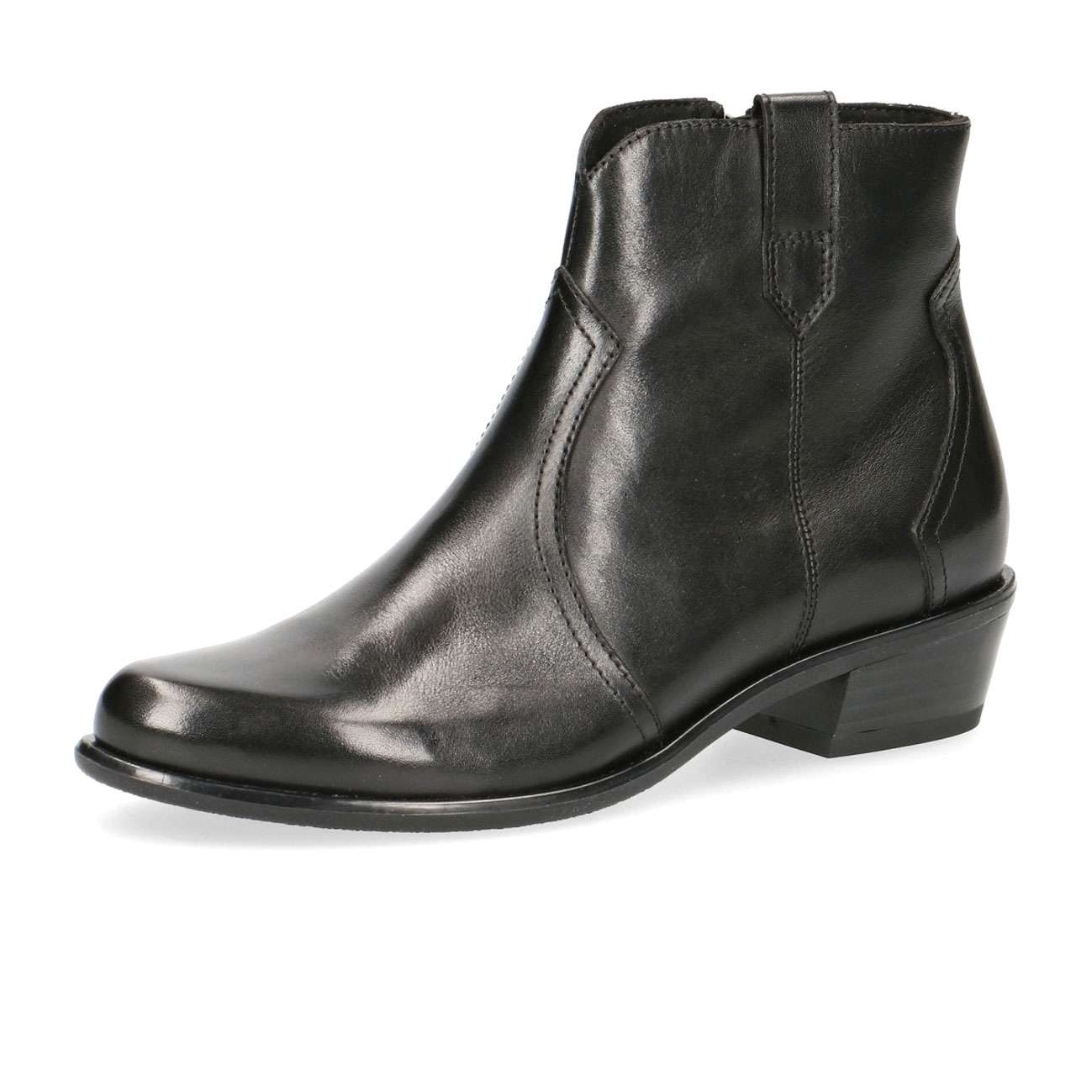 Dámské kotníkové boty od značky CAPRICE si zamilujete díky svršku vyrobeného z lesklé černé kůže s výrazným prošitím. Pro snadnější obutí mají na vnitřní straně zapracovaný funkční zip.
