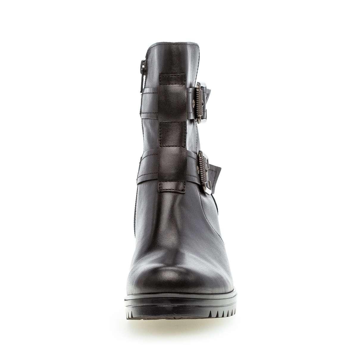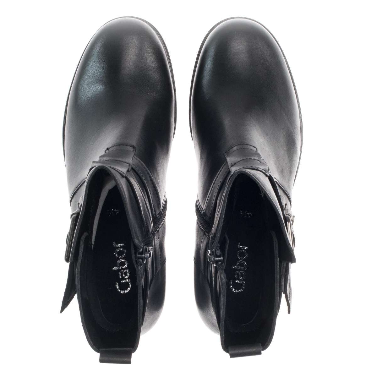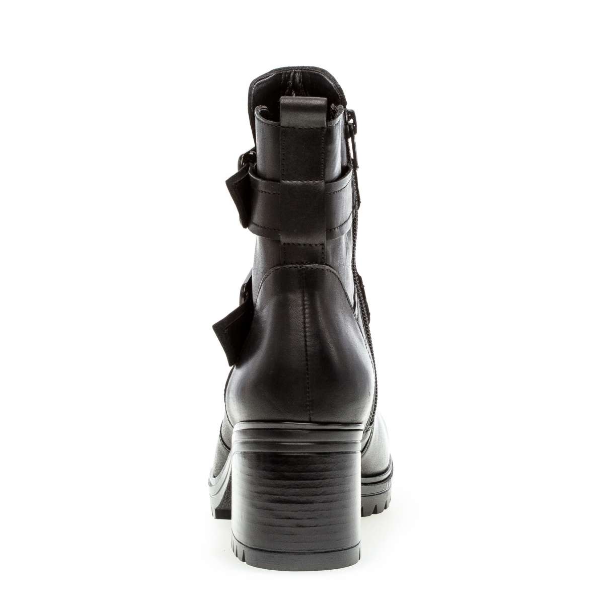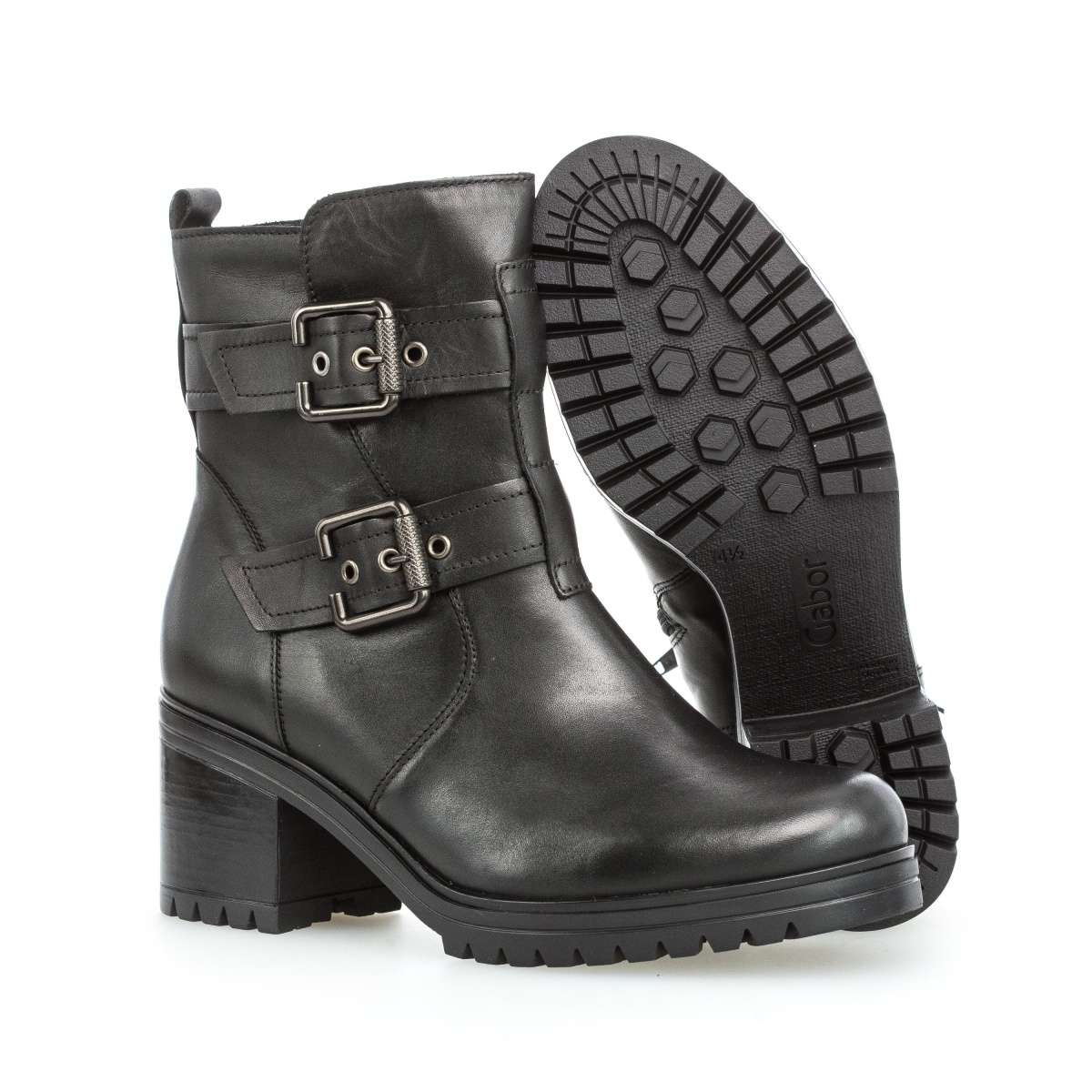 Hladká kůže je zdobena kolem nohy dvěma výraznějšími pásky s přezkami. Z vnitřní strany je všitý funkční zip pro snadné obutí.