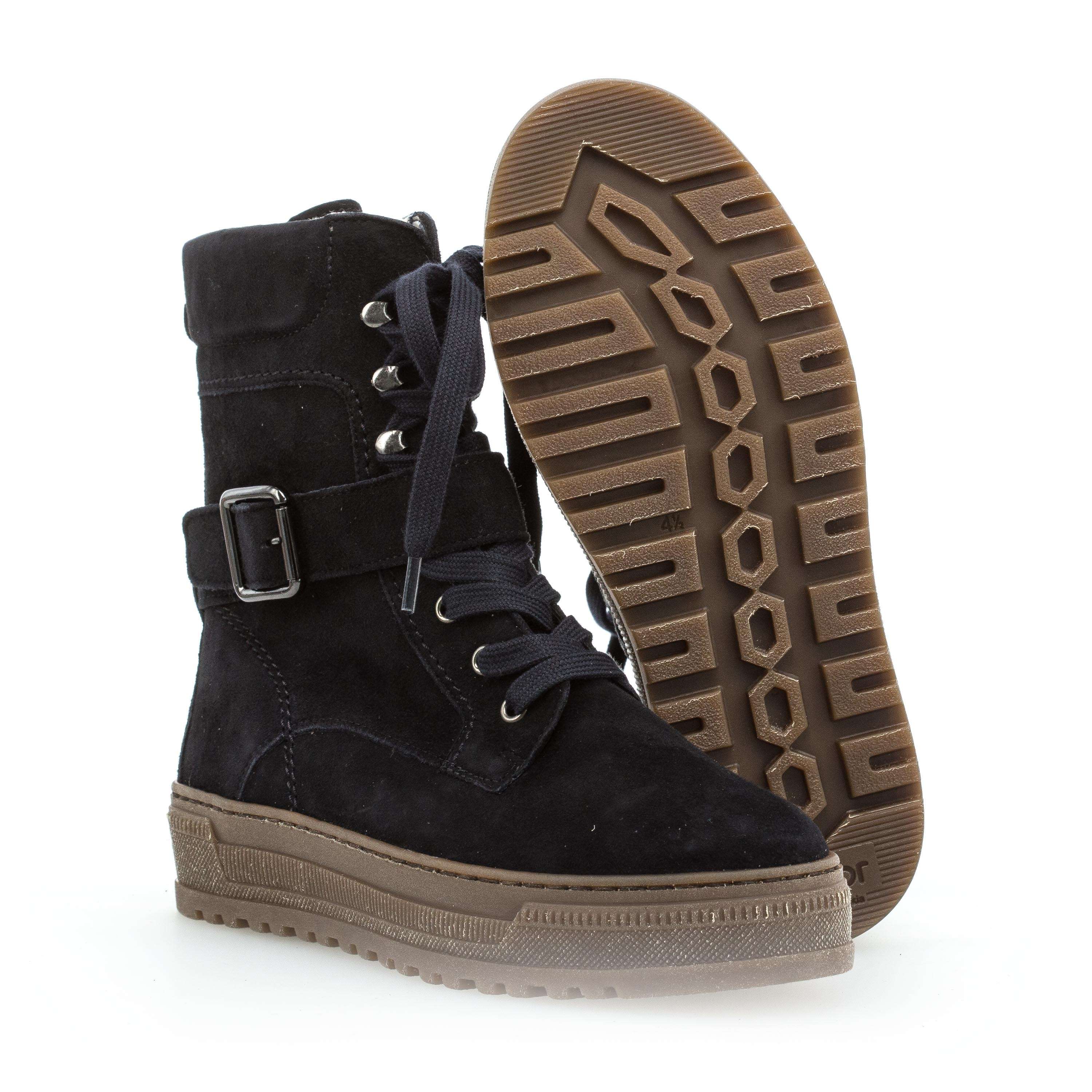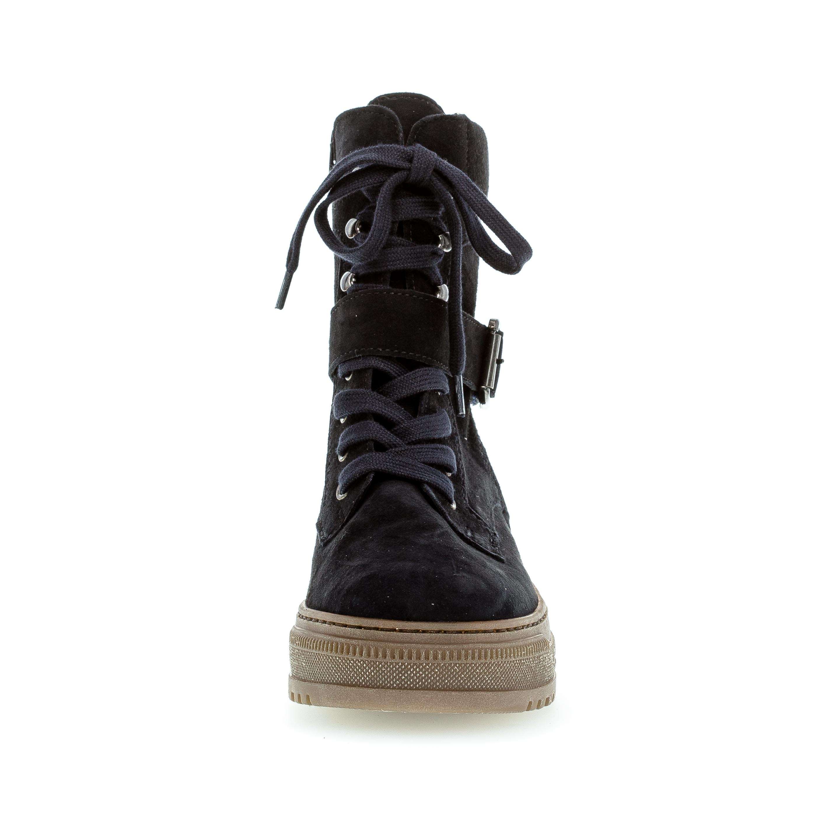 Dámská kožená kotníková obuv značky Gabor se vyznačuje svým jednoduchým zdobením v podobě prošívání a pásku se sponou kolem kotníku. Pro snadné nazouvání slouží zip na vnitřní straně a šněrováním si obuv přizpůsobíte dle svých požadavků. Tato obuv bude Vaším dobrým partnerem na procházkách městem.