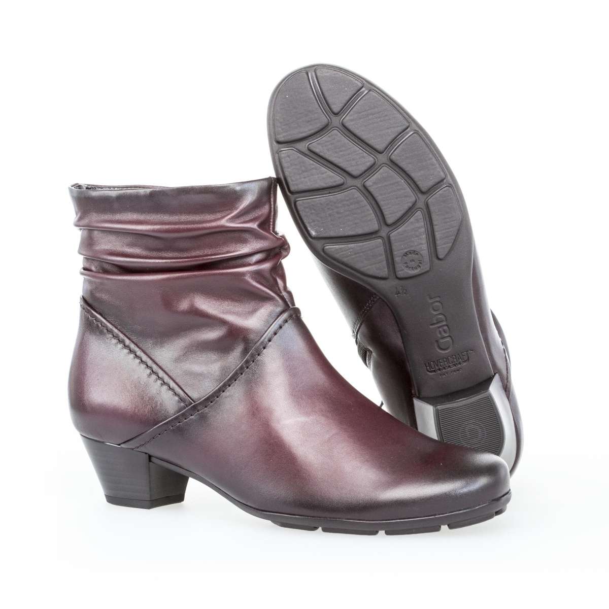 Dámská kotníková obuv z hladké kůže s nařasením, značky GABOR.