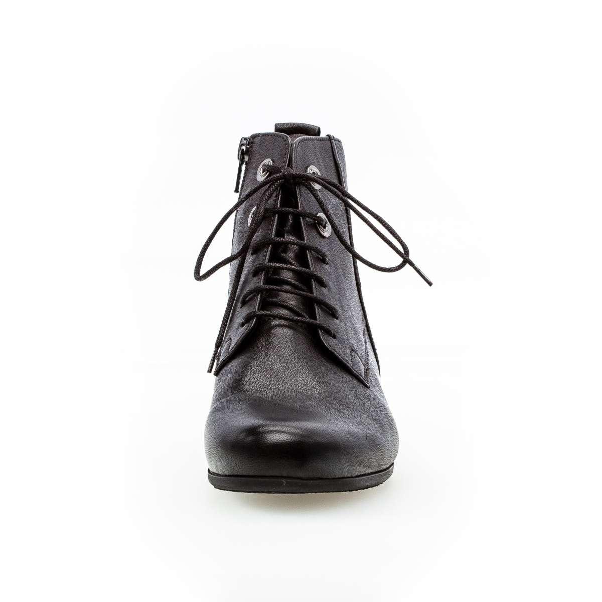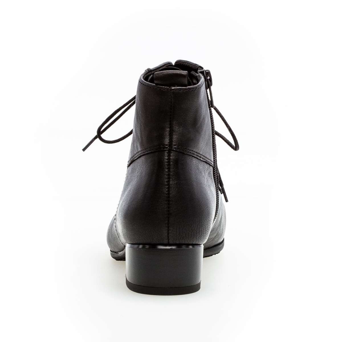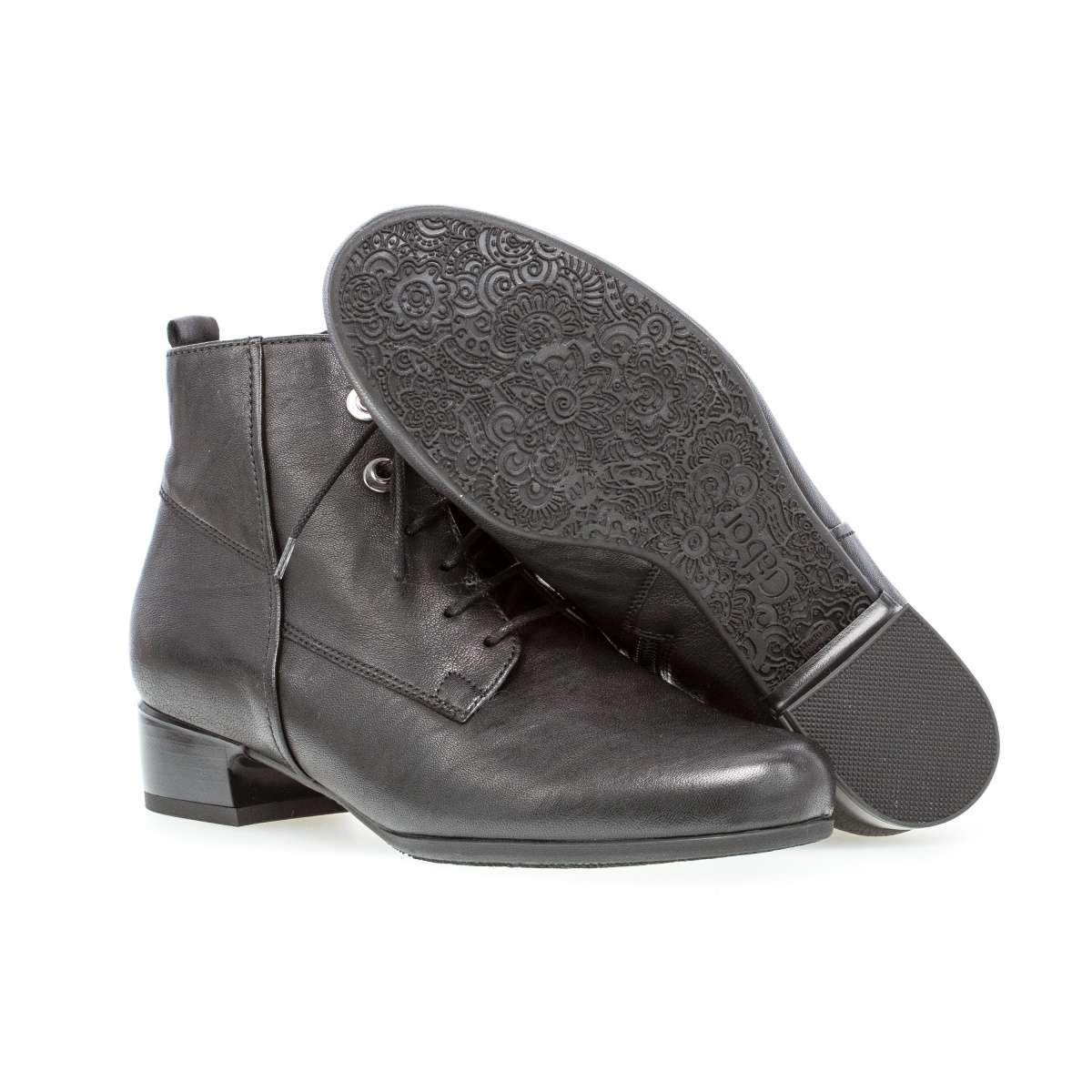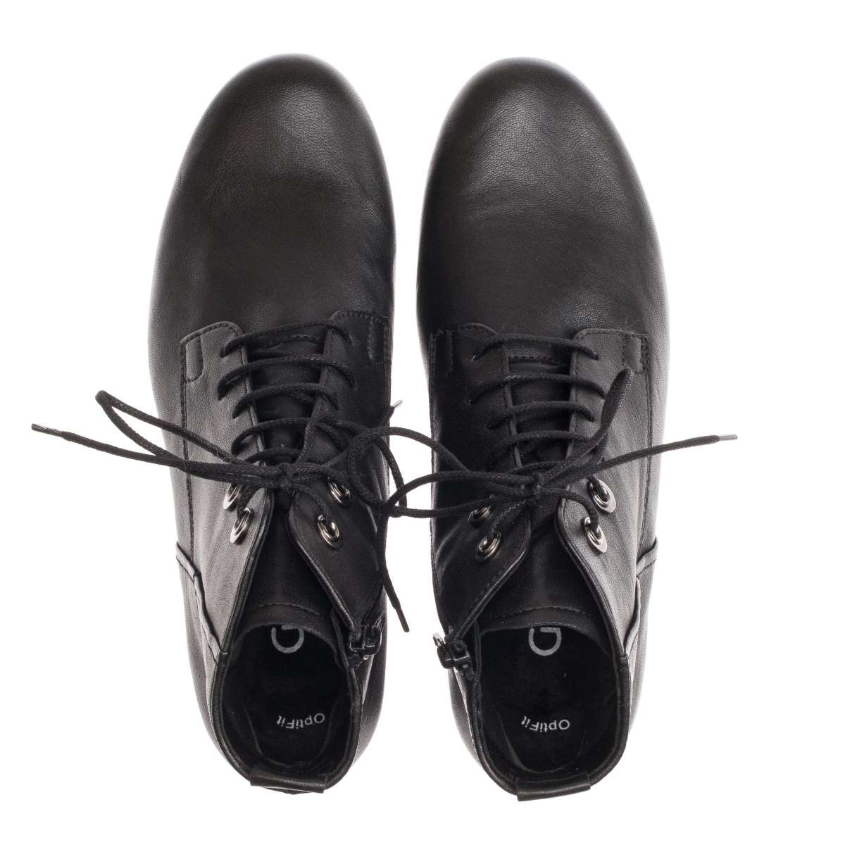 Dámské kotníkové boty šité z pravé hladké kůže v černé barvě jsou ideálním společníkem na chladné zimní dny. Zdobené jsou elegantním šitím a výrazným kováním dírek na tkaničky. Díky technologii Comfort poskytuje obuv více prostoru pro prsty, bříška palců a v oblasti nártu. Funkční zip vnější straně pomůže při prozutí. Šněrováním si pak obuv upravíte přímo k vlastní noze. Tento úžasný model unosíte jak na běžné pochůzky, při procházce s dětmi, tak na cestu do práce.