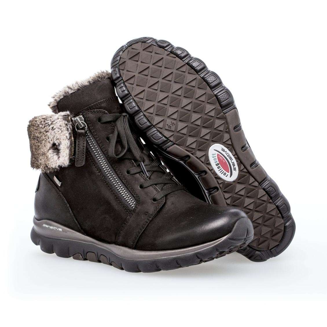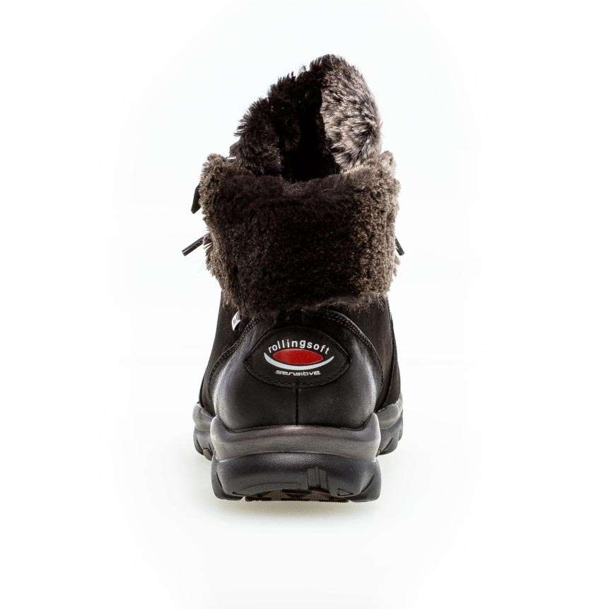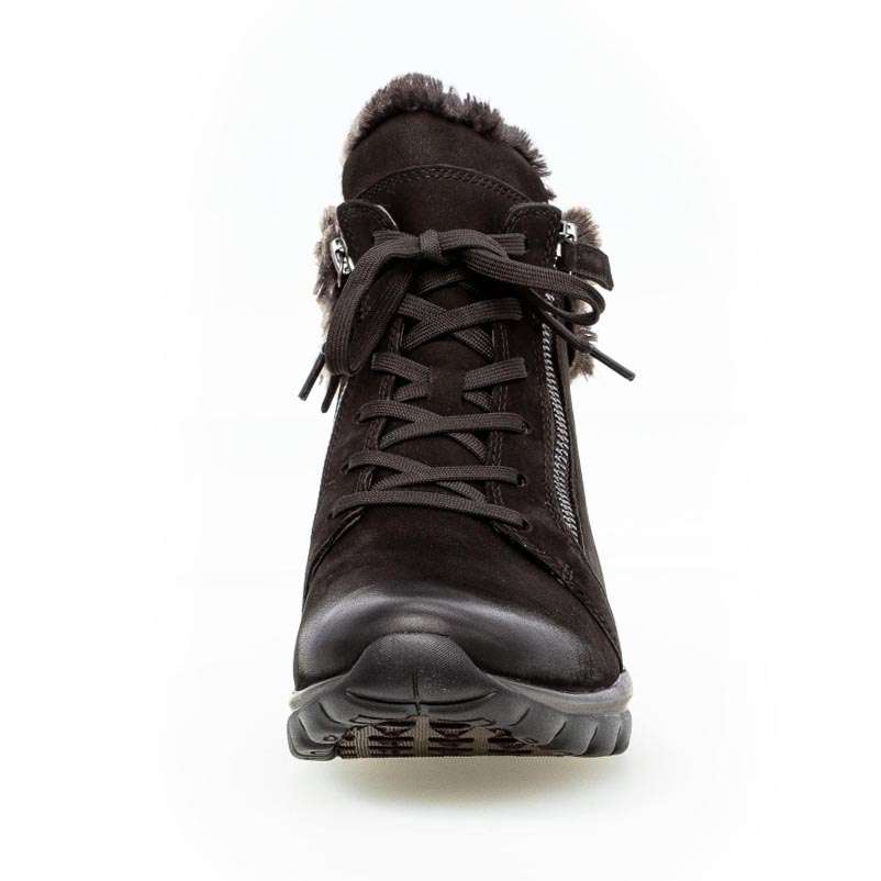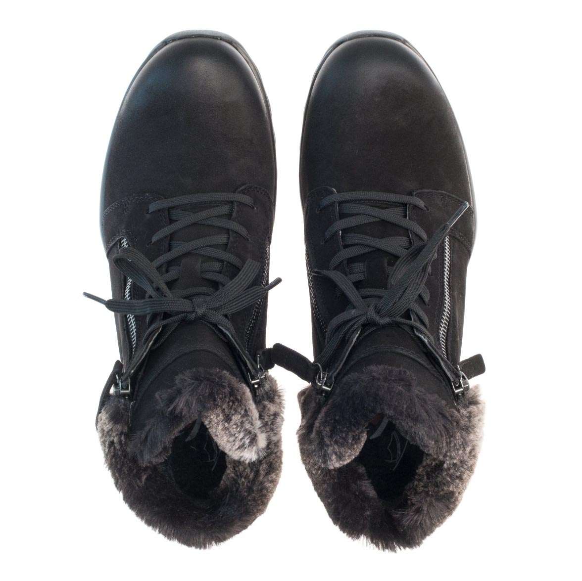Dámské kotníkové boty šité z pravé broušené kůže v černé barvě jsou parádním společníkem na chladné zimní dny. Zdobené jsou kožíškem kolem horního okraje a prvky v patě a na vnější straně. Funkční zipy po stranách pomůžou při prozutí. Šněrováním si pak obuv upravíte přímo k vlastní noze. Tento úžasný model unosíte jak na běžné pochůzky, při procházce přírodou, tak na cestu do práce.