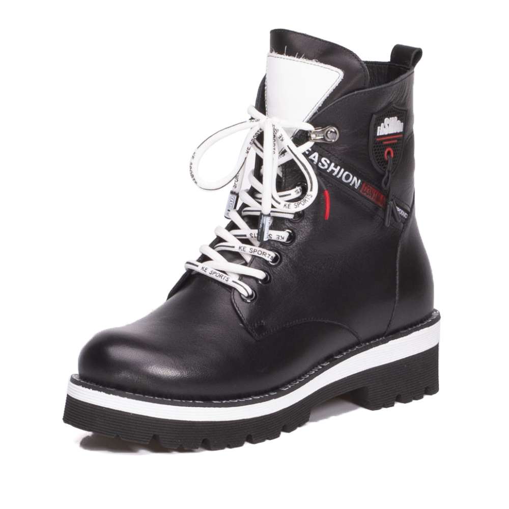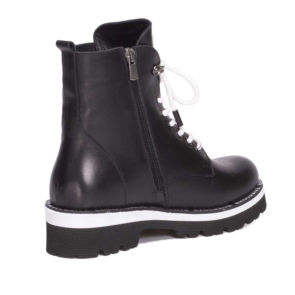 Dámská kotníková obuv značky IBERIUS pro všechny příležitosti je zdobena funkčním zipem na vnitřní straně a bílým šněrováním, které společně usnadní nazouvání.