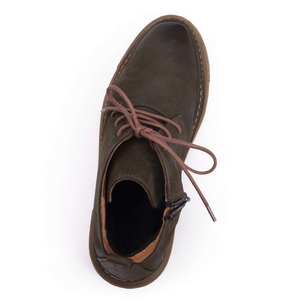 Svršek vyrobený z pravé kůže je ozvláštněn jemným prošíváním a šněrováním, kterým si obuv přizpůsobíte dle Vašich požadavků. Pro snadné nazouvání Vám poslouží funkční zip umístěný na vnitřní straně obuvi.