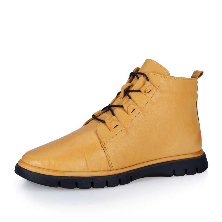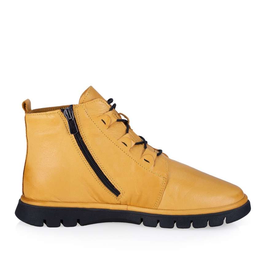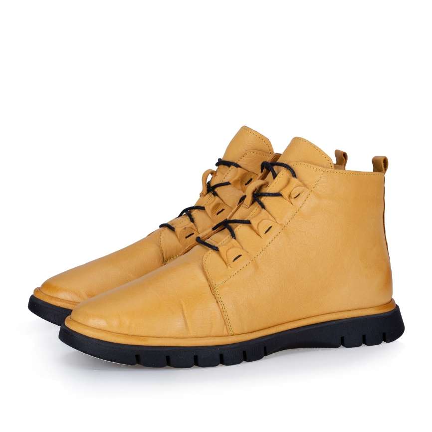 Kotník IBERIUS je synonymem stylového designu a pohodlí, výrazná žlutá barva a unikátní šněrování vytváří originální styl. Boční zip usnadňuje obouvání a měkká stélka zajišťuje pohodlí pro vaše nohy během celého dne. Tento model značky IBERIUS je připraven dodat vzhledu výraz a charakter. Je to obuv, která vynikne a upoutá pozornost.