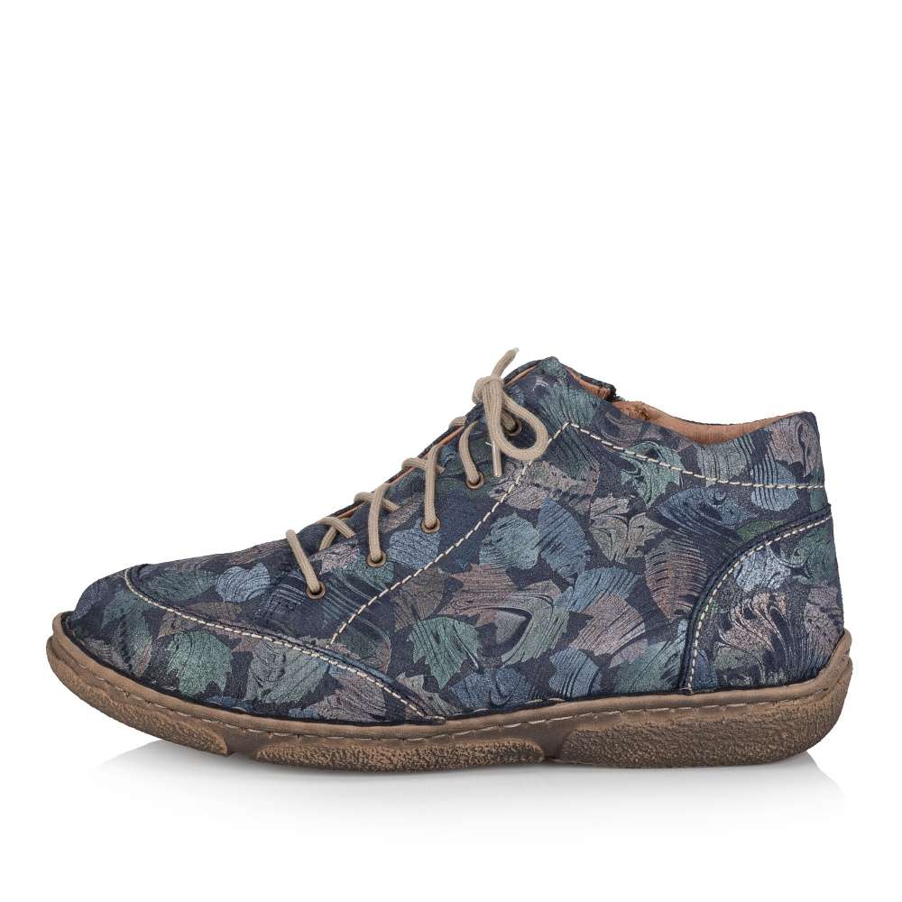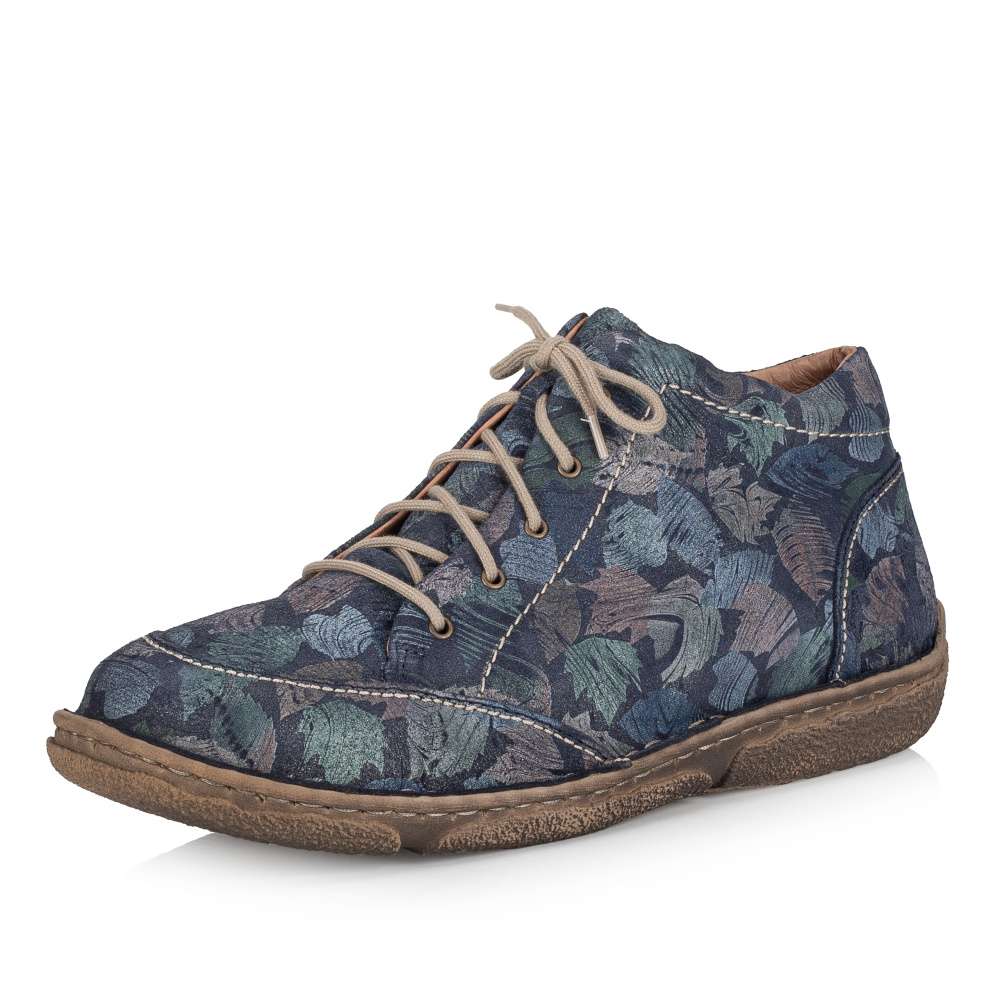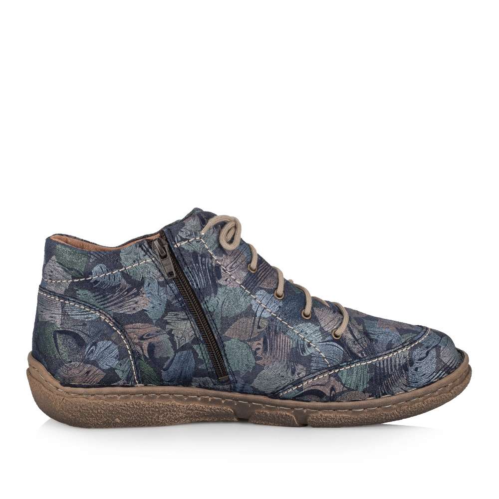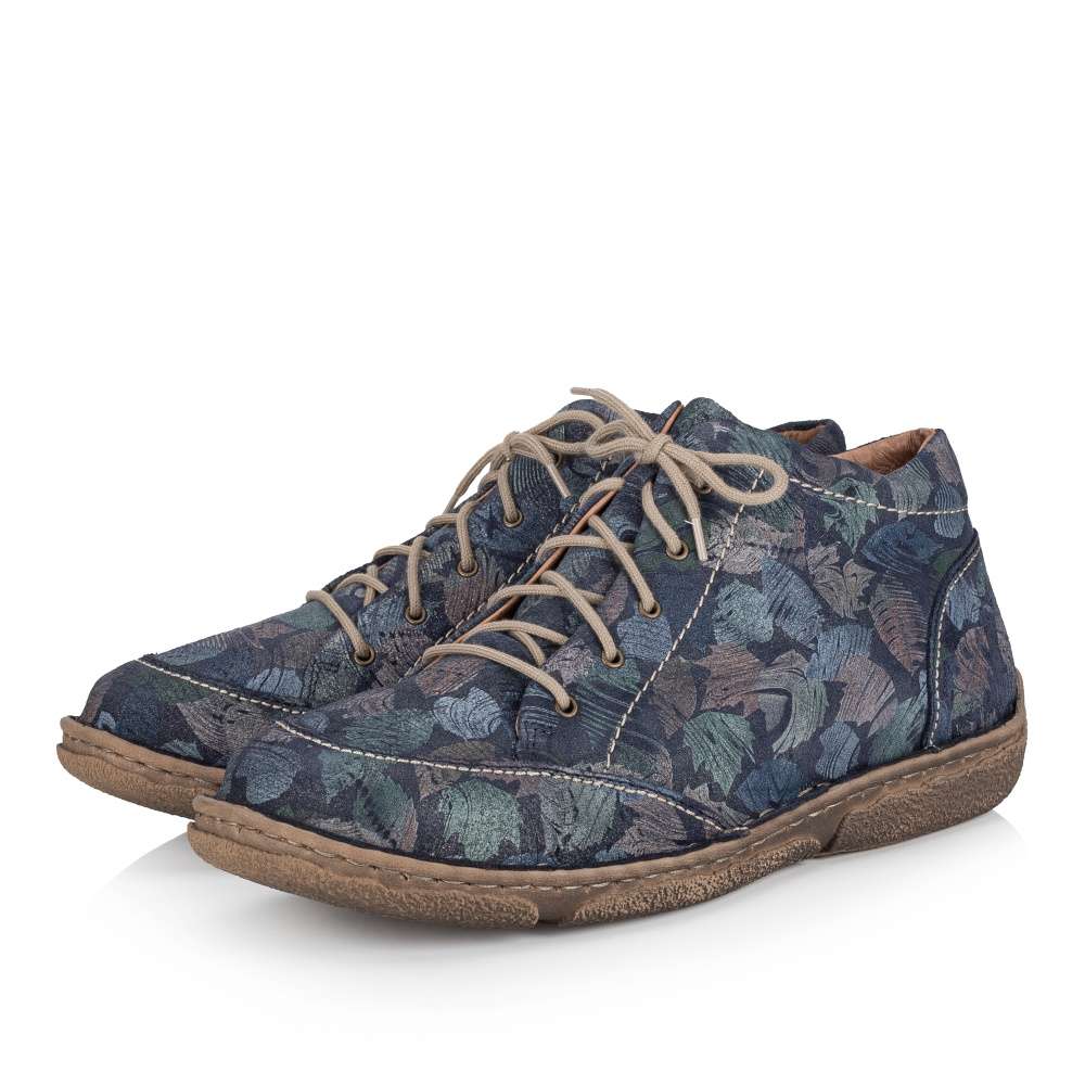 Detailní informace Svršek tohoto velmi pohodlného modelu značky Josef Siebel je designový unikát pro ženy, které se nebojí experimentovat. Třpytivý nádech a barevné lístečky dodají botě na jedinečnosti. Svršek je jemně prošitý kontrastní nití. Díky funkčnímu zipu a šněrování se Vám budou boty lehce nazouvat a přizpůsobí se Vašim potřebám. Obuv je vyrobena z přírodní usně. Boty si můžete vzít na procházky parkem, nebo na pracovní záležitosti k jednoduchému outfitu.