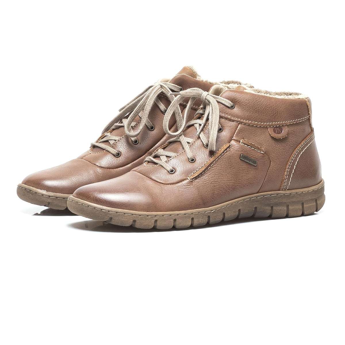 Dámská kotníková obuv šitá z pravé kůže hnědé barvy zdobena je kontrastním šitím a hnědými prvky. Šněrováním si je pak upravíte přesně dle vlastních požadavků. Příjemnou podšívku a membránu TopDryTEX, díky které je obuv nepromokavá a přesto prodyšná oceníte i v chladných dnech. Tento velmi pohodlný a elegantní model nabízený ve třech barevných variantách a využijete je ke všem příležitostem a outfitům.
