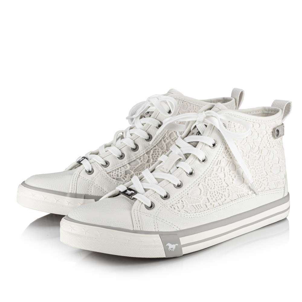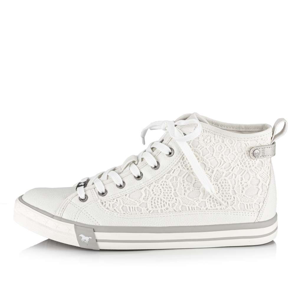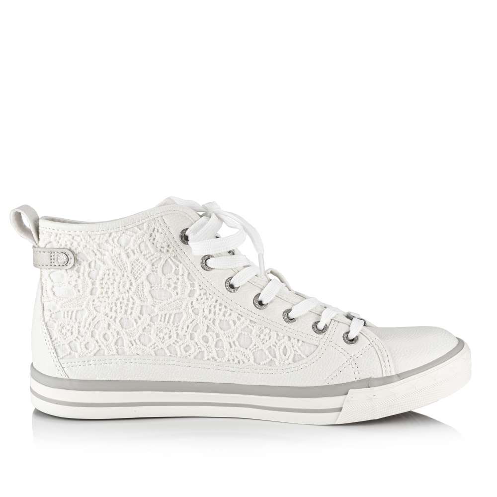 Detailní informace Tyto krásné kotníkové tenisky značky MUSTANG, budou skvělé pro Váš nevšední outfit. Na stranách jsou zdobené všitou hezkou textilní krajkou a vyšité po stranách jemnou nití. Boty si nastavíte díky vkusné tkaničce. Tento model oceníte při celodenním nošení a krásně jej zkombinujete.