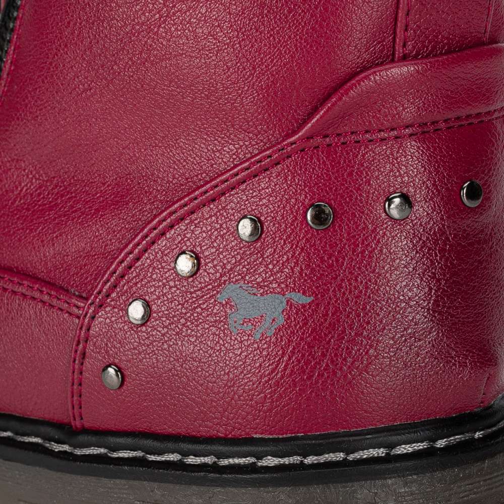 Detailní informace Tyto dámské kotníky značky MUSTANG Vás uchvátí na první pohled. Výrazný červený svršek je zdobný kovovými cvočky, jemným prošíváním a zipem na vnější straně. Snadné nazouvání a přizpůsobení obuvi dle požadavků zajistí šněrování na nártu a funkční zip na vnitřní straně. Pohodlí na každém kroku Vám zajistí hřejivá podšívka, měkká stélka a kvalitní podešev, která svým vzhledem dolaďuje obuv k dokonalosti. Tento nádherný model unosíte jak na běžné pochůzky, tak na cestu do práce.
