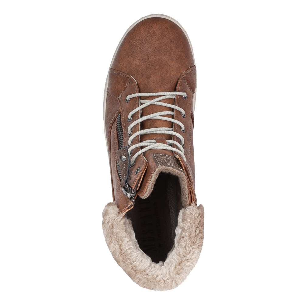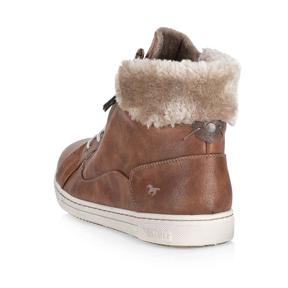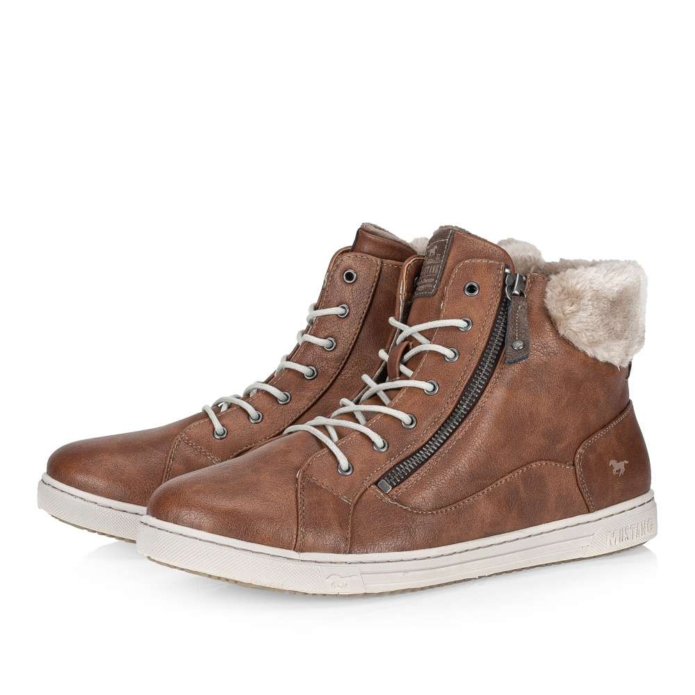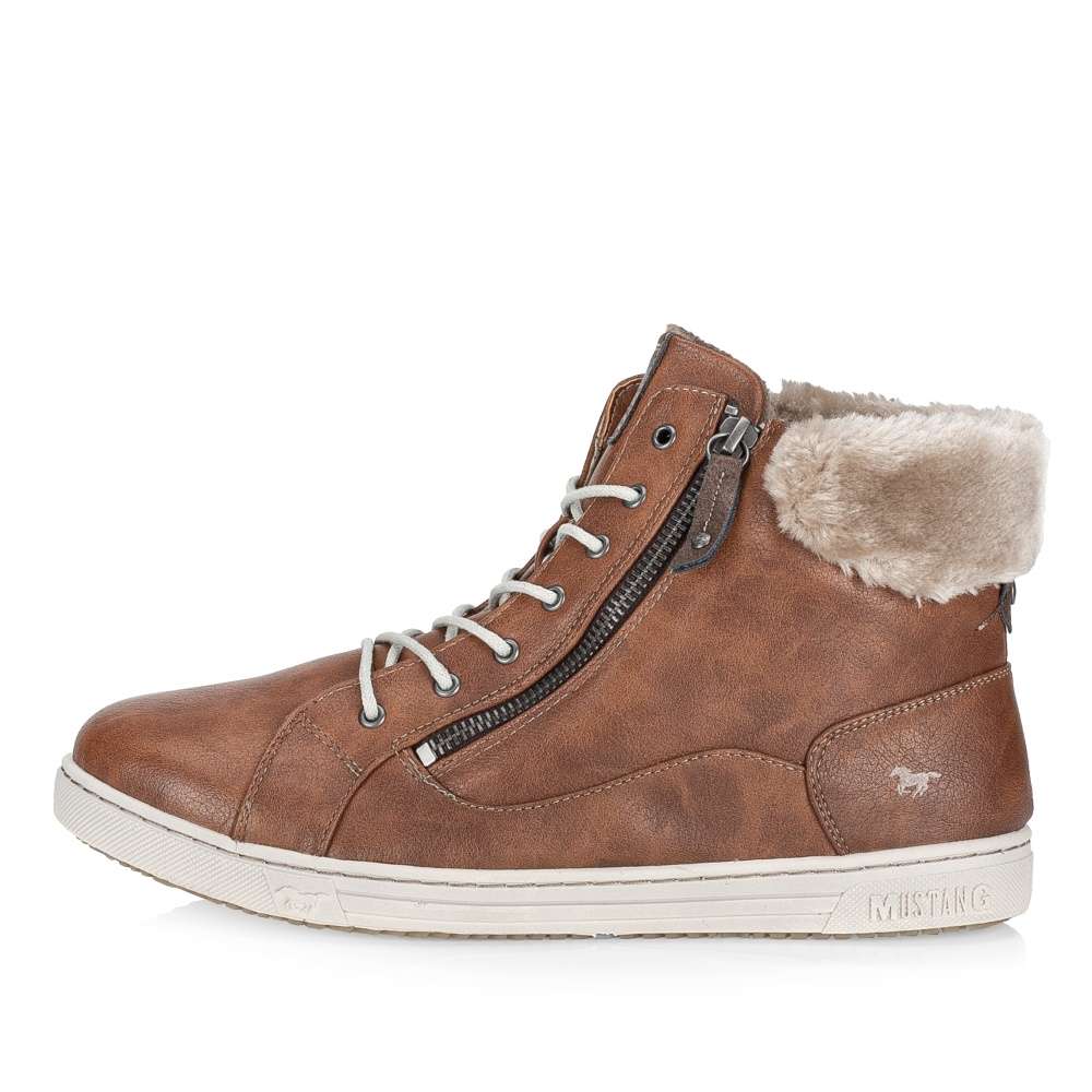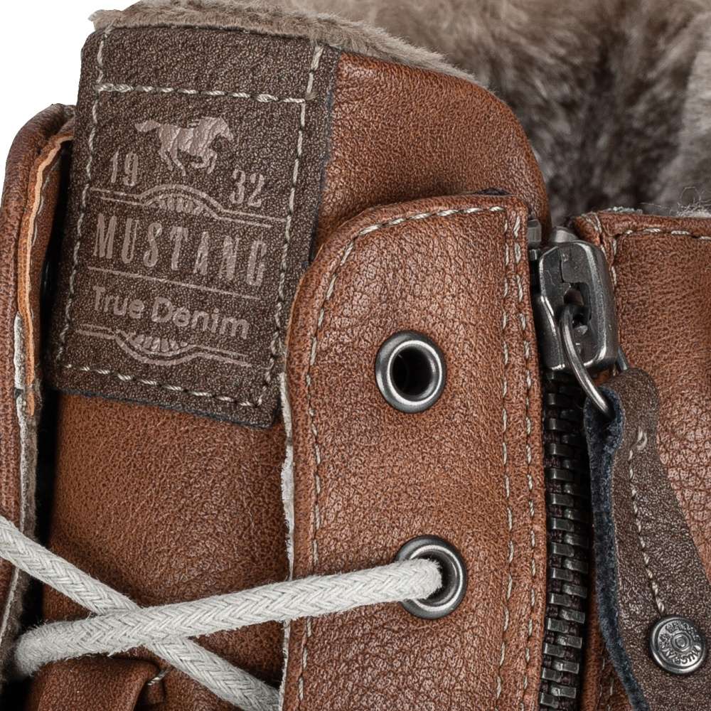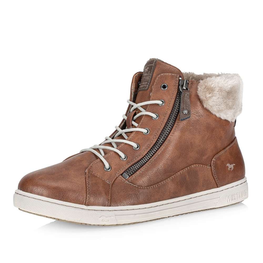 Tyto hřejivé dámské kotníkové boty Mustang si v chladných zimních dnech zamilujete. Hladký členitý svršek v hnědé barvě je kontrastně prošit světlou nití a kolem kotníku se nachází hřejivý kožíšek. Na jazyku se vyjímá nášivka s logem značky. Ke snadnému nazutí jsou zde použity funkční zipy na vnější straně obuvi. Pomocí šněrování si je pak upravíte na noze dle potřeby. Díky kvalitní podešvi a vnitřnímu zateplení se budete cítit pohodlně a v teple i při delší zimní procházce.