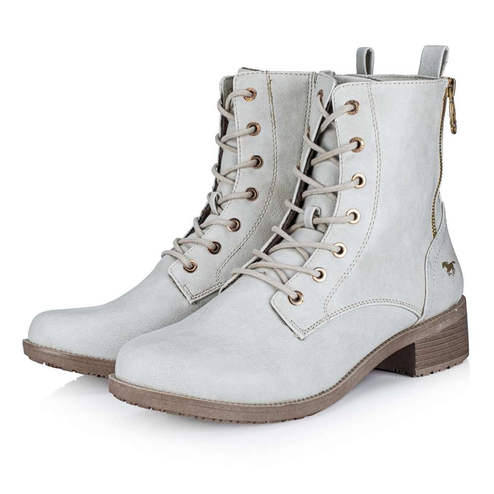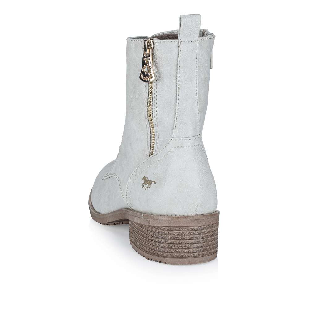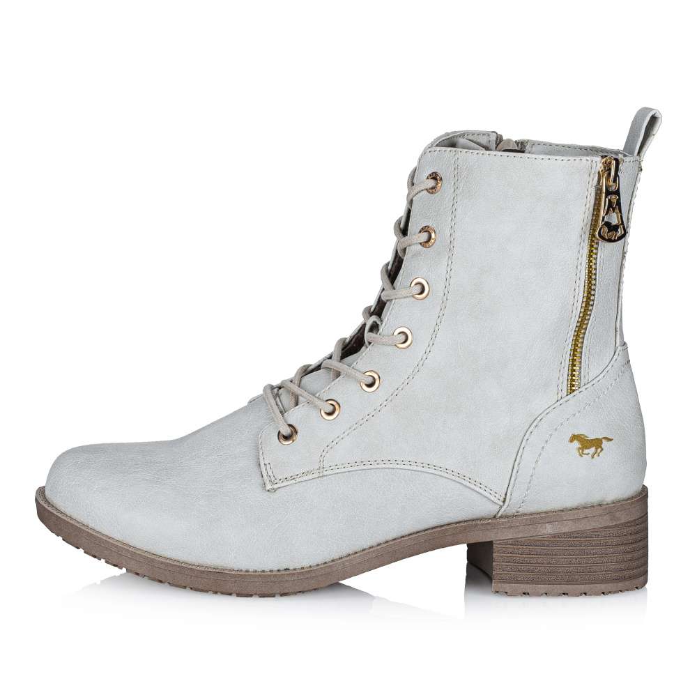 Detailní informace Tyto dámské kotníky značky MUSTANG v designové barvě Vás uchvátí na první pohled. Hladký svršek je zdoben jemným prošíváním a malým logem značky na patě. Snadné nazouvání a přizpůsobení obuvi dle Vašich požadavků zajistí šněrování a funkční zip na vnitřní straně obuvi. Na vnější straně najdete druhý kratší zip, který plní funkci ozdoby. Zipy mají kontrastní zlatou barvu. Pohodlí a komfort Vám zajistí měkká stélka s hřejivou podšívkou. Proto Vás už nemusí trápit chladné zimní večery. Menší podpatek podtrhne krásu tohoto modelu.
