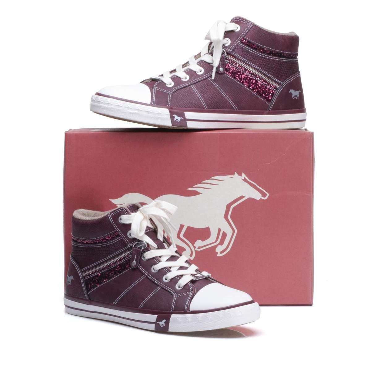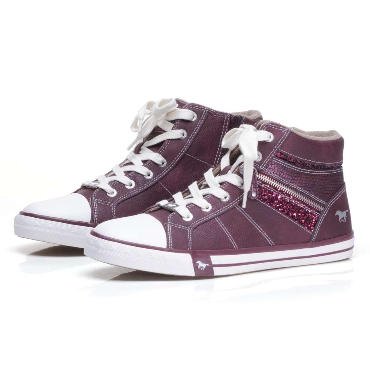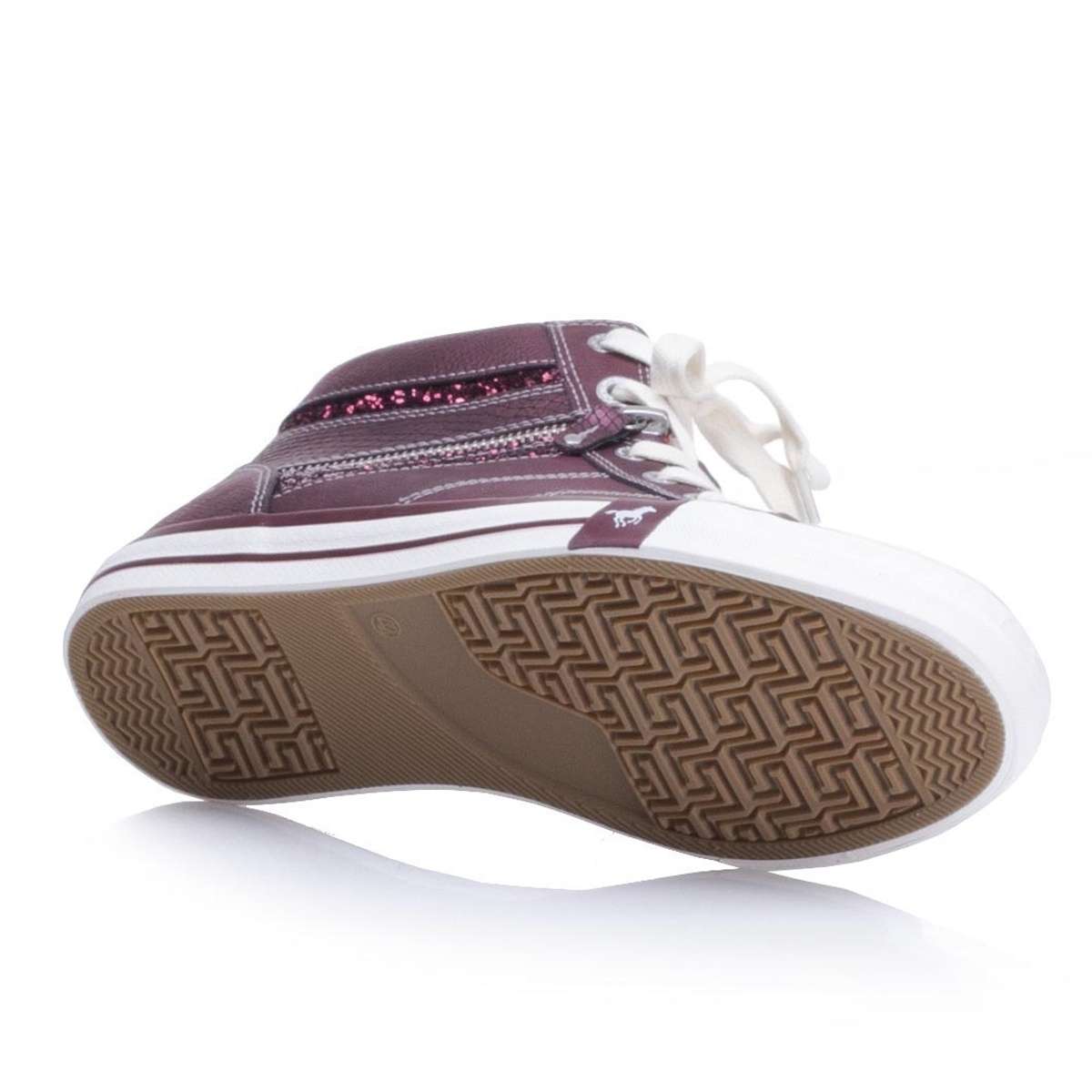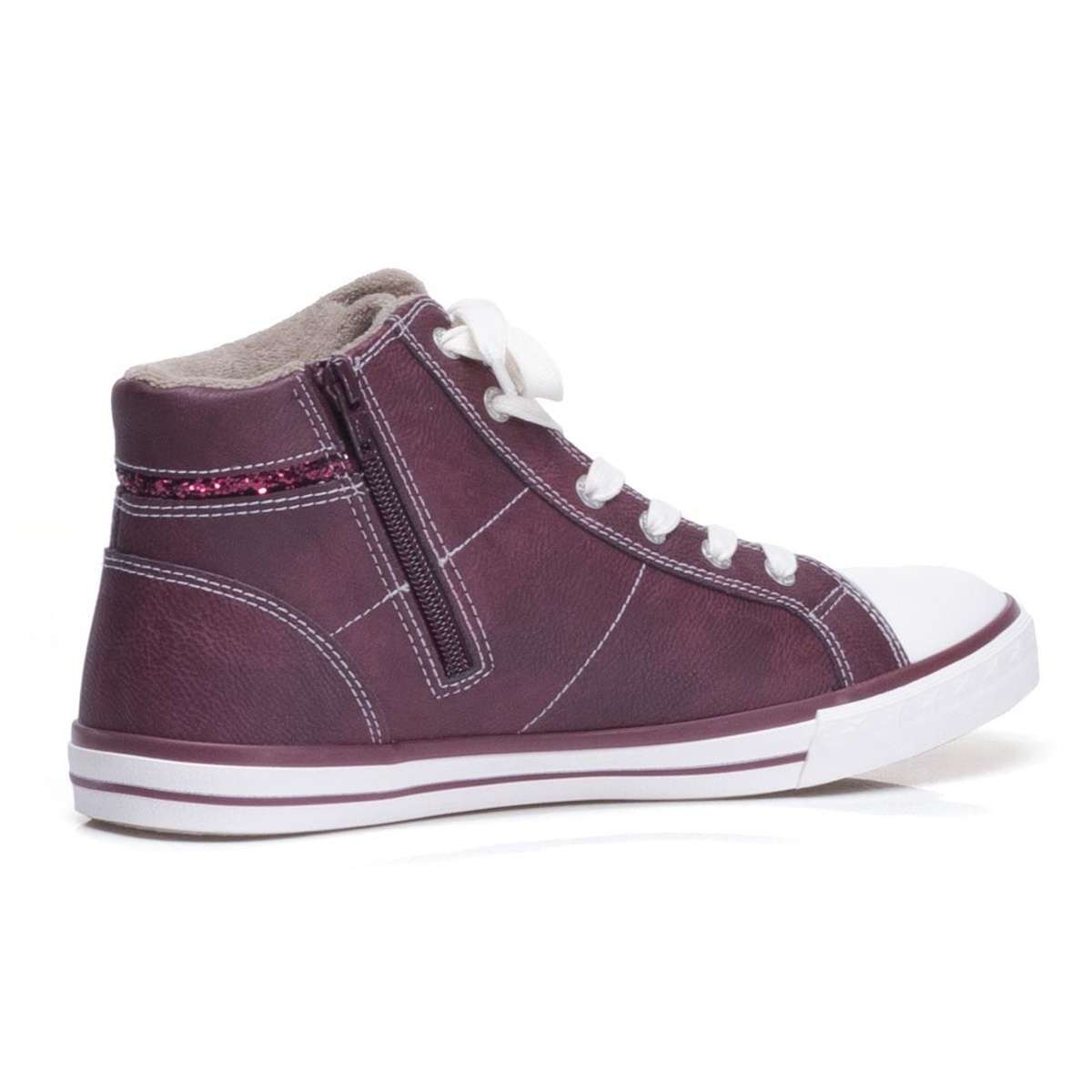 Dámský nízký kotník v úžasné kombinaci bordó a světlé barvy zdobený kontrastním šitím, flitrovým páskem na vnější straně a kolem paty. Na vnitřní straně je funkční zip pro snadné obutí. Šněrováním si pak model upravíte přímo k Vaší noze. Pro chladnější dny oceníte lehké textilní zateplení uvnitř boty.