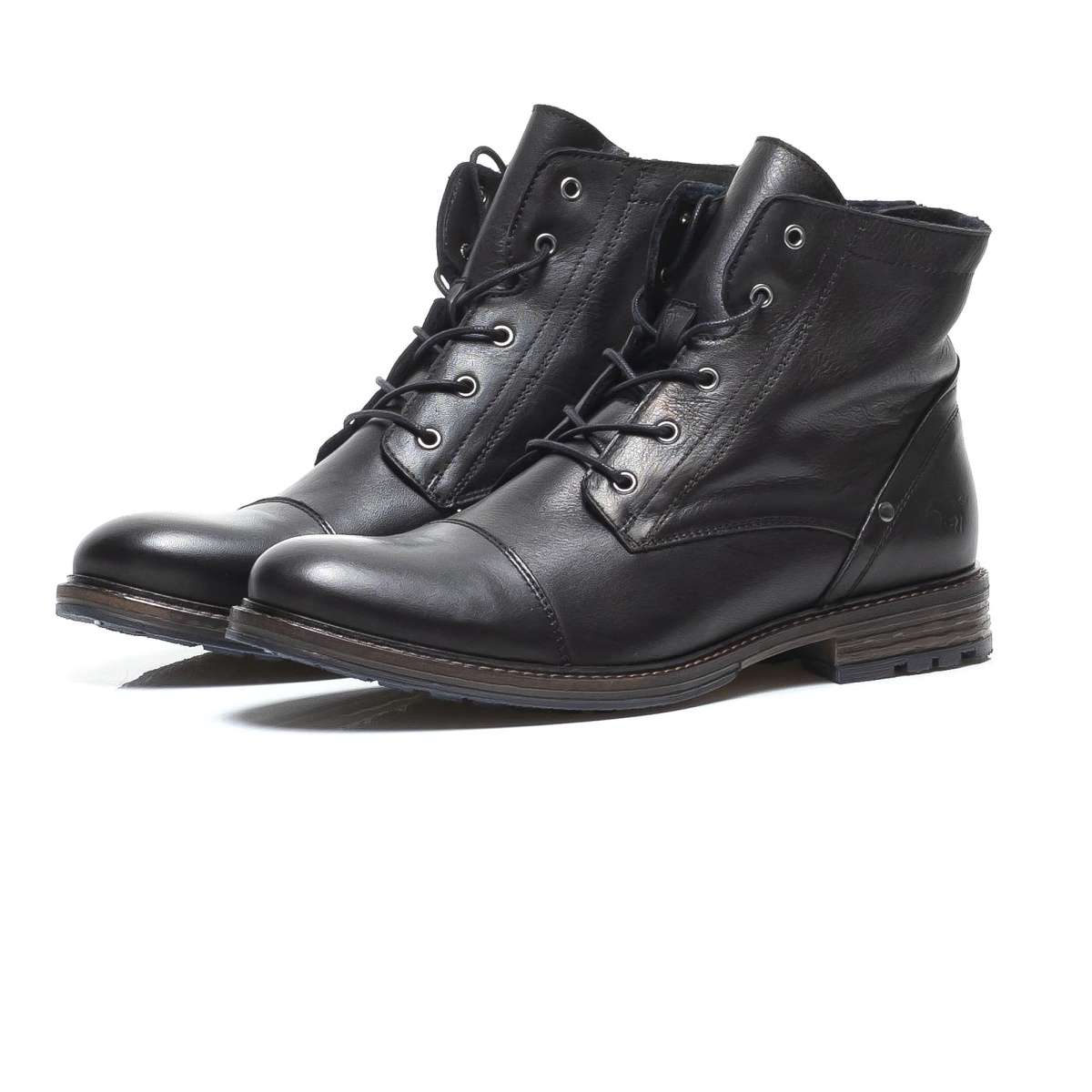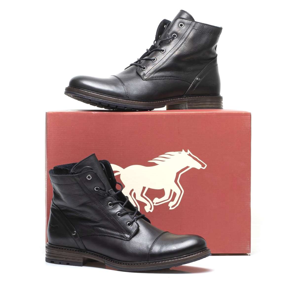 Kožené kotníky v černé barvě pro všechny příležitosti, značky MUSTANG.