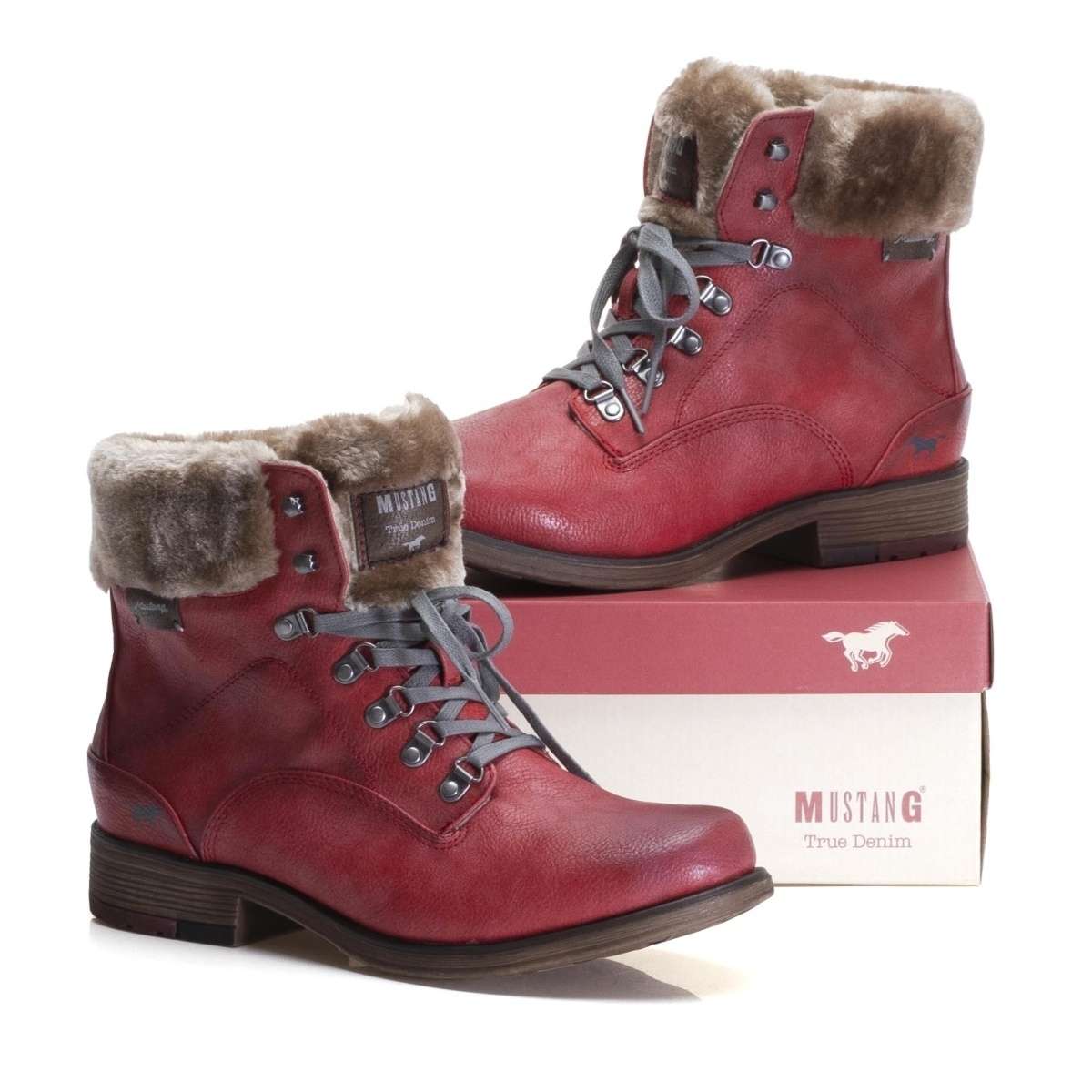 Dámské kotníky značky Mustang jsou zdobené kožíškem kolem horního okraje a prošíváním v barvě obuvi. Šněrováním si upravíte obuv dle svých požadavků. S tímto modelem můžete vyjít jak na pochůzky po městě, na procházky přírodou, tak do práce a vždy se budete cítit velmi pohodlně a elegantně.