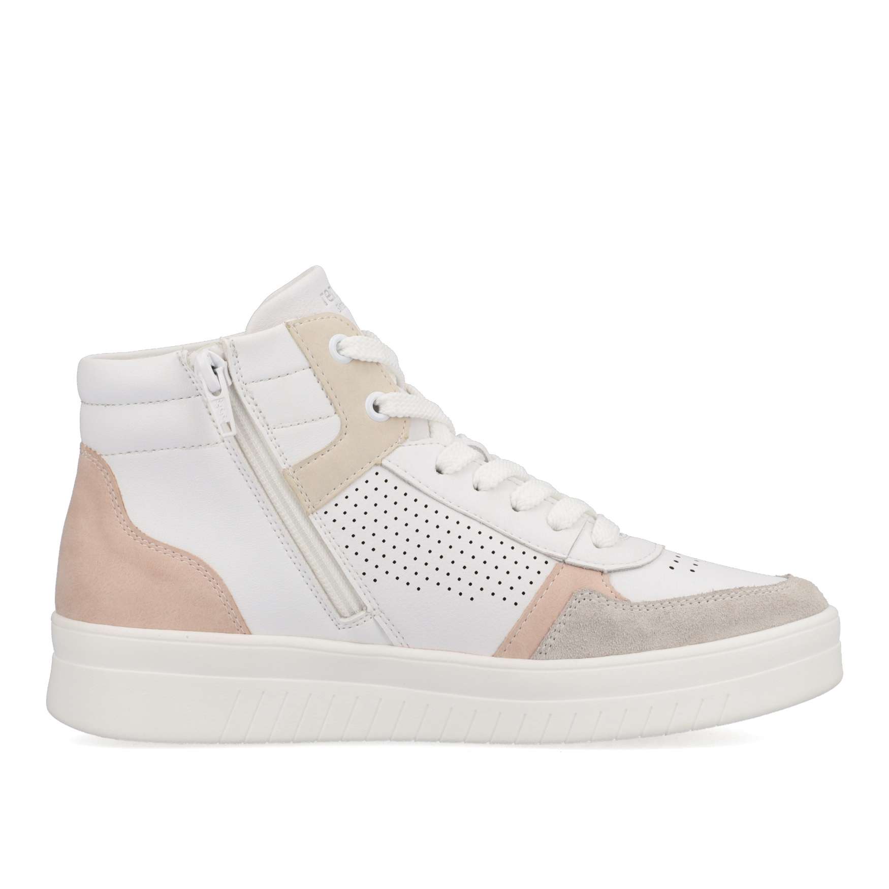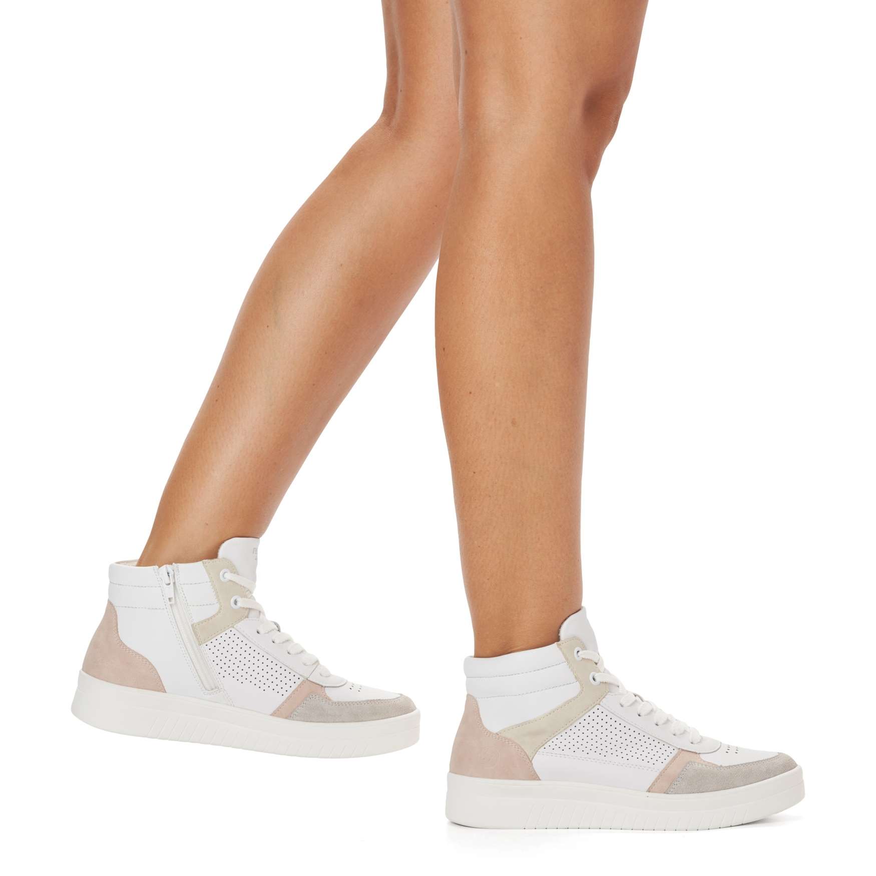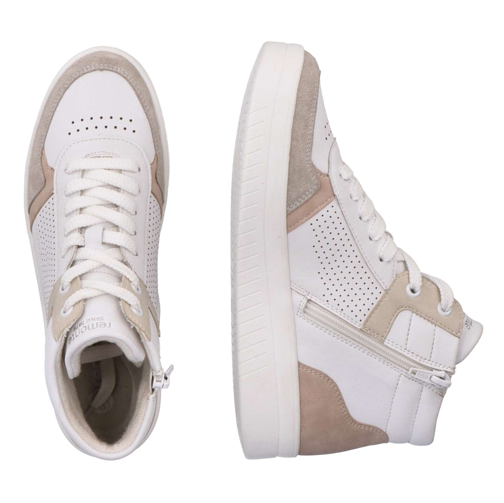 Obuv REMONTE je vyšší řadou značky RIEKER, obuv se vyznačuje kvalitou použitých materiálů. Dámské kotníkové tenisky mají svršek kombinovaný jak barevně, tak materiálově, designová perforace už jen doladí vzhled k dokonalosti. Šněrování šňůrkami a funkční zip na vnitřní straně obuvi zajistí pohodlné obutí. Vyjímatelná stélka z paměťové pěny a kvalitní podešev jsou zárukou maximálního komfortu na každém kroku. Tento nenápadný model skvěle doplní každý Váš outfit do města i na posezení s přáteli.