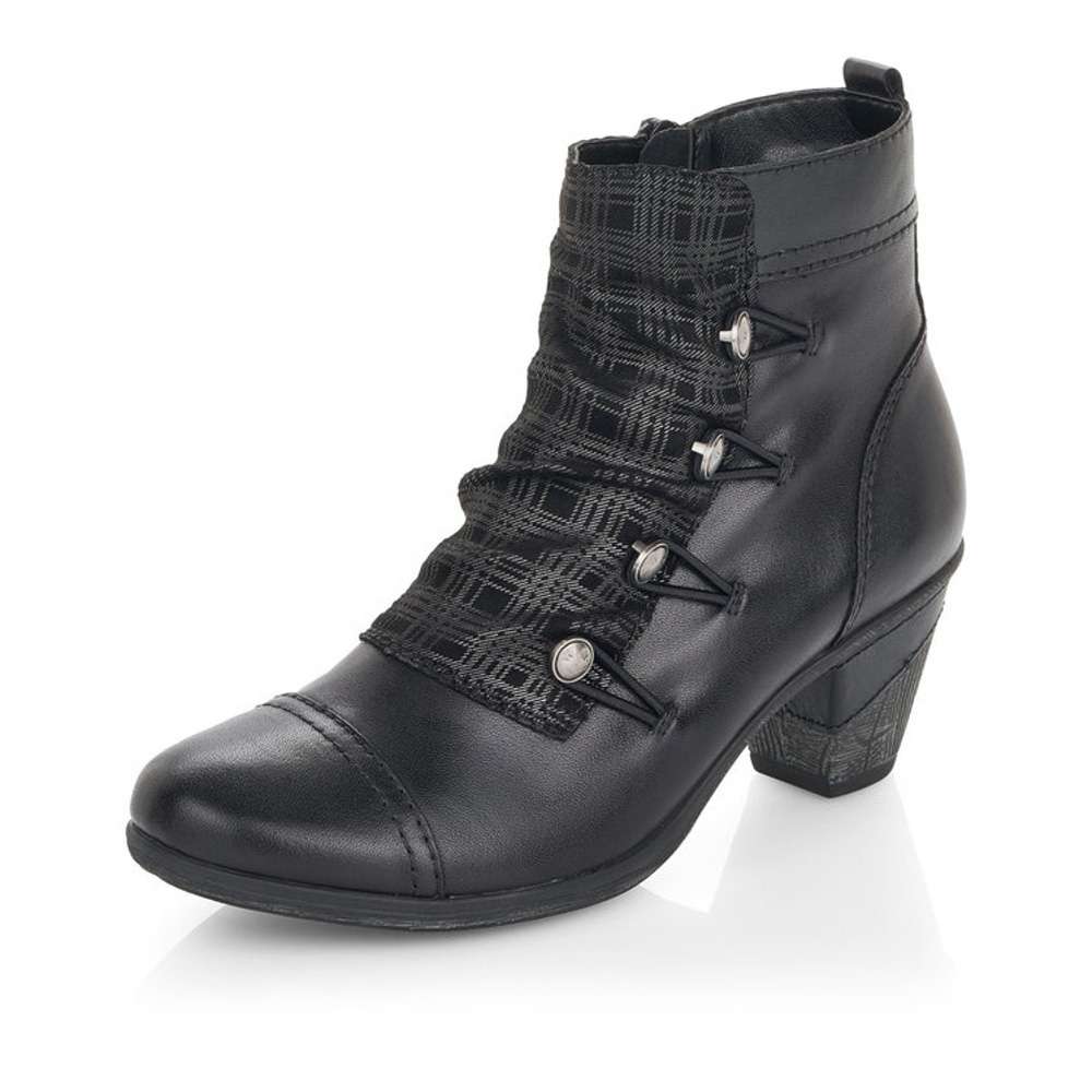 Obuv REMONTE je vyšší řadou značky RIEKER, obuv se vyznačuje kvalitou použitých materiálů, komfortnější šířkou a nadměrnými velikostmi. Dámská kotníková obuv extravagantního vzhledu díky unikátním designovým prvkům na svršku. Z vnitřní strany je funkční zip pro snadné prozutí. Boty z řady Remonte Vám zajistí maximální komfort při celodenním nošení.