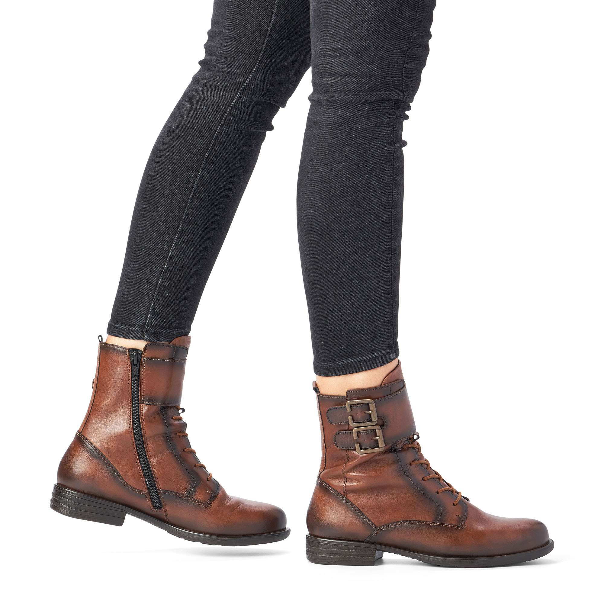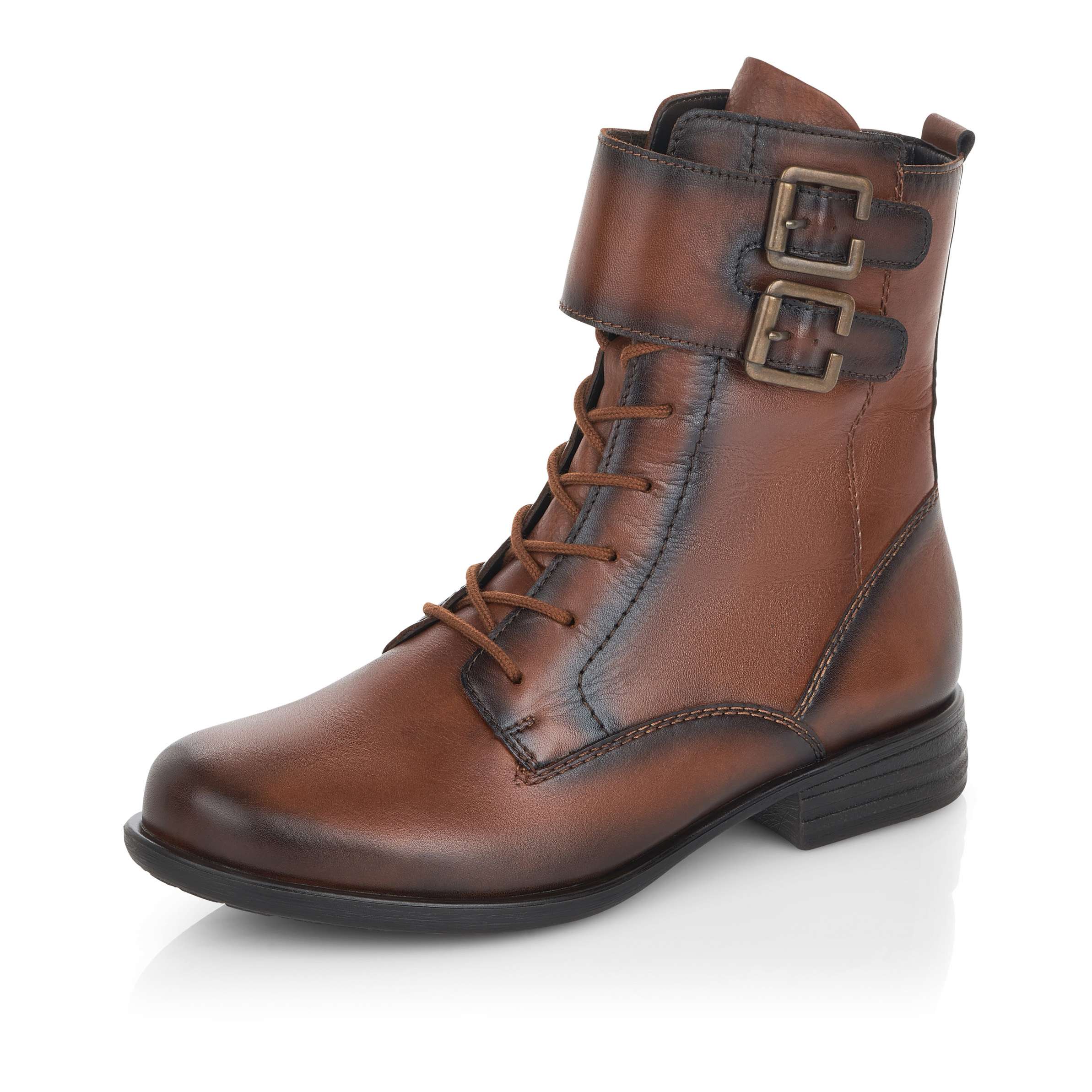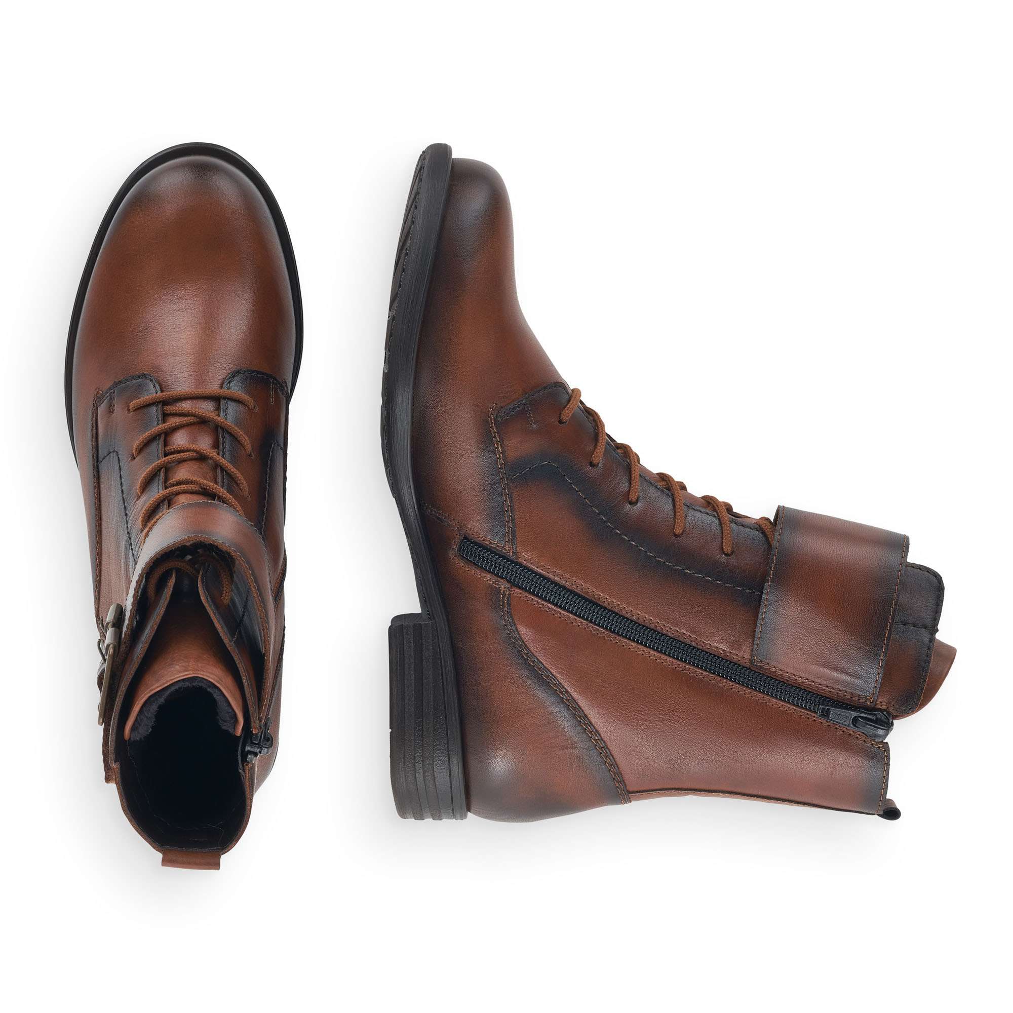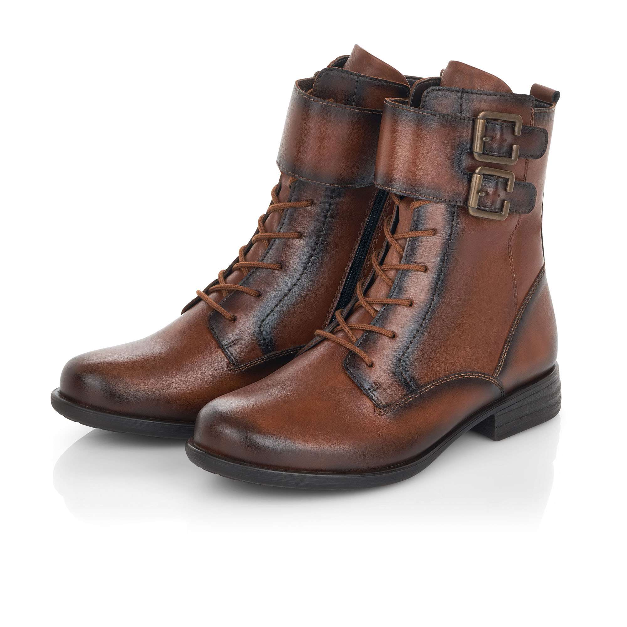 Dámská kotníková obuv hnědé barvy z pravé kůže, značky REMONTE (jedná se o vyšší řadu značky RIEKER).