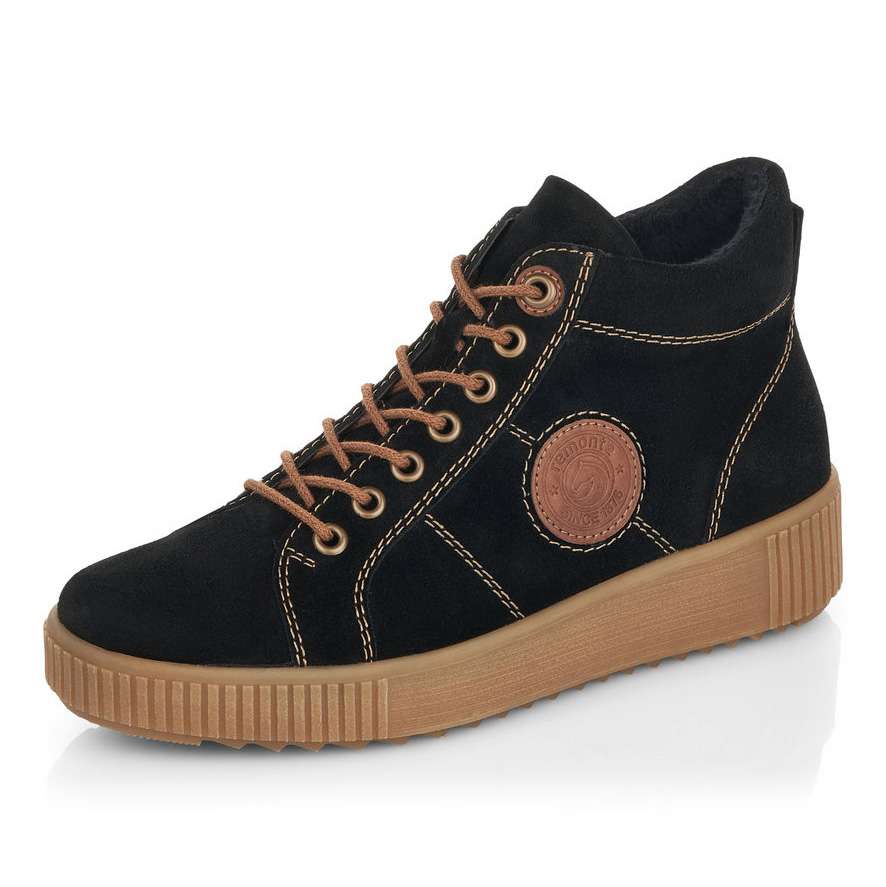 Dámské kožené kotníkové boty s kontrastním prošíváním, značky REMONTE (jedná se o vyšší řadu značky RIEKER).