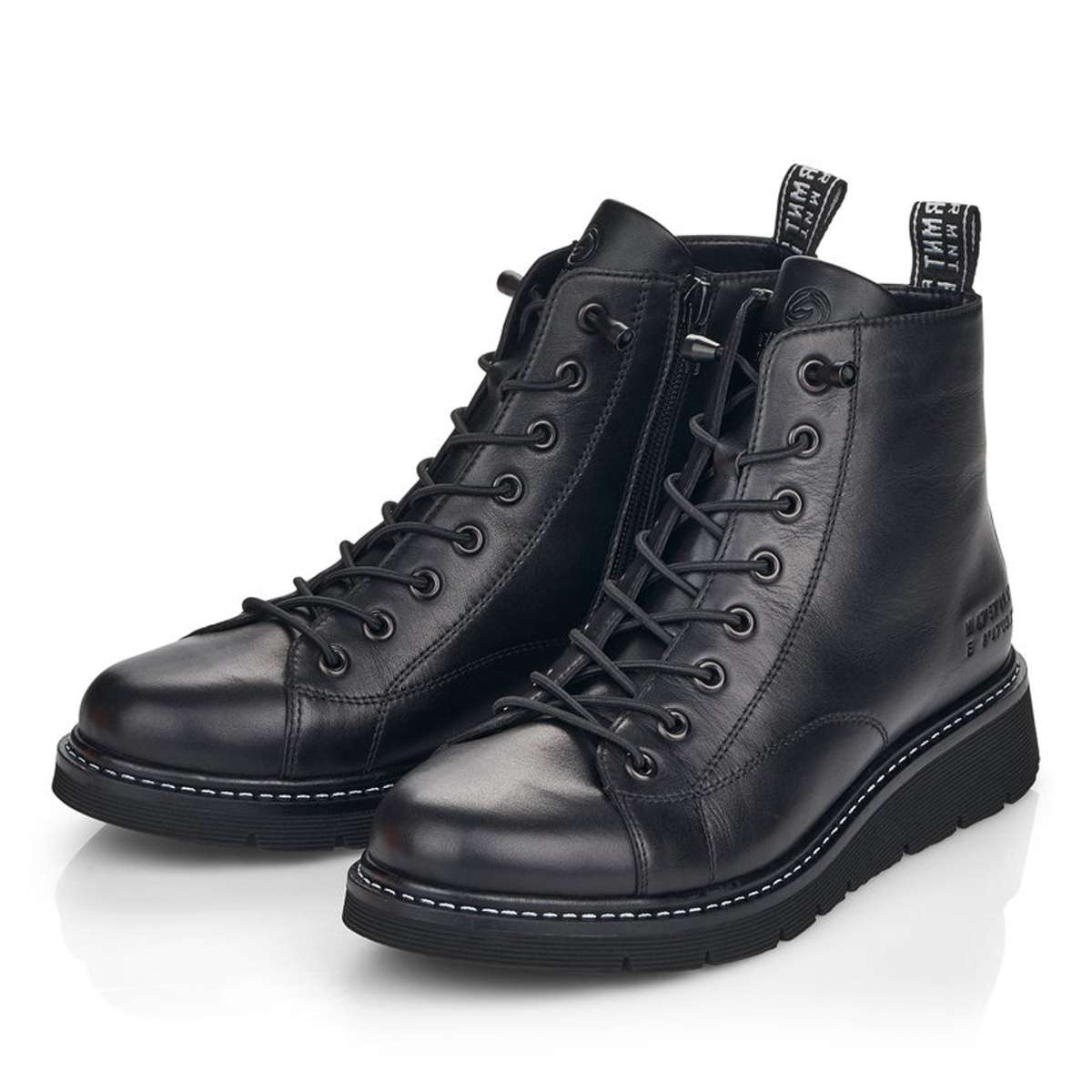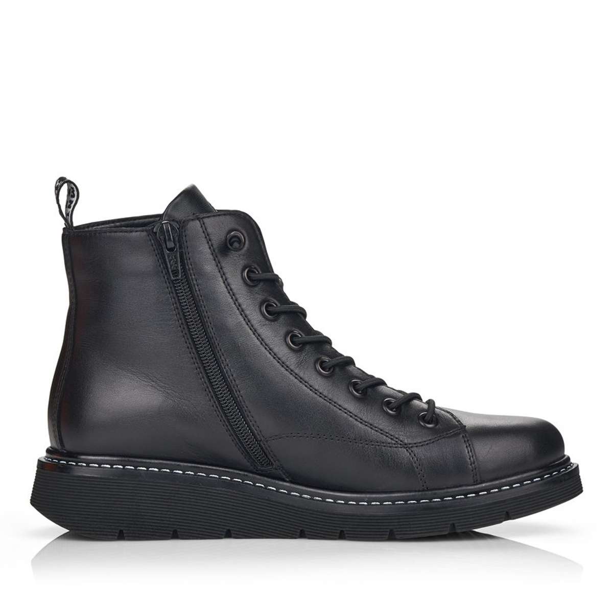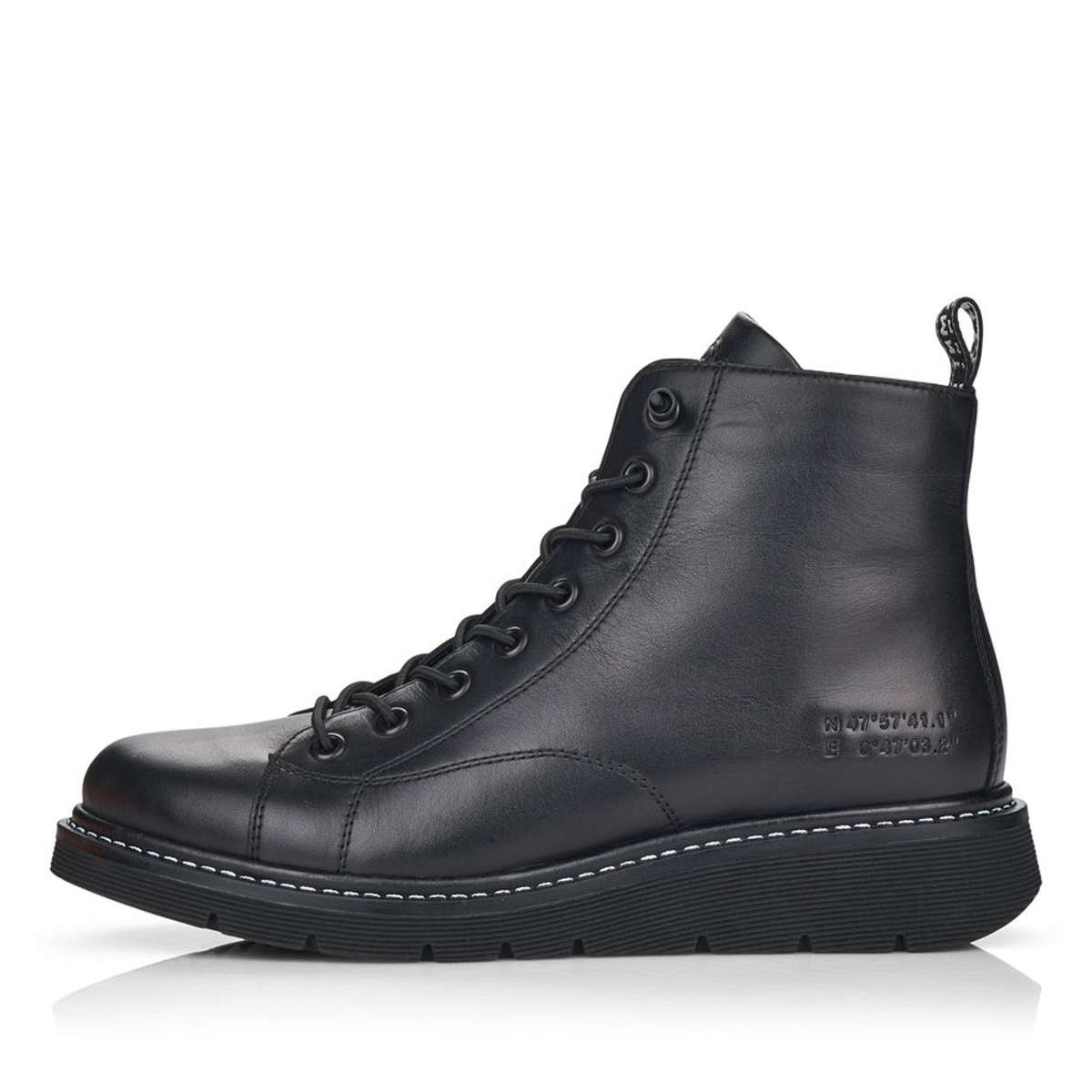 Tato kotníková obuv černé barvy od značky Remonte je vyrobena z kvalitní pravé kůže, což Vás určitě potěší. Má hladký povrch a ozdobný prošívaný lem podešve, který dodává botám dokonalost. Obouvání usnadní jak funkční zip a poutko u horního okraje, tak i tkaničky na šněrování nebo tkaničky pružné, obojí jsou součástí obuvi. Na zimní procházku lesem nebo městem jsou jako stvořené. Měkká vyjímatelná stélka Vám zajistí příjemný pocit i při dlouhodobé chůzi. Pohodlná podšívka z jehněčí vlny zaručí teplo a perfektně zahřeje. Pevná podešev se vzorem pro pevný a jistější krok. Skvěle se budou hodit do Vašeho šatníku.
