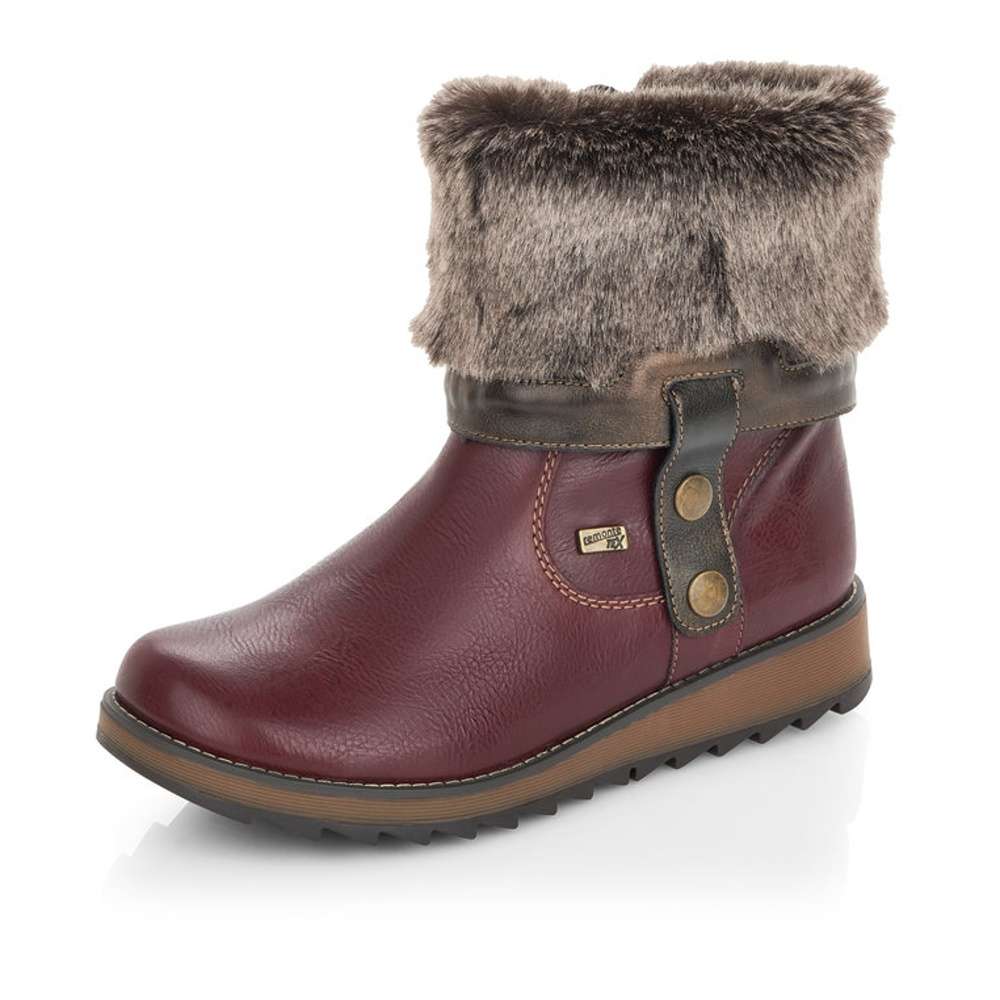 Jemně strukturovaný svršek je zdobný kontrastním prošíváním, bronzovým lemováním okraje obuvi a jemným kožíškem. Technologie Remonte TEX zajistí nepromokavost, ale přesto prodyšnost obuvi. Obuv si snadno nazujete díky funkčnímu zipu a můžete si ji pohodlně vyhrnout a udělat tak z obuvi hřejivé polokozačky.