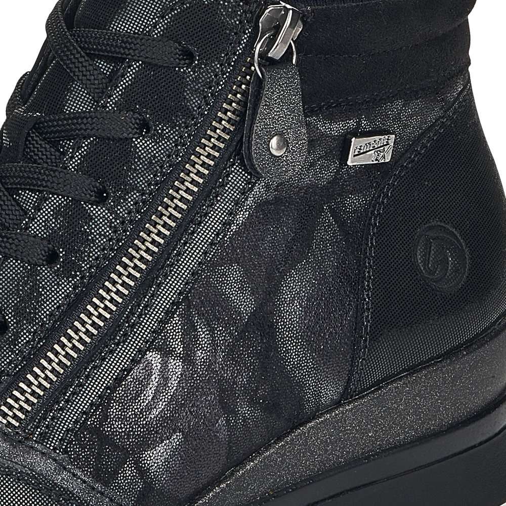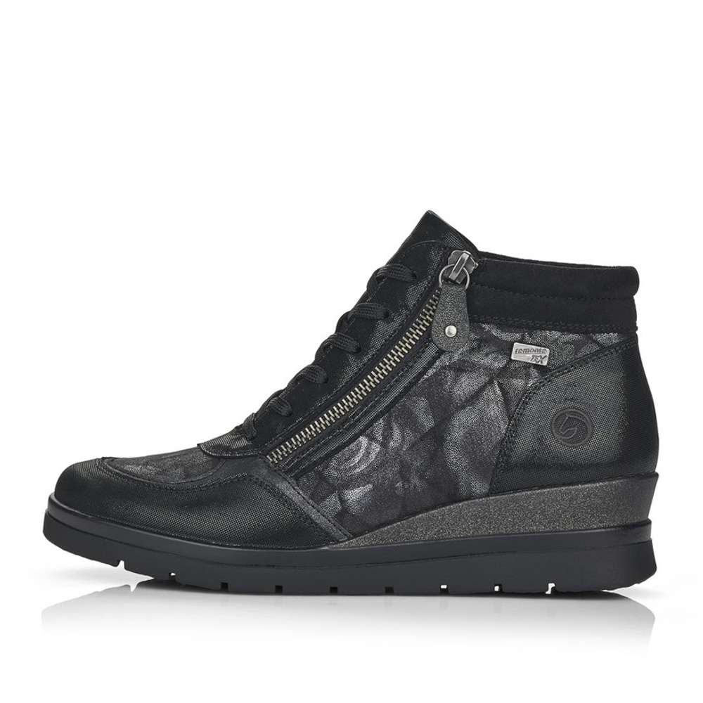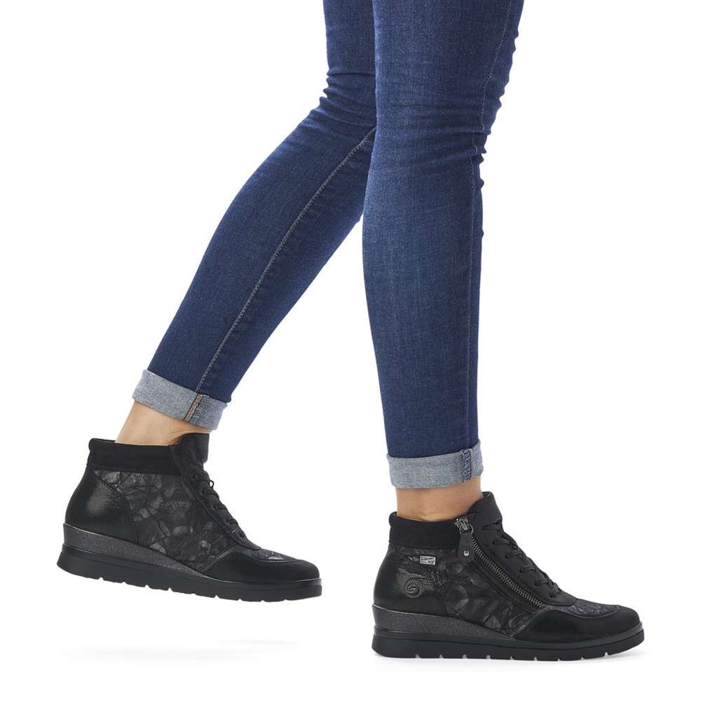 Obuv REMONTE je vyšší řadou značky RIEKER, obuv se vyznačuje kvalitou použitých materiálů, komfortnější šířkou a nadměrnými velikostmi. Tato dámská kotníková obuv je originální a velmi pohodlná pro každou cestu. Hitem