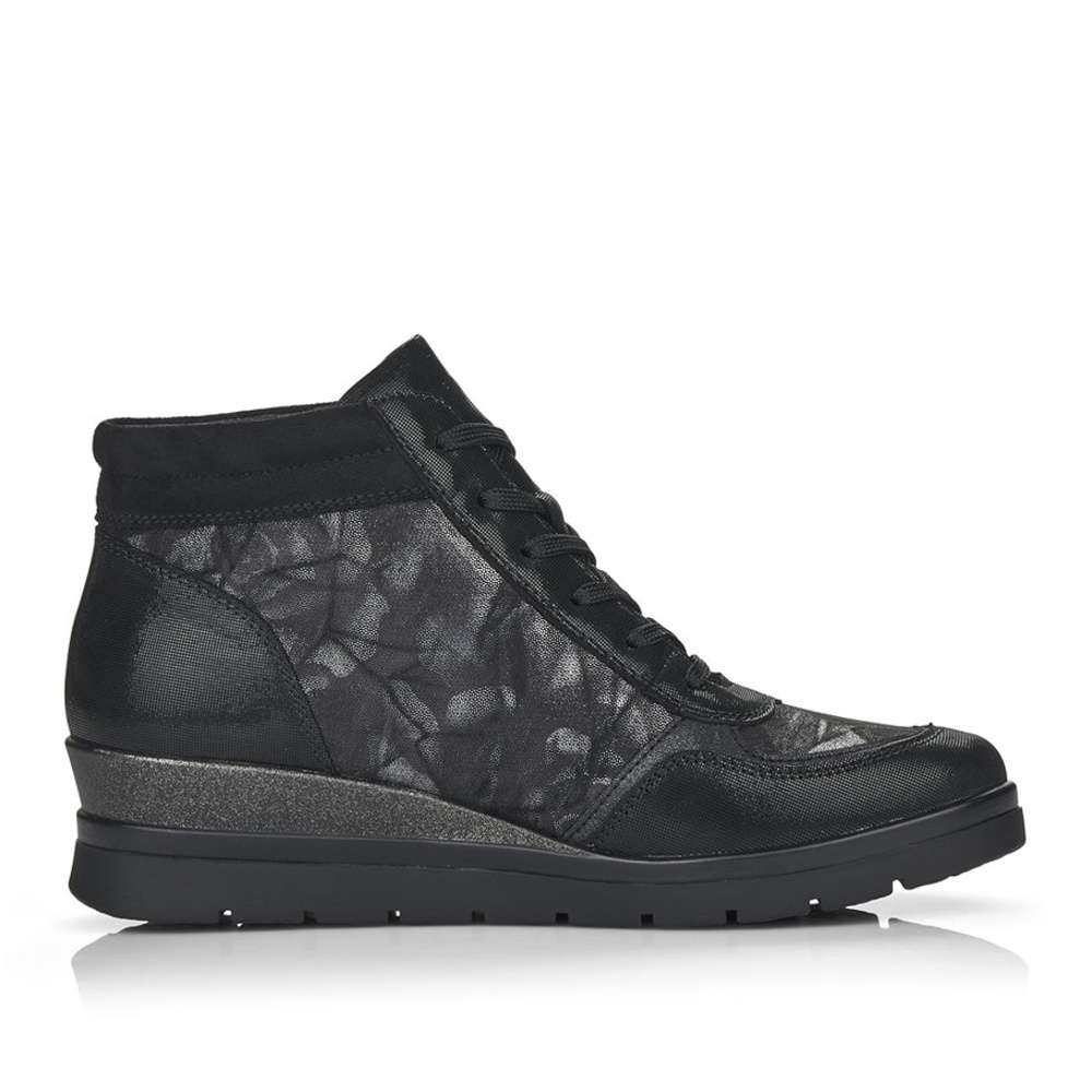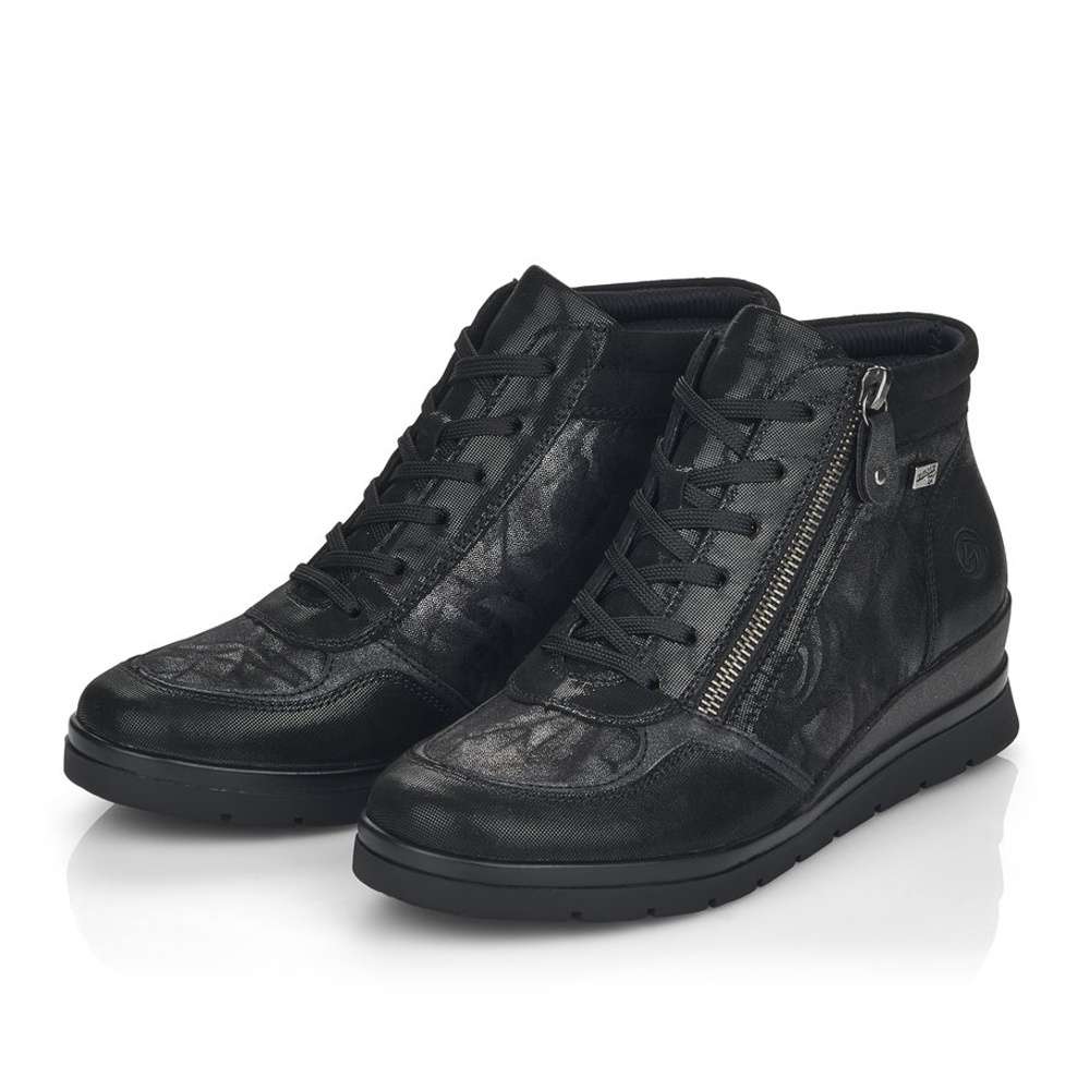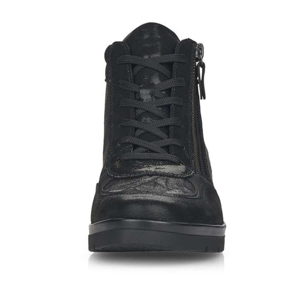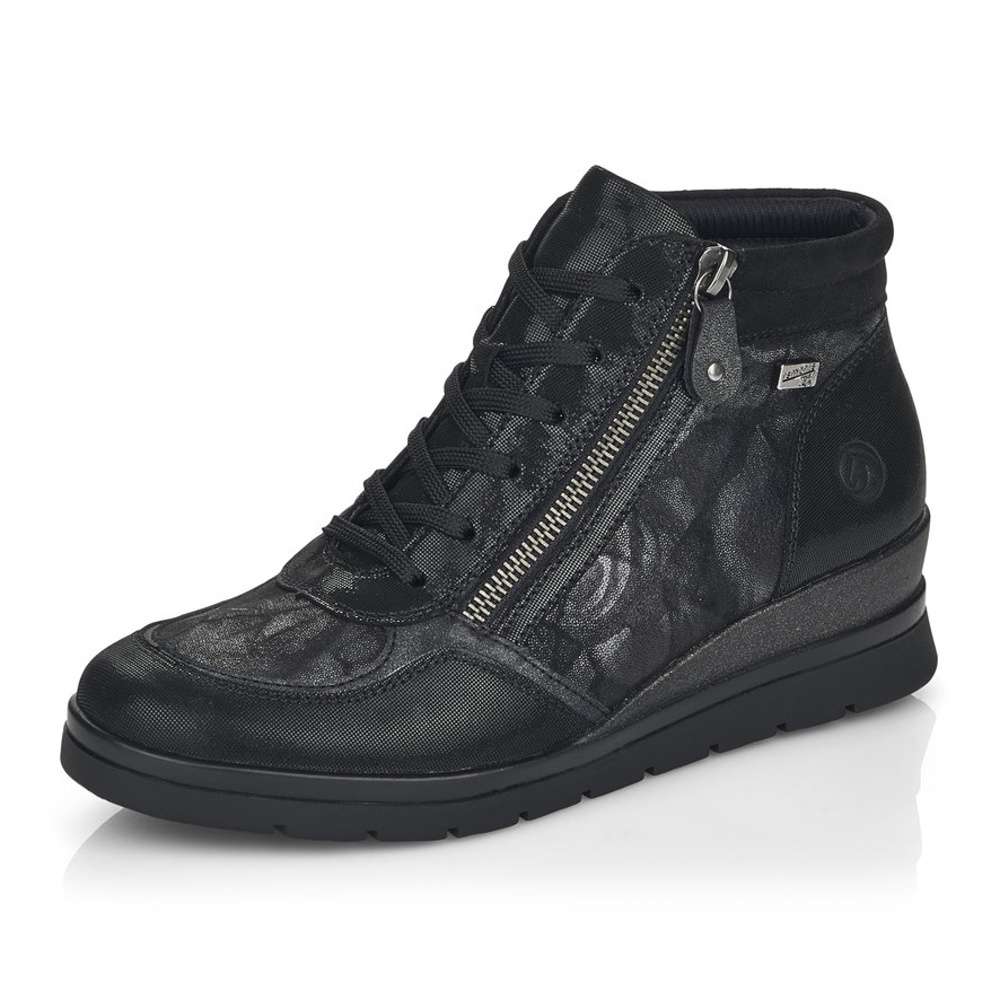 Obuv REMONTE je vyšší řadou značky RIEKER, obuv se vyznačuje kvalitou použitých materiálů, komfortnější šířkou a nadměrnými velikostmi. Tato dámská kotníková obuv je originální a velmi pohodlná pro každou cestu. Hitem