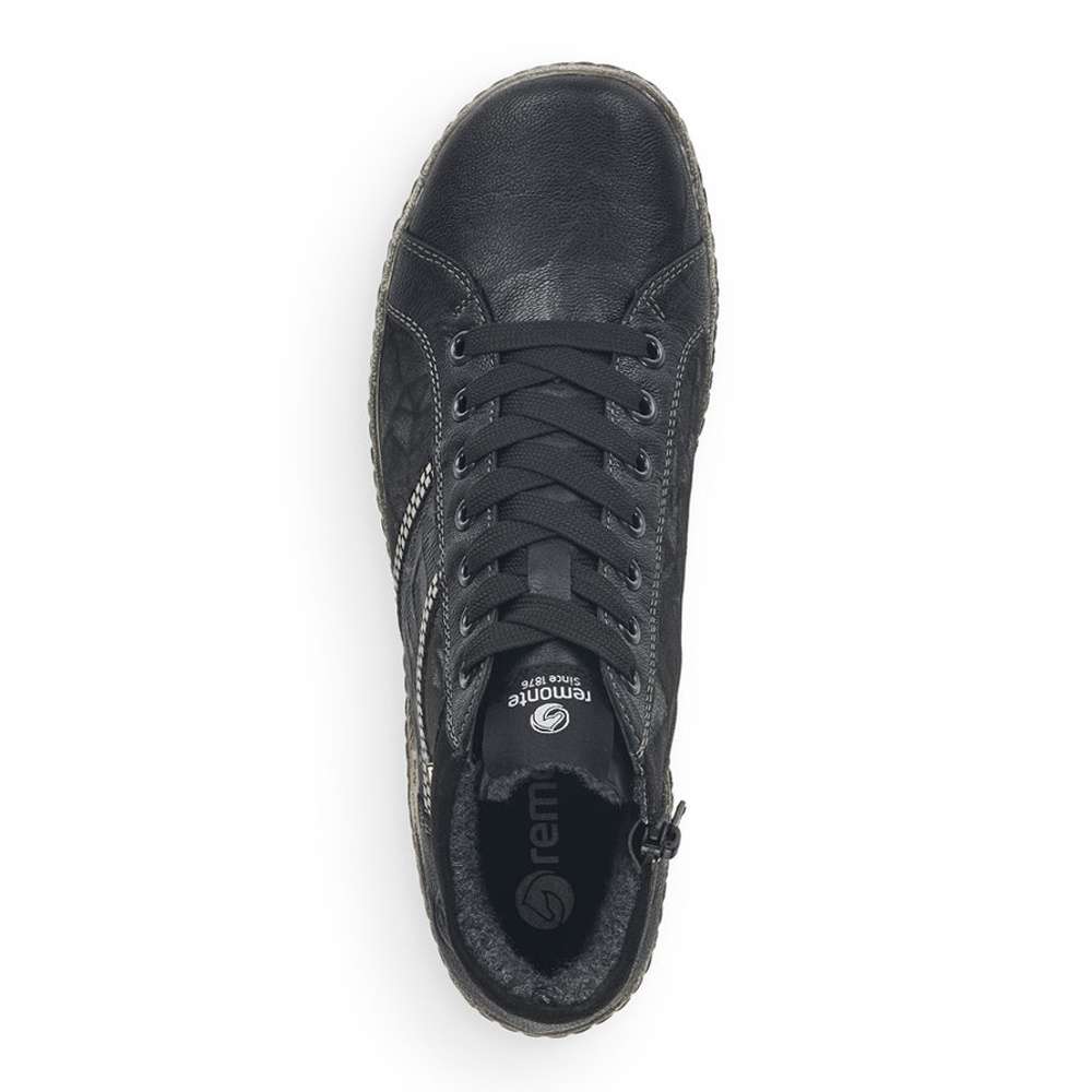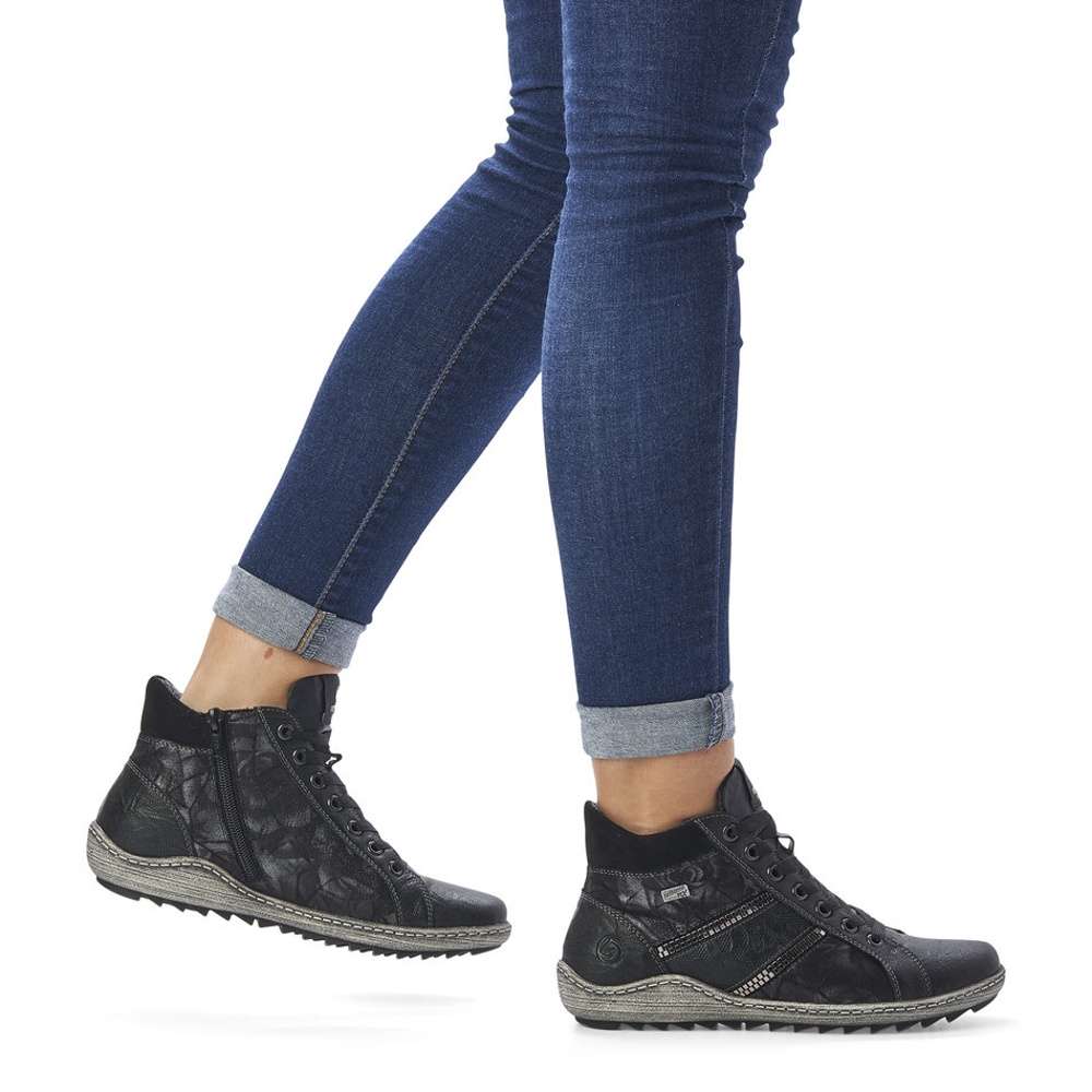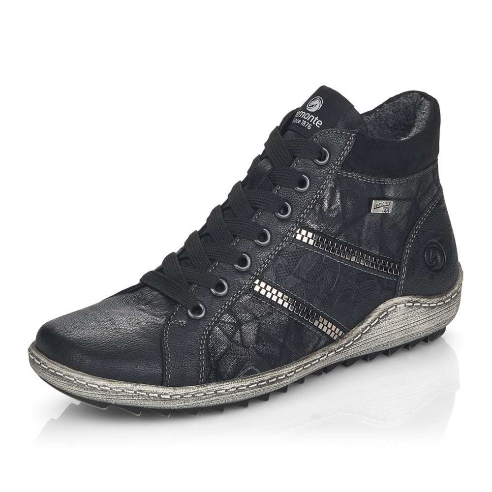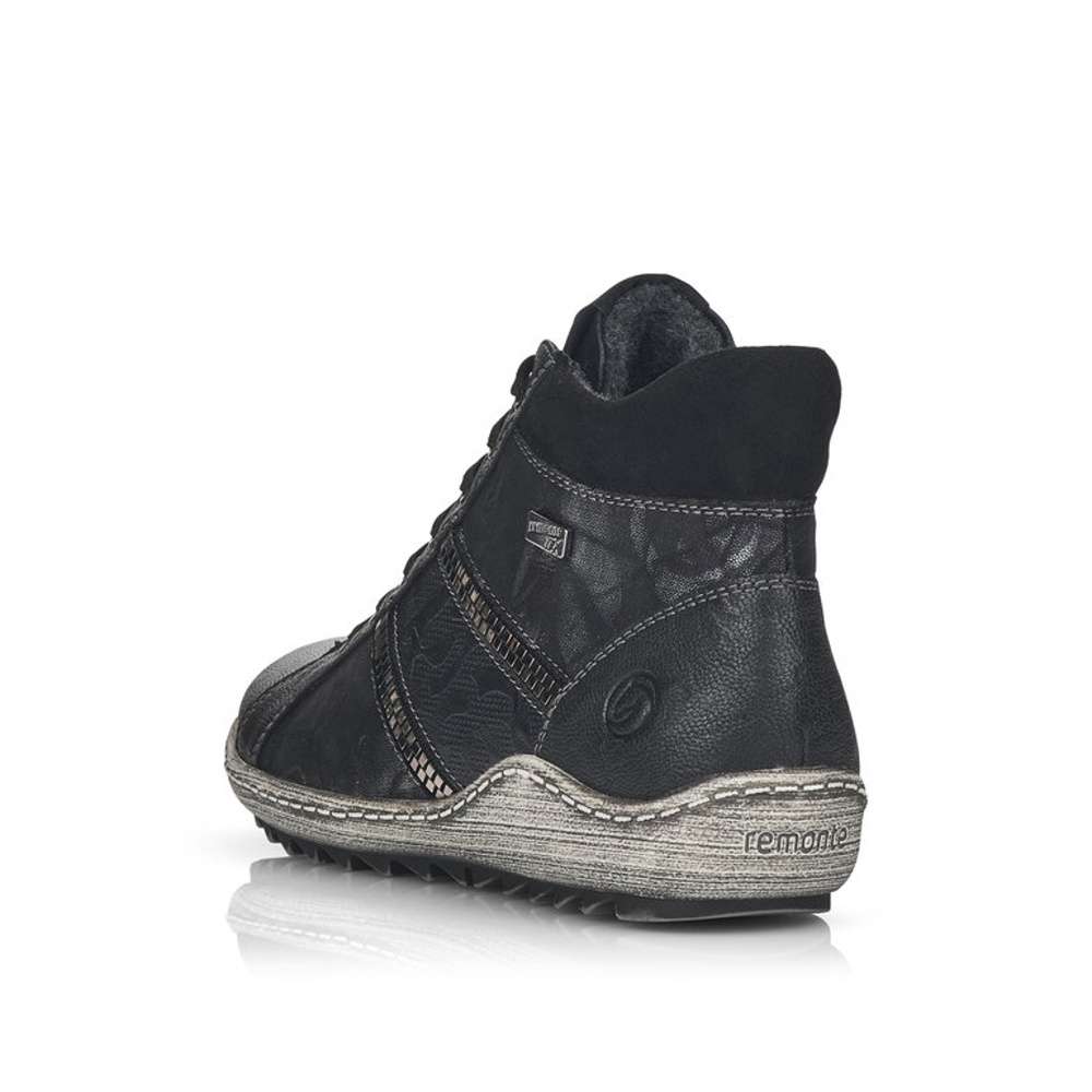 Svršek obuvi je poskládán z několika částí různého designu, které spolu dokonale ladí. Funkční vrstva Remonte TEX se postará o nepromokavost obuvi a snadné nazutí zajistí funkční zip společně se šněrováním.