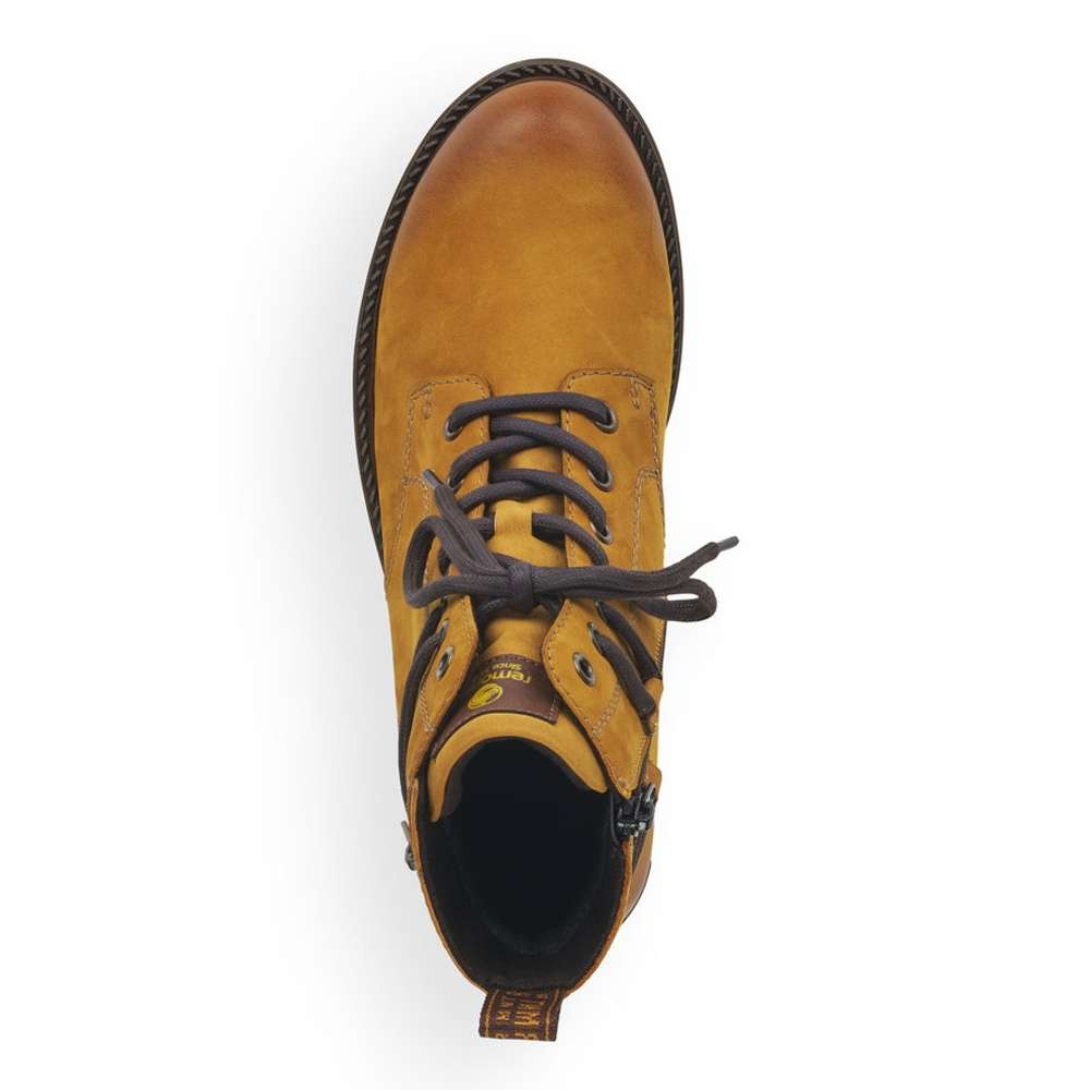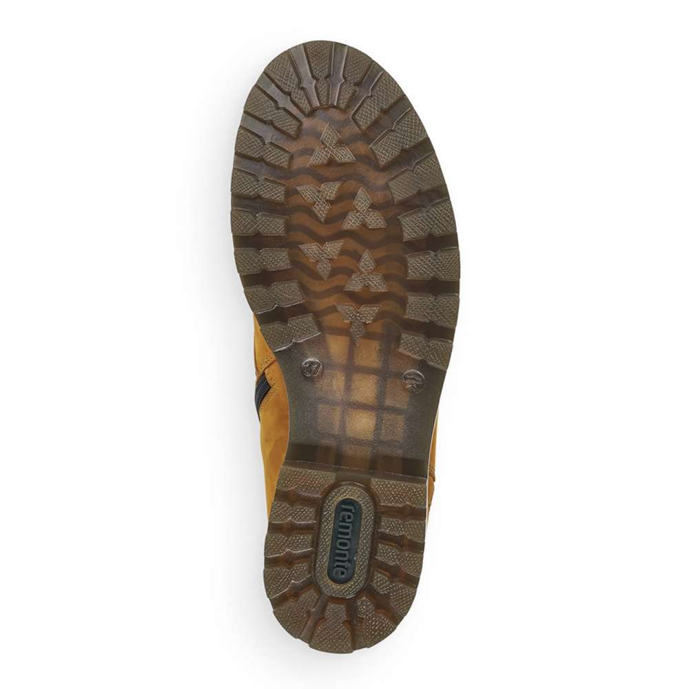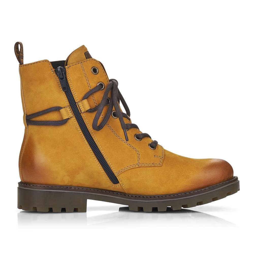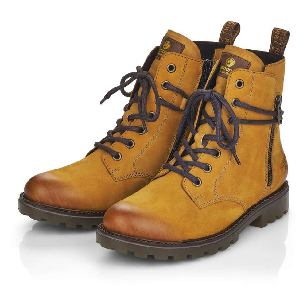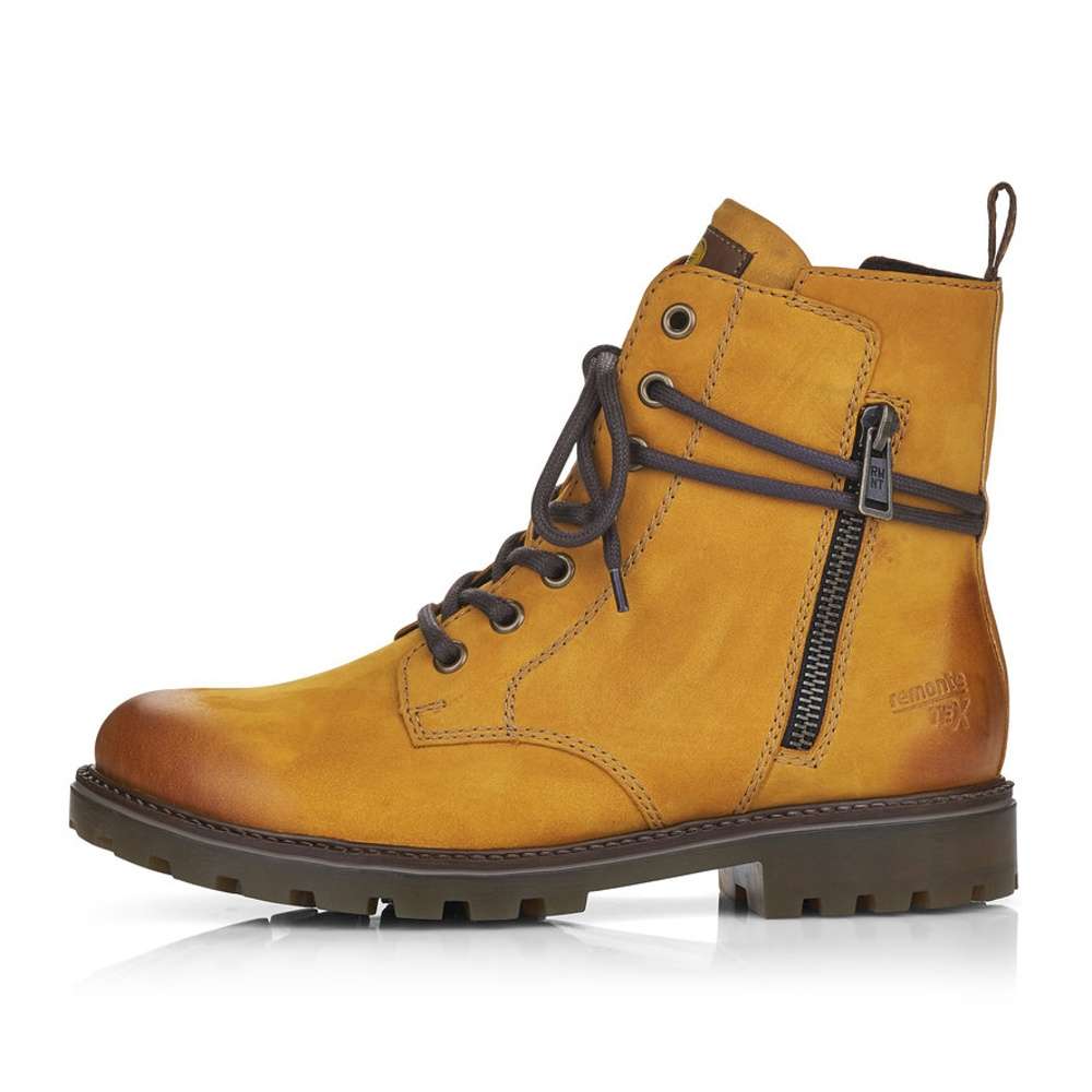 Jemně semišový kožený svršek je doplněn prošíváním, tkaničkou kolem kotníku a zdobným zipem na vnější straně. Funkční vrstva Remonte TEX zajistí nepromokavost obuvi a snadné nazouvání Vám poskytne zip na vnitřní straně.
