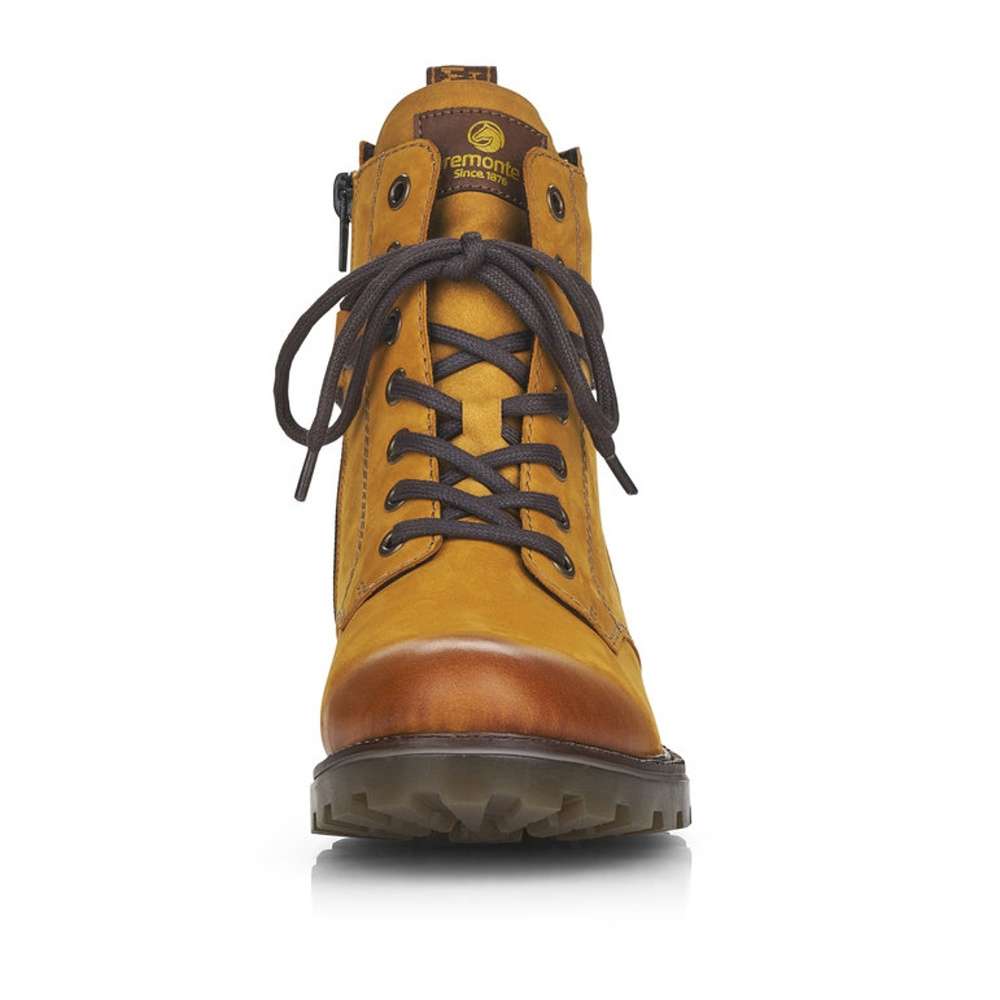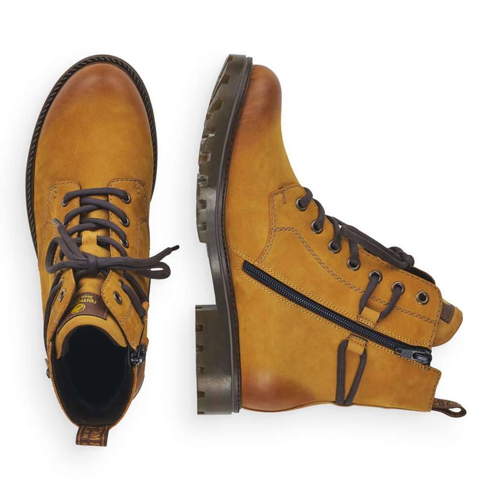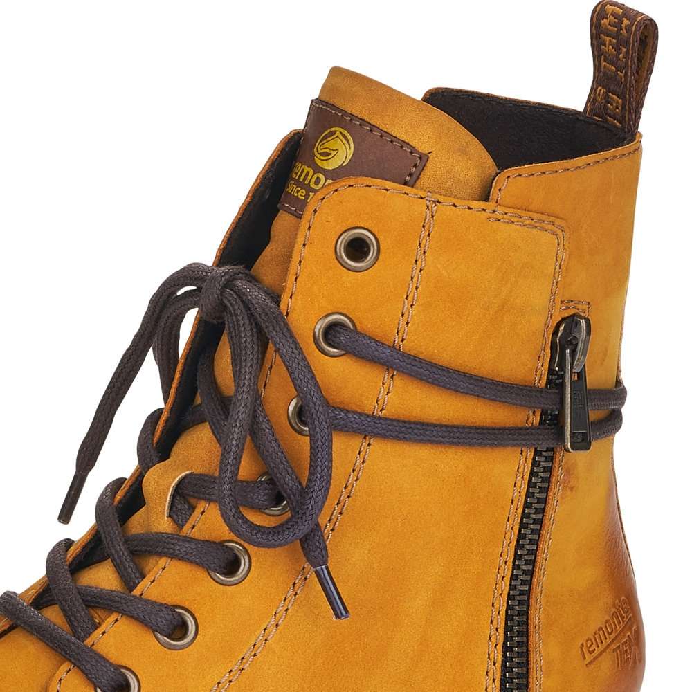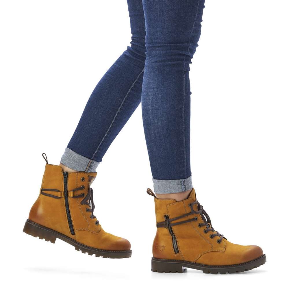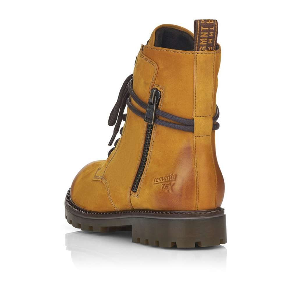 Jemně semišový kožený svršek je doplněn prošíváním, tkaničkou kolem kotníku a zdobným zipem na vnější straně. Funkční vrstva Remonte TEX zajistí nepromokavost obuvi a snadné nazouvání Vám poskytne zip na vnitřní straně.