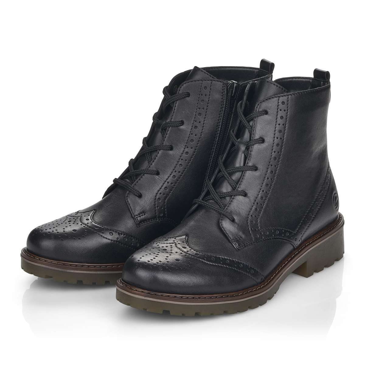 Obuv REMONTE – jedná se o vyšší řadu značky RIEKER, tato obuv se vyznačuje vynikající kombinací svrchních materiálů. Tento úžasný kotník je šitý z pravé kůže a zdobený je jemnou povrchovou perforací, která neprochází skrz celou tloušťku materiálu. Šněrováním si pak obuv přizpůsobíte přímo k Vaší noze.