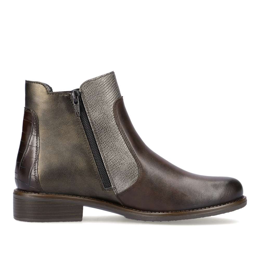 Detailní informace Obuv REMONTE je vyšší řadou značky RIEKER, obuv se vyznačuje kvalitou použitých materiálů. Na svršku je hadí vzor, který dodává styl a je velmi nadčasový. Pro snadné obutí slouží zip na vnitřní straně. Vyjímatelná stélka je vyrobena z paměťové pěny, a tak se nemusíte bát o svoje pohodlí. Teplá podšívka s Vámi bude na každém kroku. Tento model nesmí chybět ve Vašem botníku.
