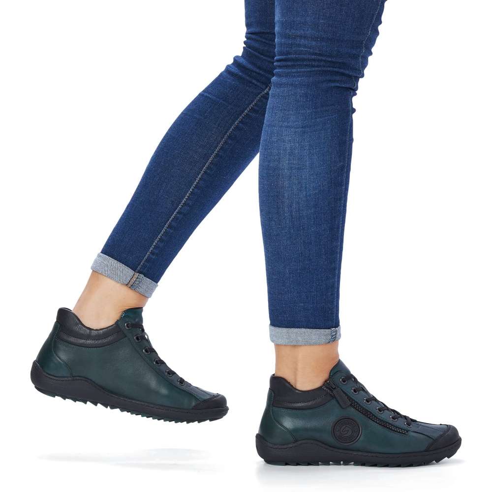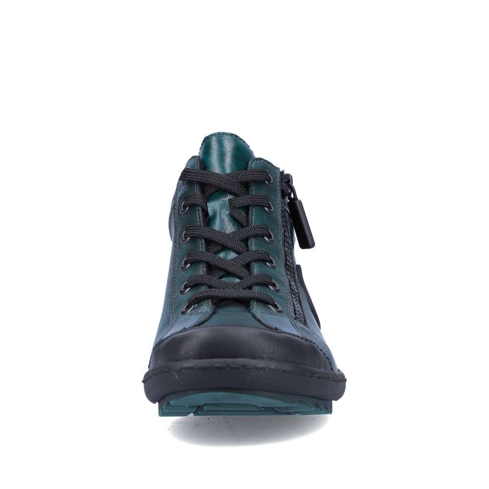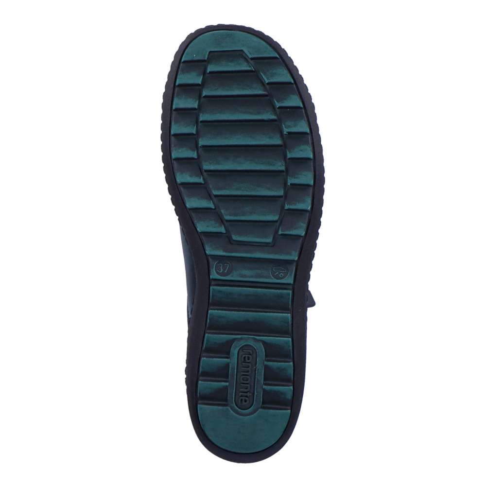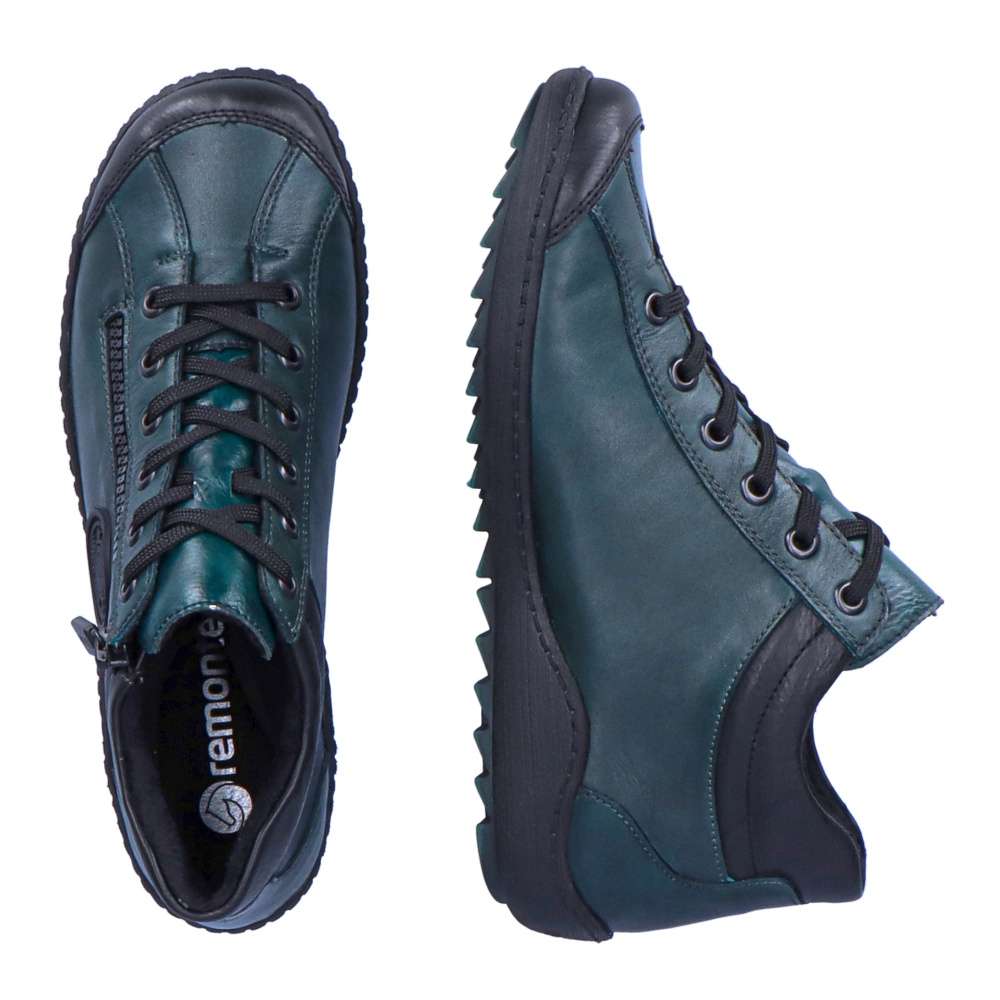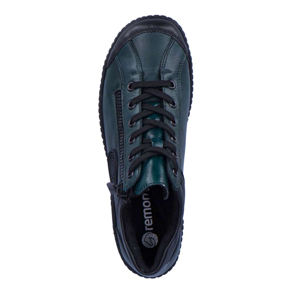 Obuv REMONTE – jedná se o vyšší řadu značky RIEKER, tato obuv se vyznačuje vynikající kombinací svrchních materiálů. Dámská kotníková obuv šitá z pravé kůže doplněná kvalitními syntetickými prvky má svršek poskládán v kombinaci zelenomodré a černé barvy. Nazutí Vám usnadní zip z vnější strany kotníku a šněrováním si boty přizpůsobíte na Vaši nohu. Podešev má hrubší vzorek díky kterému, bude Váš krok jistý na každém povrchu. Boty z řady Remonte Vám zajistí maximální komfort, pohodlí při celodenním nošení a tento model je vhodný snad ke všem pracovním i běžným outfitům.