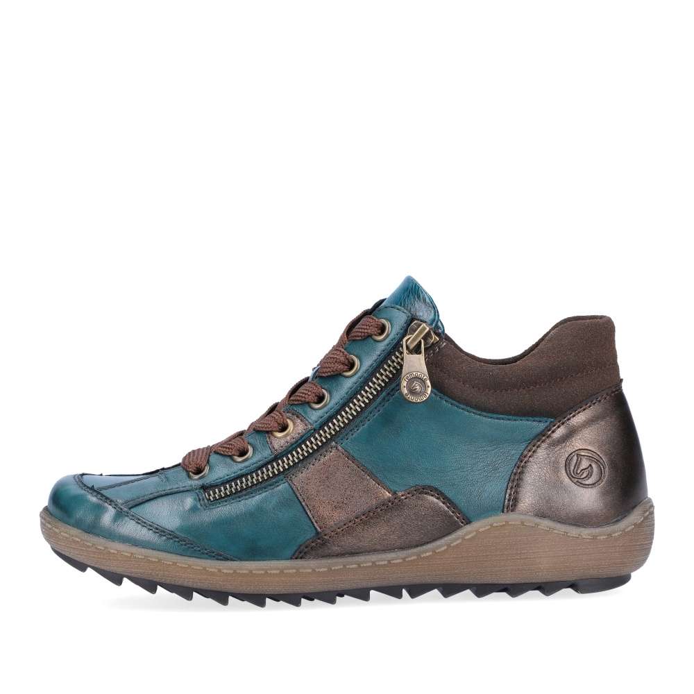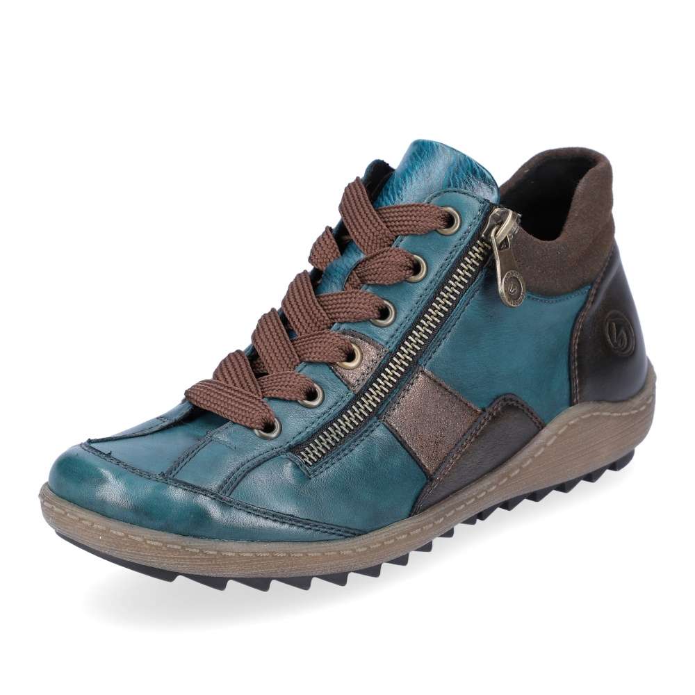 Detailní informace Obuv REMONTE – jedná se o vyšší řadu značky RIEKER, tato obuv se vyznačuje vynikající kombinací svrchních materiálů. Neobvyklý vzhled této obuvi skvěle doplní Vaše outfity, jelikož svršek obuvi je poskládán z několika částí různého designu, které spolu dokonale ladí. Snadné nazutí zajistí funkční zip společně se šněrováním, kterým si obuv nastavíte dle svých požadavků. Pohodlí na každém kroku zajistí vyjímatelná paměťová stélka, hřejivá podšívka a podešev hrubšího vzorku, díky které bude Váš krok jistý na každém povrchu. Tento model oceníte v chladných zimních dnech, třeba na procházce městem.