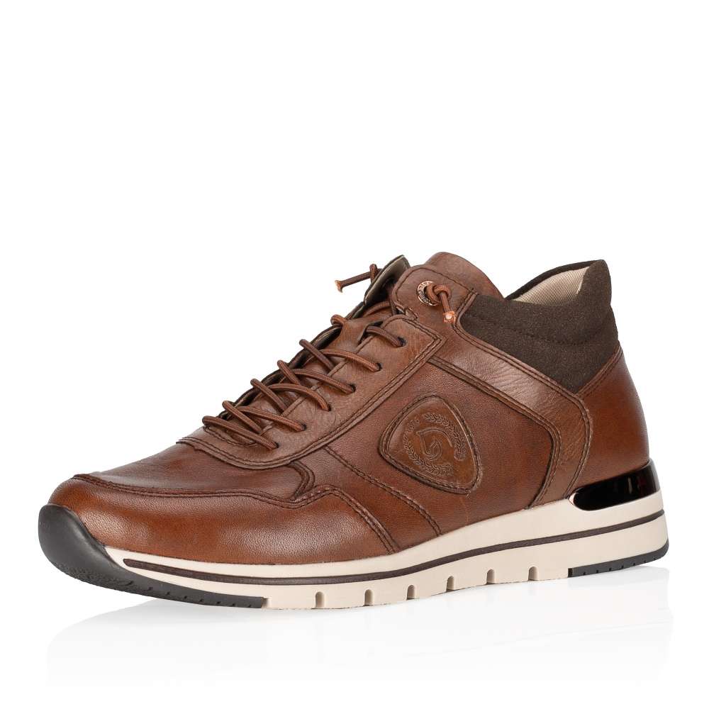 Obuv REMONTE – jedná se o vyšší řadu značky RIEKER, tato obuv se vyznačuje vynikající kombinací svrchních materiálů. Tento krásný sportovní kotník bude tou správnou volbou pro Vaše dny plné zimy. Hladký svršek je doplněný jemným šitím, nášivkou s vytlačeným logem značky a textilním lemem horního okraje obuvi. Šněrováním si obuv doladíte perfektně k noze a vyjímatelná stélka změkčí každý Váš došlap. Kvalitní syntetická podešev je ozdobena lesklým prvkem a kontrastním proužkem. Celkové propracování boty Vám dodá pocit lehkosti a budete se cítit skvěle na každém kroku. Technologie: Remonte Soft – unikátní stélka vyrobená z prodyšného materiálu, která svým tvarem a materiálem zajistí pocit pohodlí při celodenním nošení. Tato bota je vybavena vyjímatelnou stélkou.