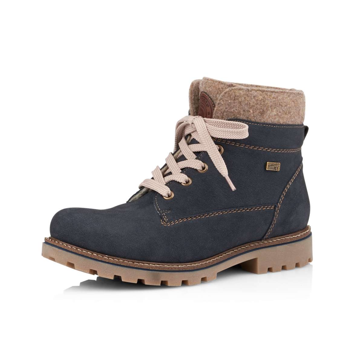 Dámská kotníková obuv z pravé broušené kůže v námořnické modré se zateplením z pravé ovčí vlny, značky REMONTE (jedná se o vyšší řadu značky RIEKER).