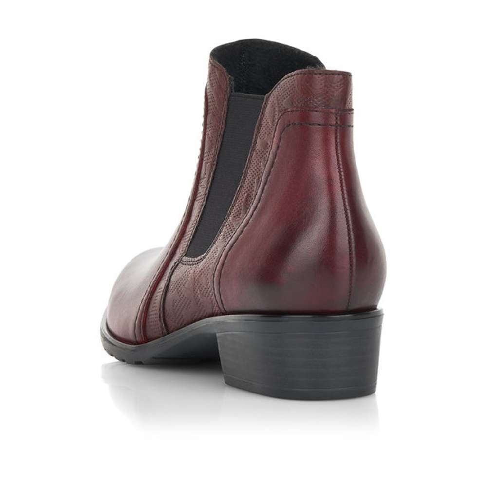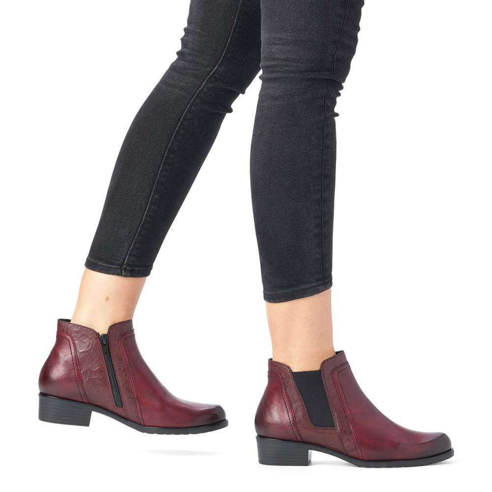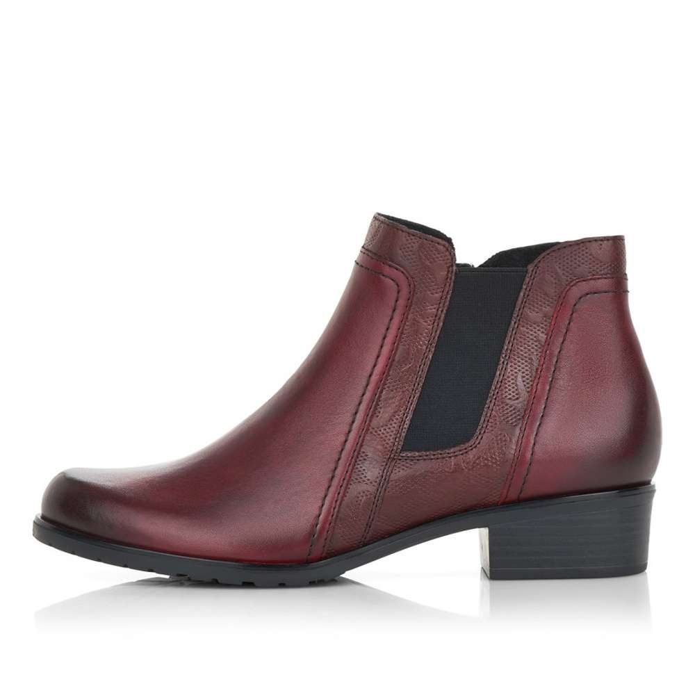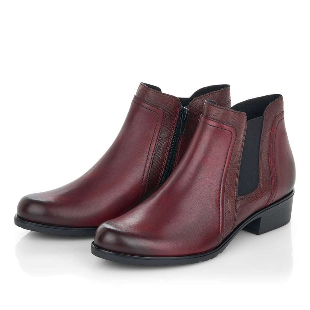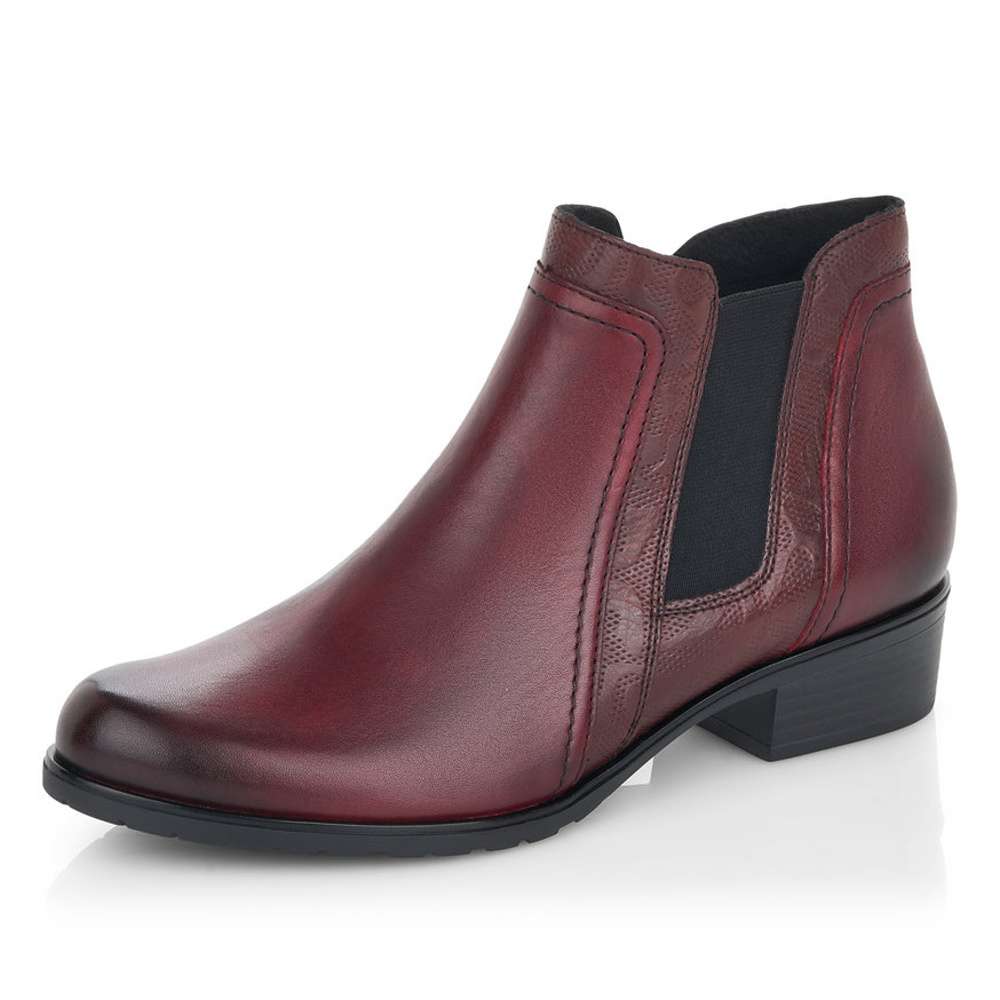 Obuv REMONTE – jedná se o vyšší řadu značky RIEKER, tato obuv se vyznačuje vynikající kombinací svrchních materiálů. Nádherný dámský kotník šitý z pravé kůže nepřehlédnutelné červené barvy doplní každý Váš outfit. Lehké zdobení v podobě designového vzoru kolem horního okraje i po stranách a nízký podpatek podtrhují ladnost této boty. Vsazená pružná gumička pomůže přizpůsobit se přímo k Vaší noze. Boty z řady Remonte Vám zajistí maximální komfort při celodenním nošení.