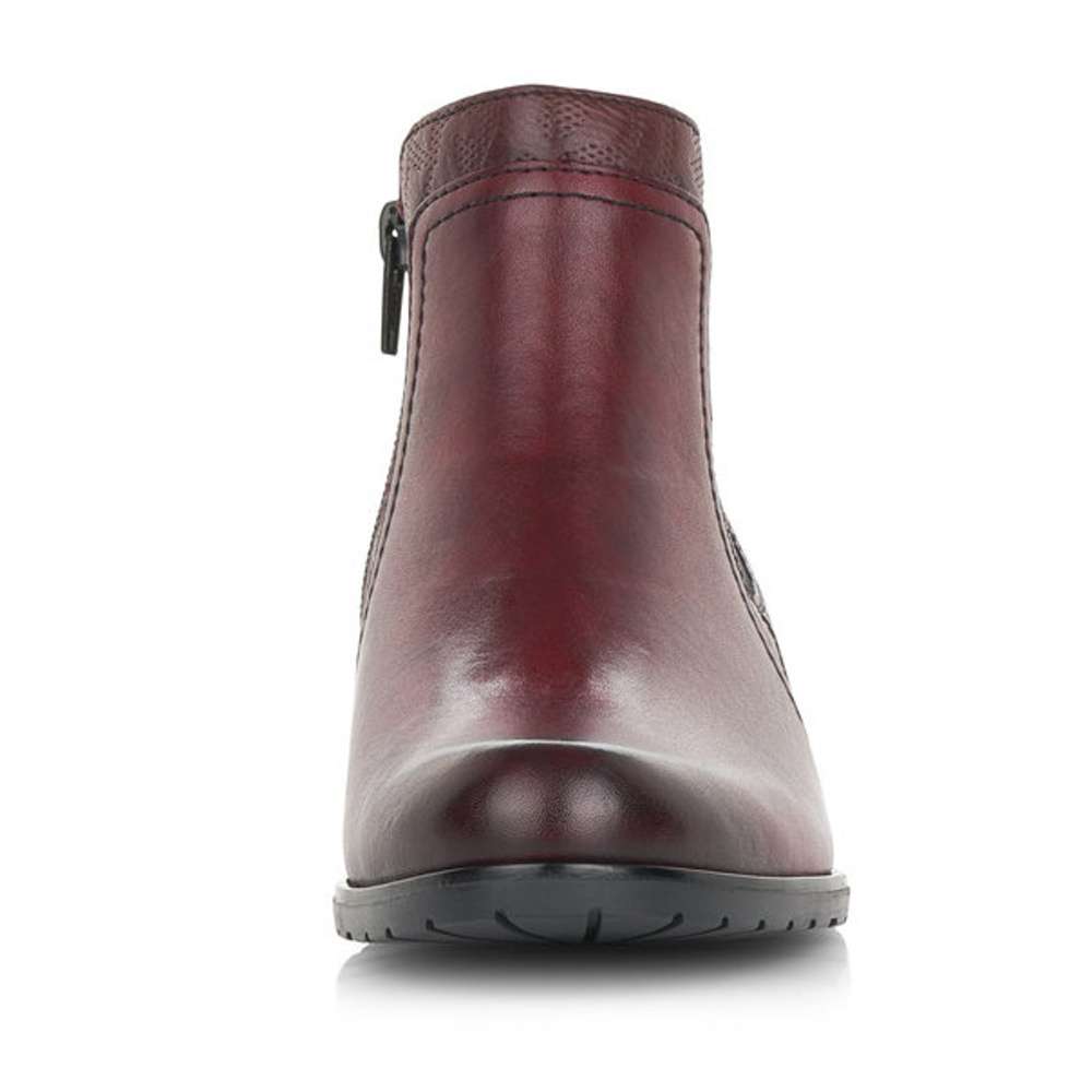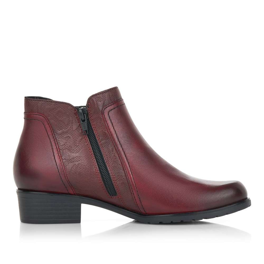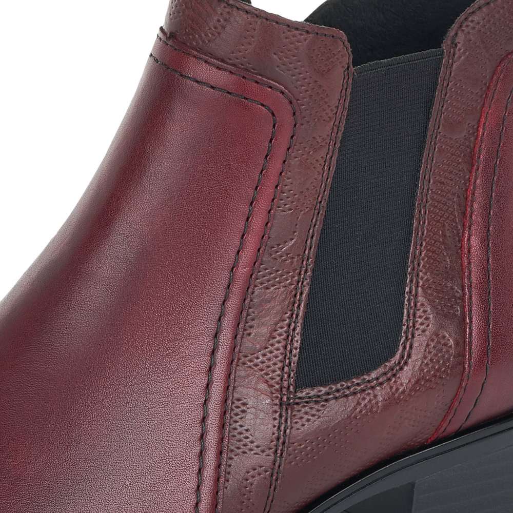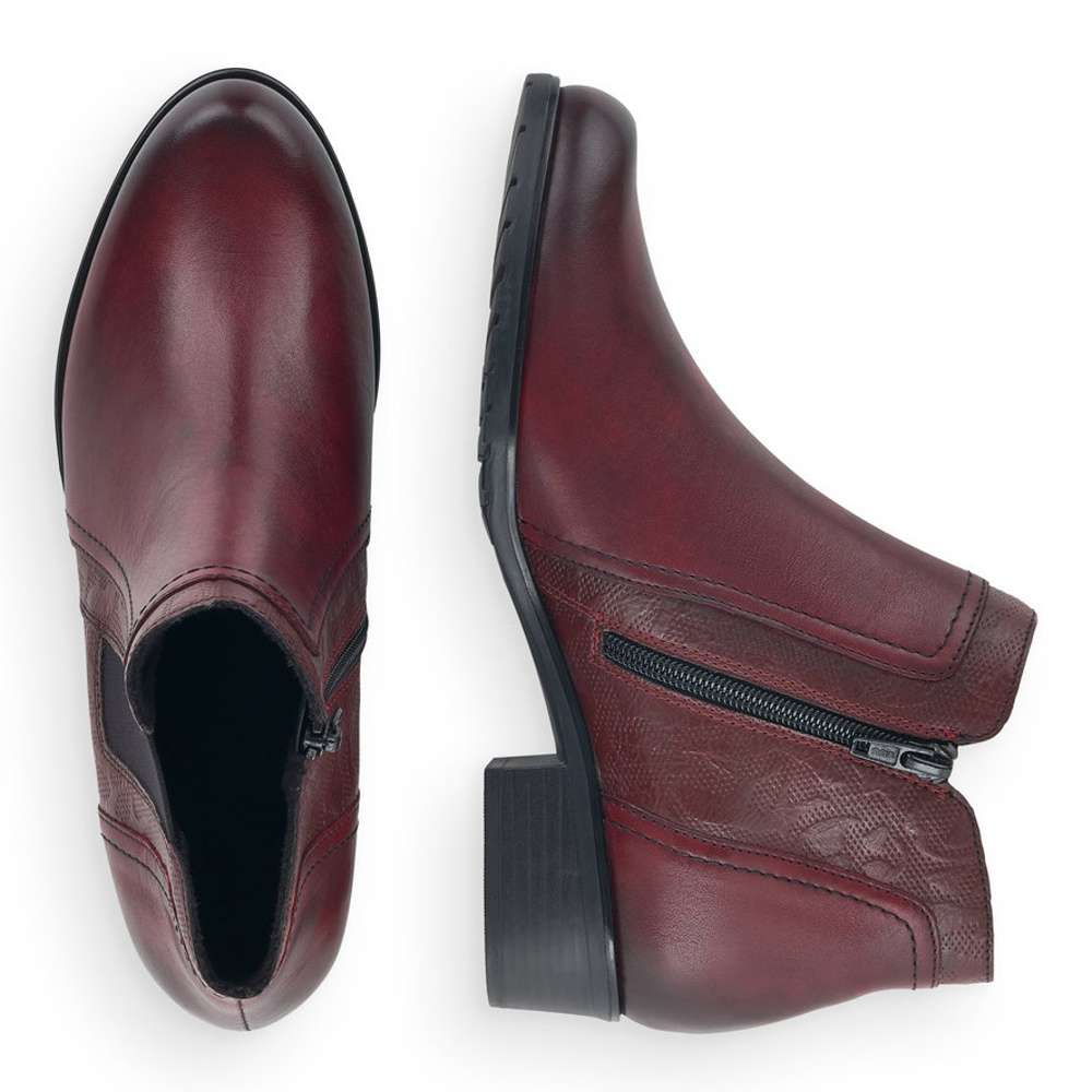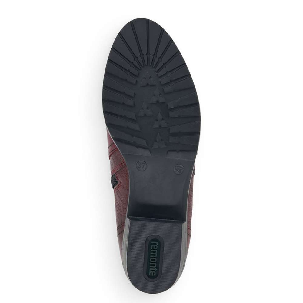 Obuv REMONTE – jedná se o vyšší řadu značky RIEKER, tato obuv se vyznačuje vynikající kombinací svrchních materiálů. Nádherný dámský kotník šitý z pravé kůže nepřehlédnutelné červené barvy doplní každý Váš outfit. Lehké zdobení v podobě designového vzoru kolem horního okraje i po stranách a nízký podpatek podtrhují ladnost této boty. Vsazená pružná gumička pomůže přizpůsobit se přímo k Vaší noze. Boty z řady Remonte Vám zajistí maximální komfort při celodenním nošení.