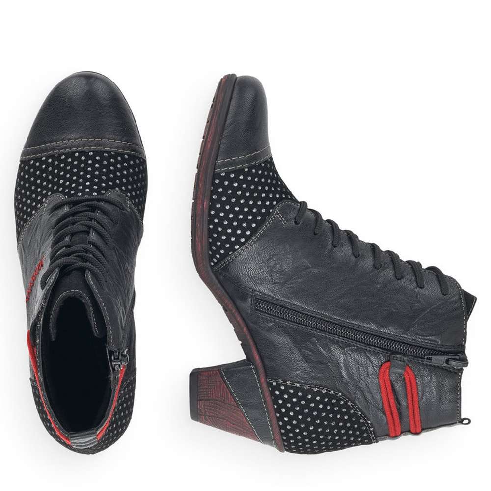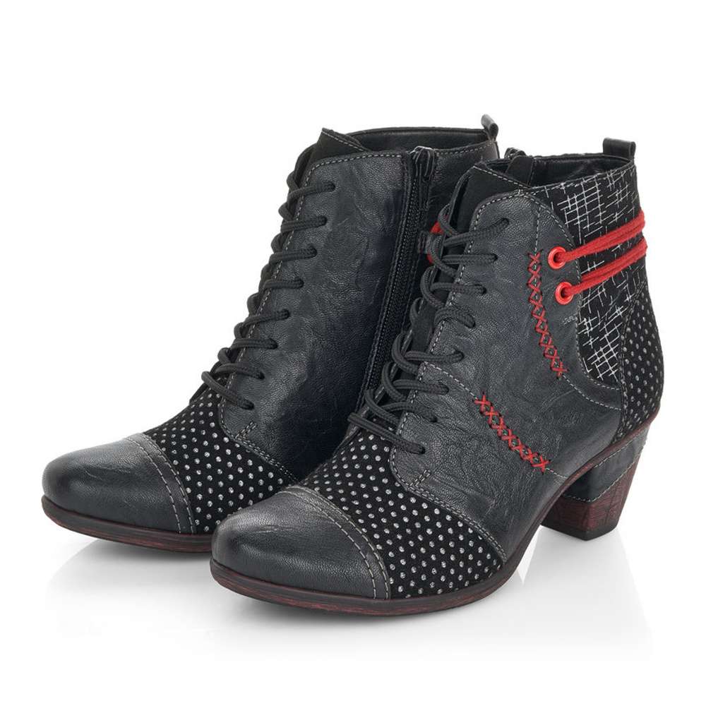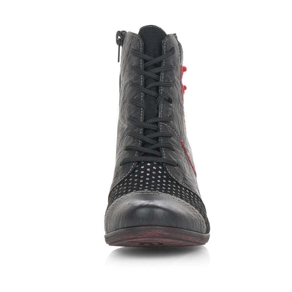 Obuv REMONTE je vyšší řadou značky RIEKER, obuv se vyznačuje kvalitou použitých materiálů, komfortnější šířkou a nadměrnými velikostmi. Dámská kotníková obuv extravagantního vzhledu díky unikátním designovým prvkům na svršku. Z vnitřní strany je funkční zip pro snadné prozutí. Šněrováním si pak obuv upravíte dle svých požadavků. Boty z řady Remonte Vám zajistí maximální komfort při celodenním nošení.