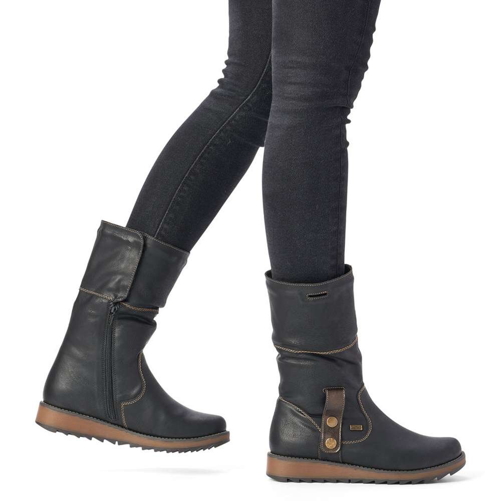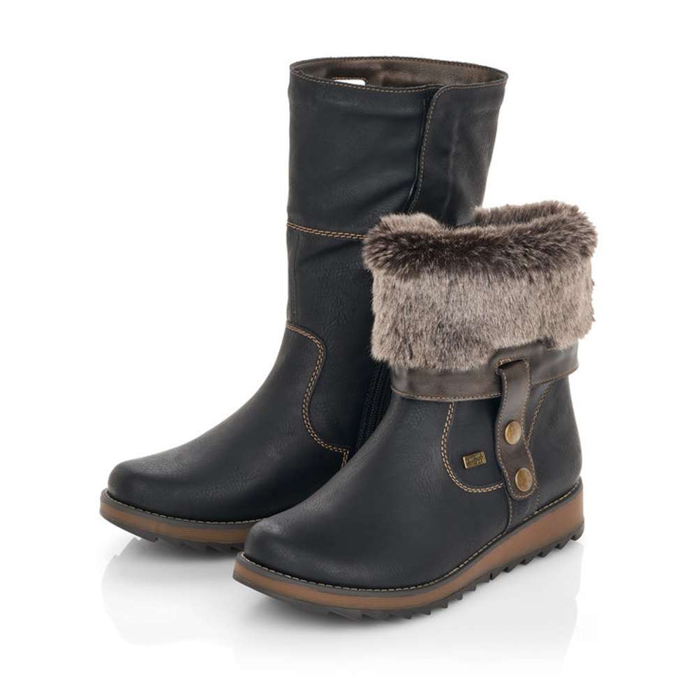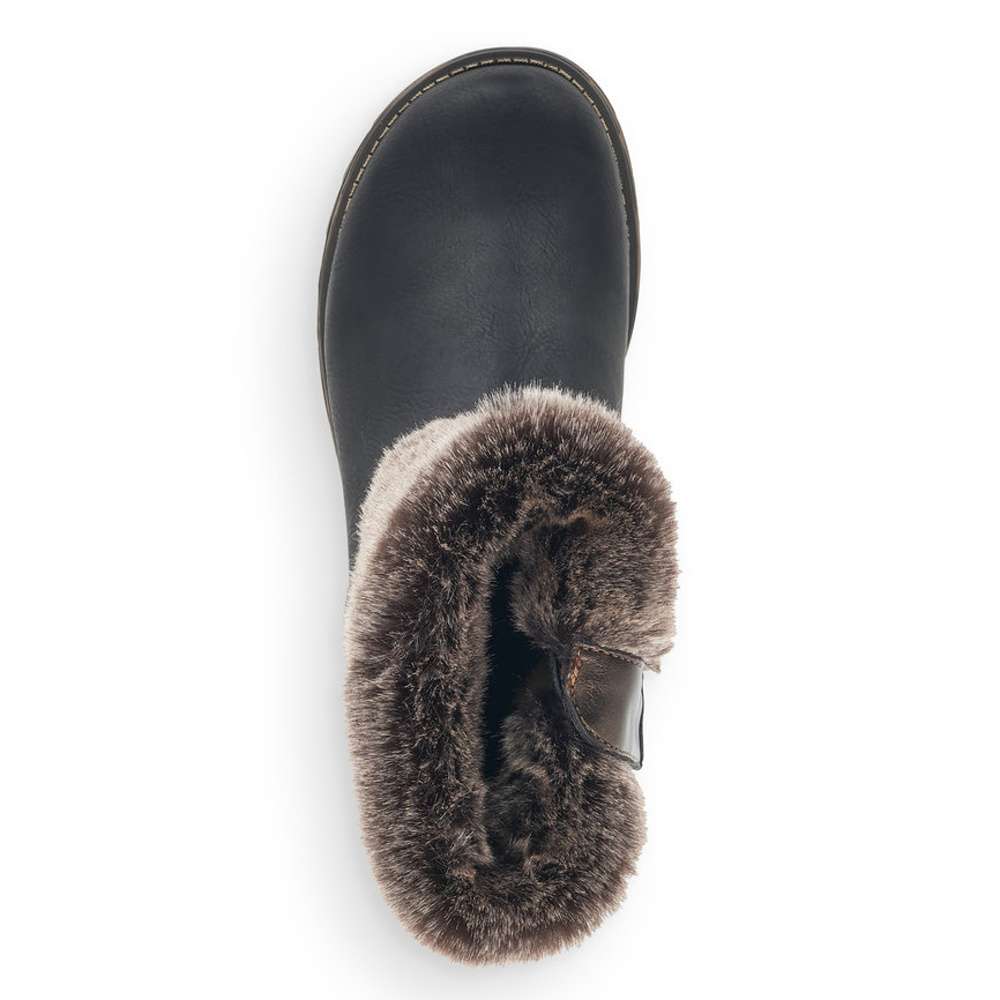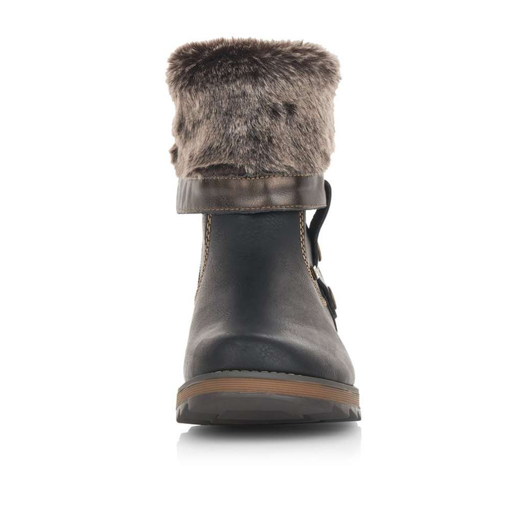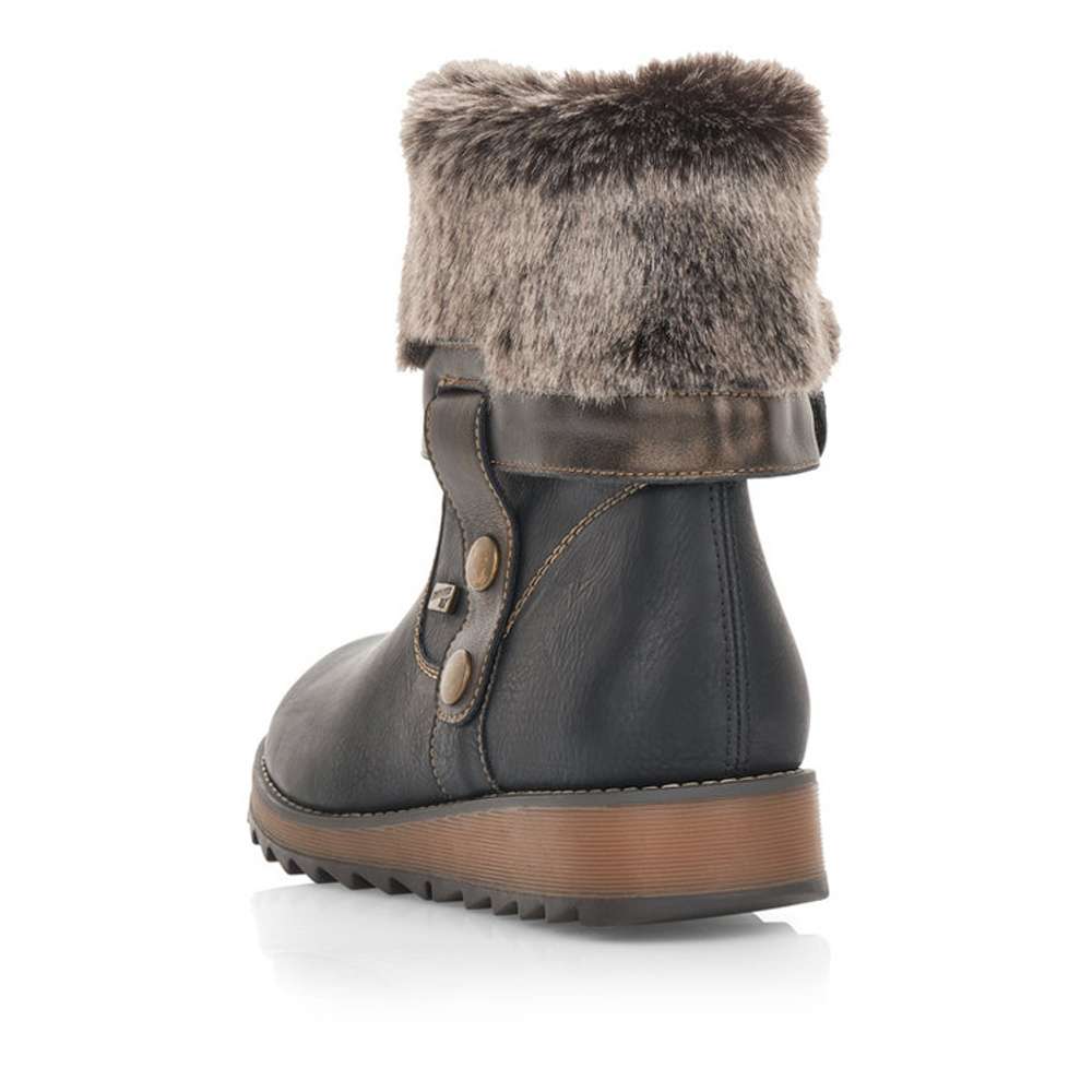 Jemně strukturovaný svršek je zdobný kontrastním prošíváním, bronzovým lemováním okraje obuvi a jemným kožíškem. Technologie Remonte TEX zajistí nepromokavost, ale přesto prodyšnost obuvi. Obuv si snadno nazujete díky funkčnímu zipu a můžete si ji pohodlně vyhrnout a udělat tak z obuvi hřejivé polokozačky.