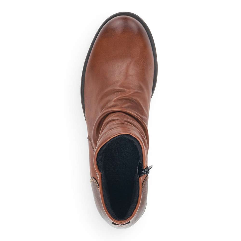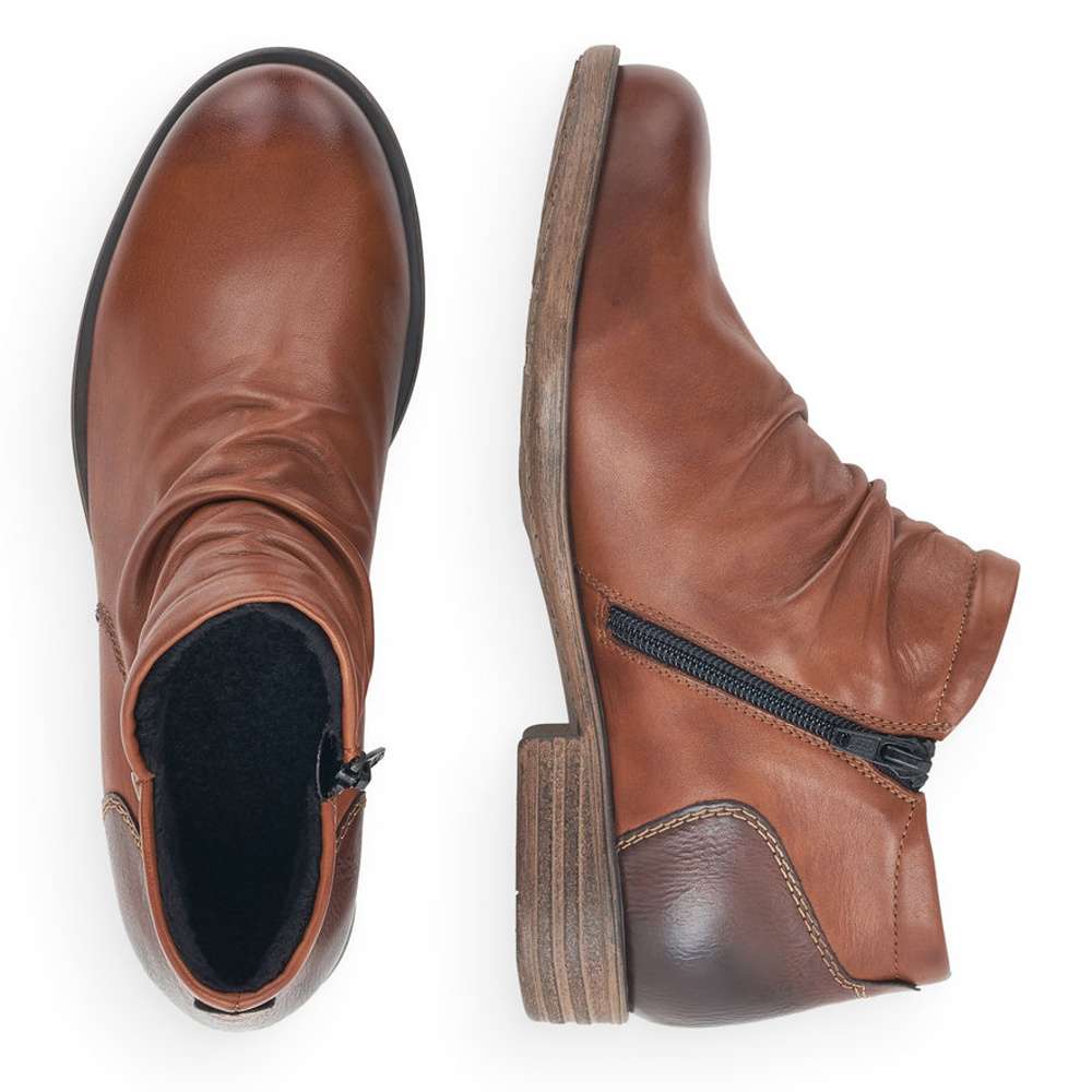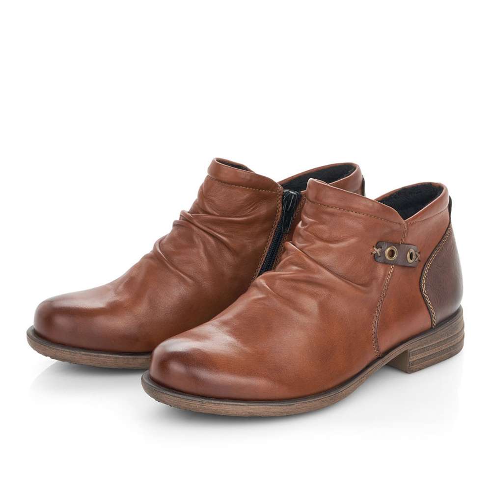 Obuv REMONTE je vyšší řadou značky RIEKER, vyznačuje se kvalitou použitých materiálů, komfortnější šířkou a nadměrnými velikostmi. Boty z řady Remonte Vám zajistí maximální komfort a pohodlí při celodenním nošení. Menší kotníková obuv značky Remonte v hnědém provedení má decentní vrásnění, výrazně obšitý opatek a ozdobný prvek na vnější straně. V chladných zimních dnech jistě oceníte zateplení Velur, které se vyznačuje různými druhy textilií s krátkým vlasem. Tento model Vás nejen spolehlivě doprovodí do práce, ale bude také báječným společníkem na Vašich cestách.
